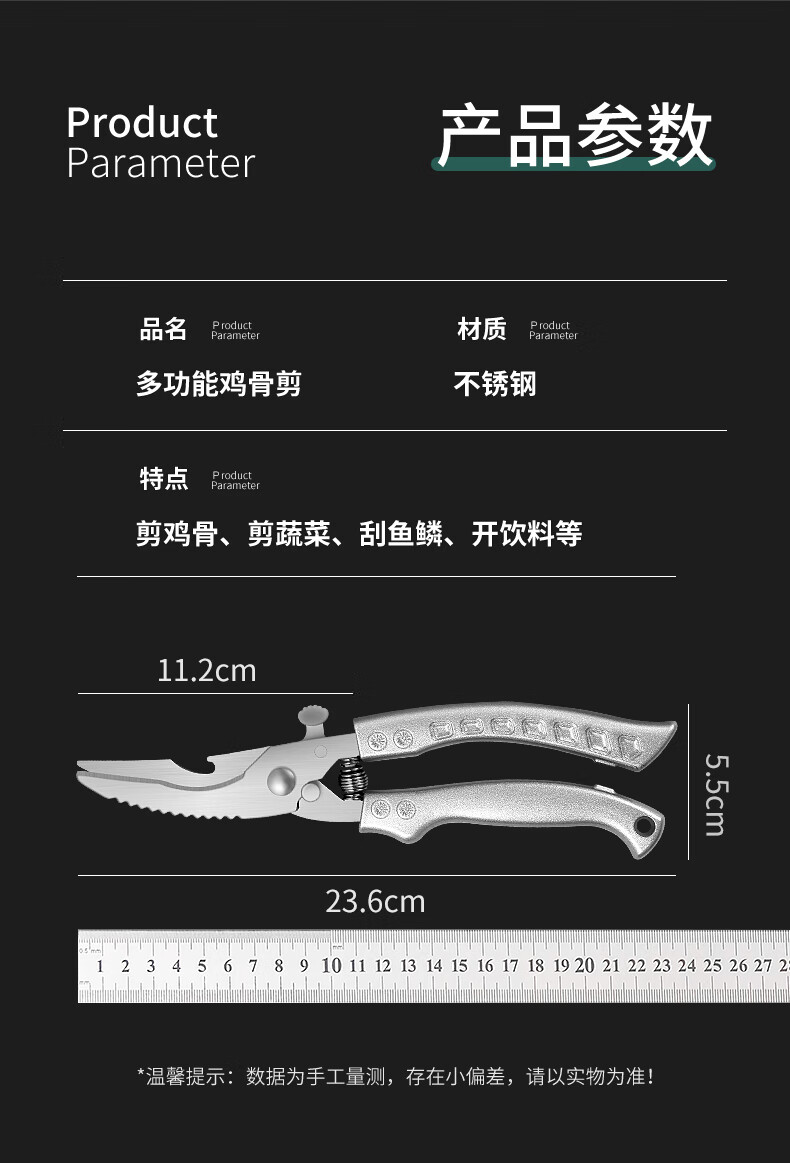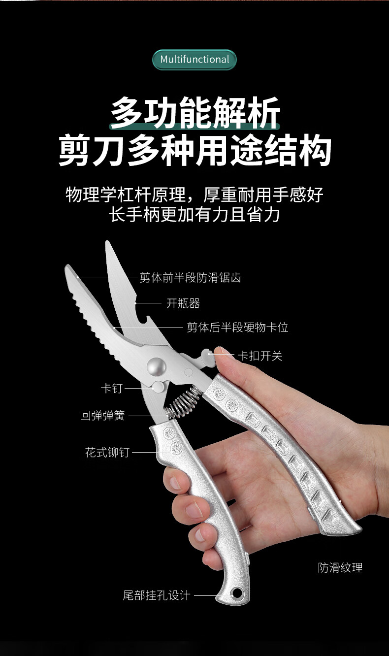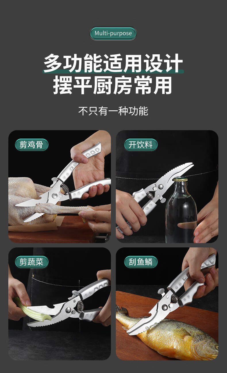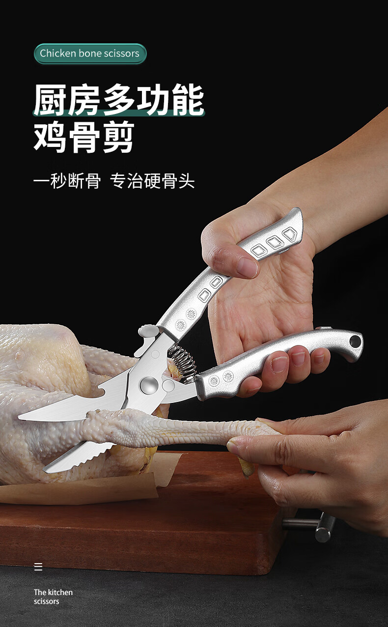 Powerful chicken bone scissors imported from Germany, multifunctional household barbecue kitchen scissors, special food stainless steel scissors, multifunctional chicken bone scissors