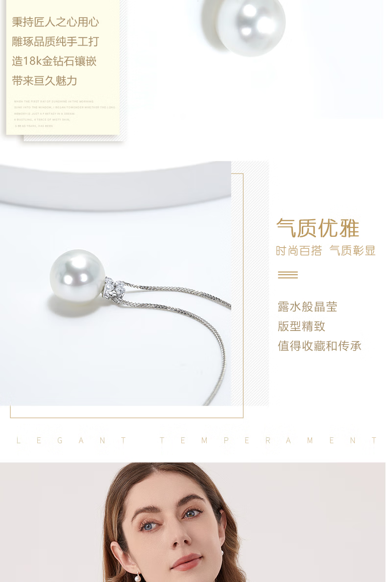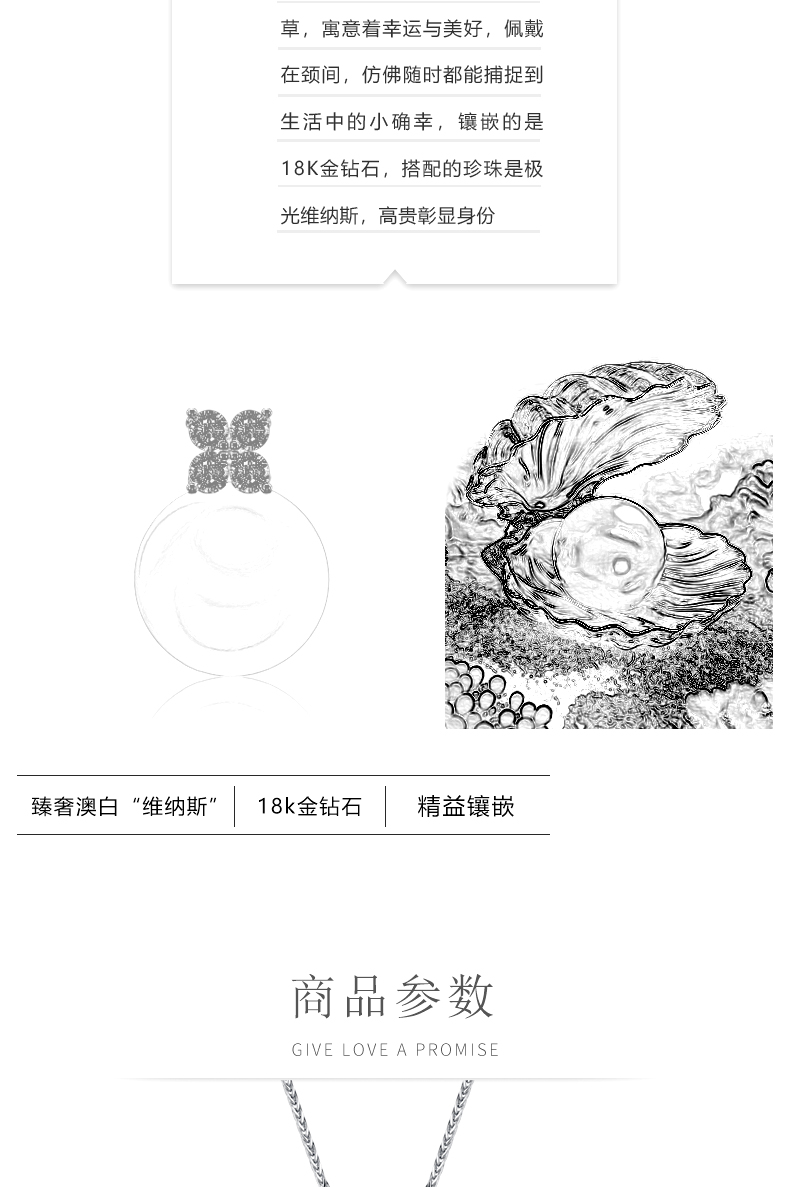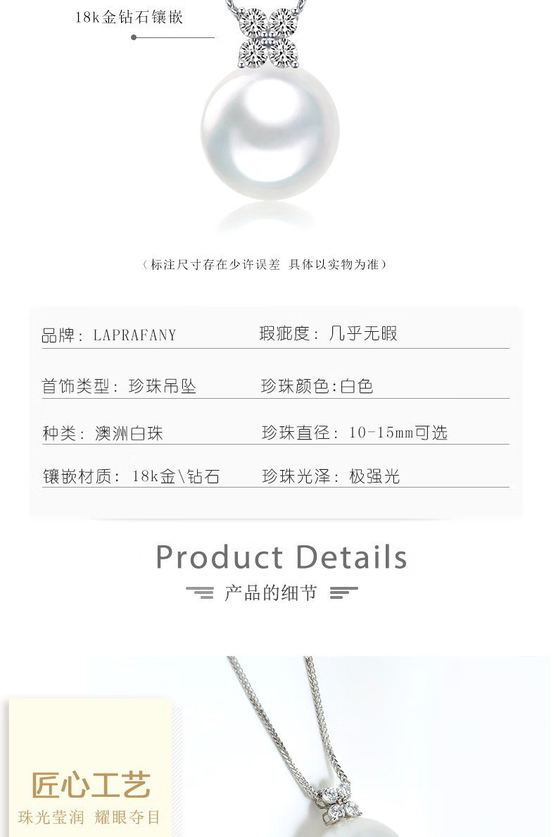 Laibofen four-leaf clover 18K gold Australian white pearl pendant necklace single Venus diamond style natural seawater clavicle chain 10-11mm heritage five-star Venus double certificate