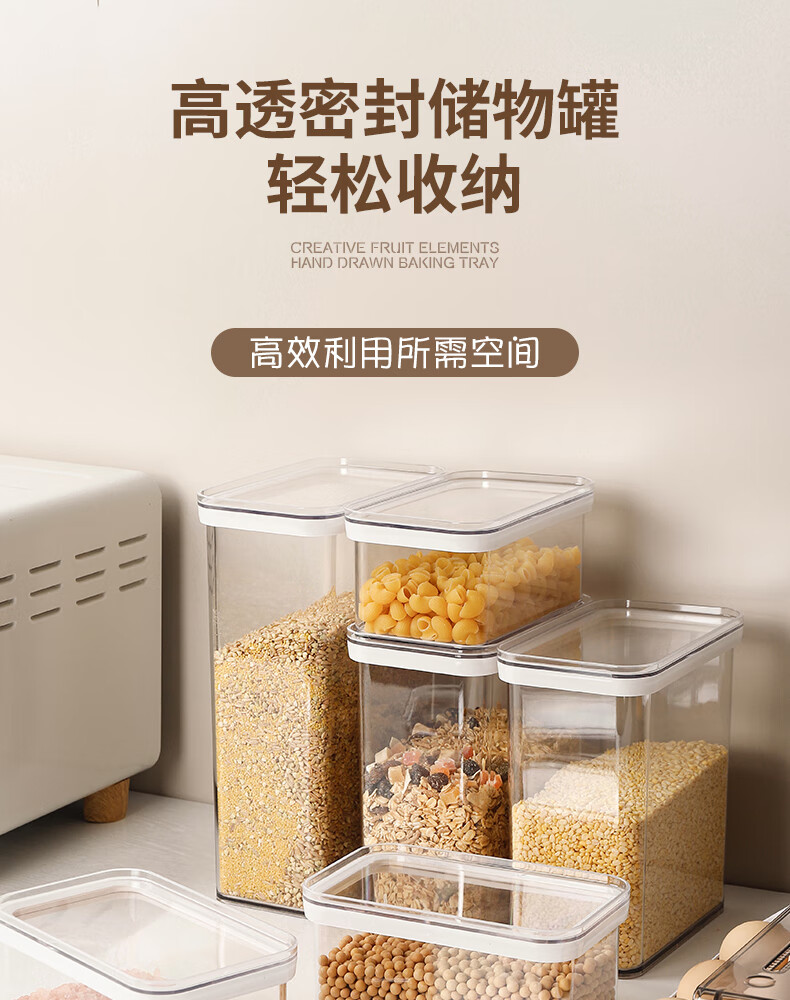 Shijanu grain storage box large kitchen storage jar food grade moisture-proof sealed household nut box new product small size_0.9L