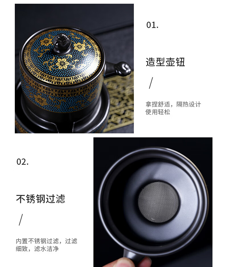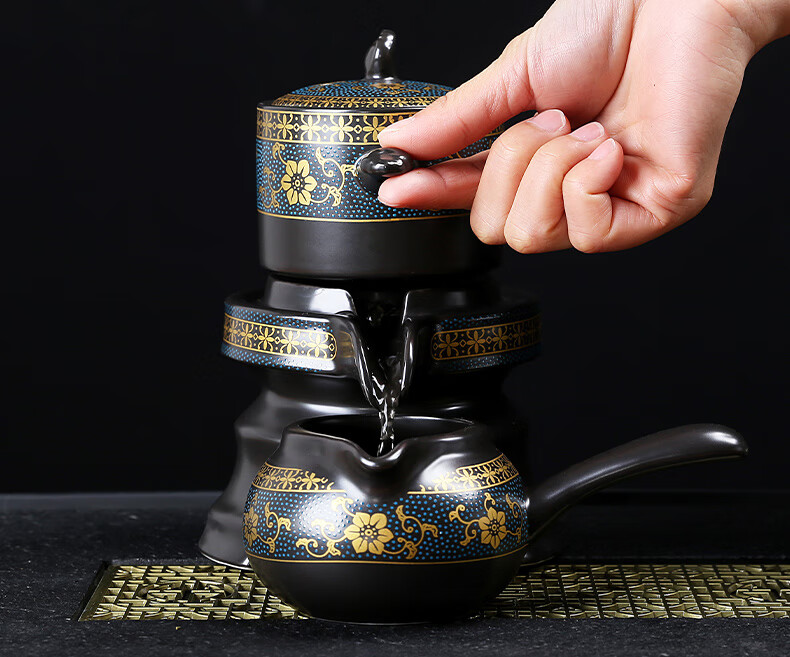 2025 New Kung Fu Tea Set Home Light Luxury High-End Lazy Automatic Tea Making Artifact Teapot Tea Cup Golden Flower Green Tea Maker + Fair Cup