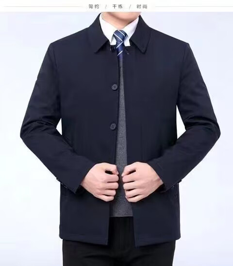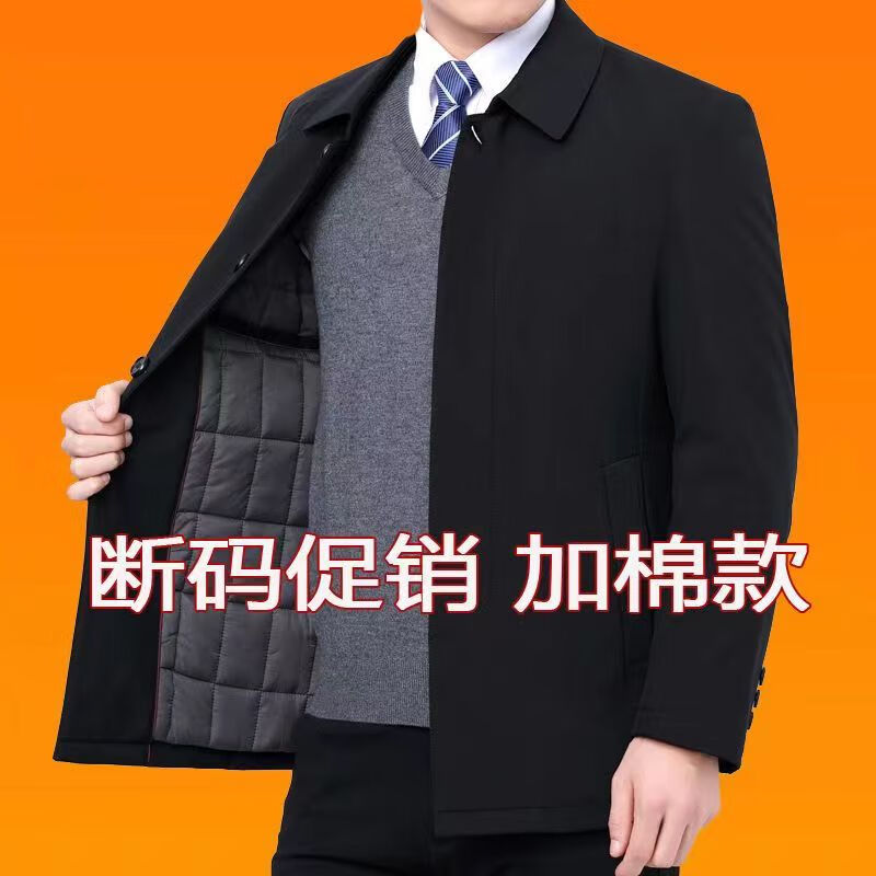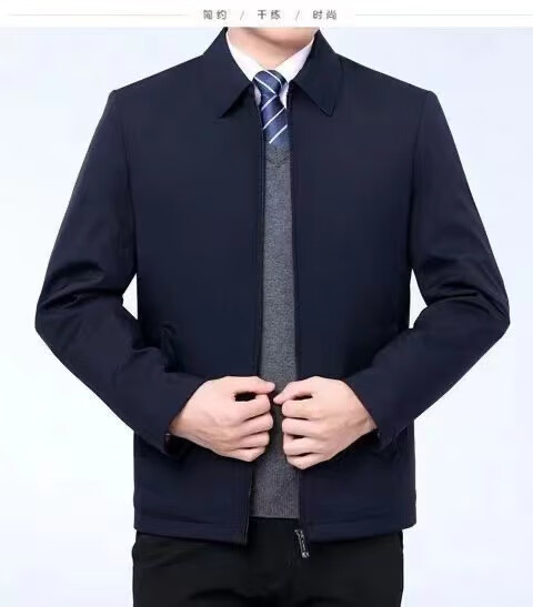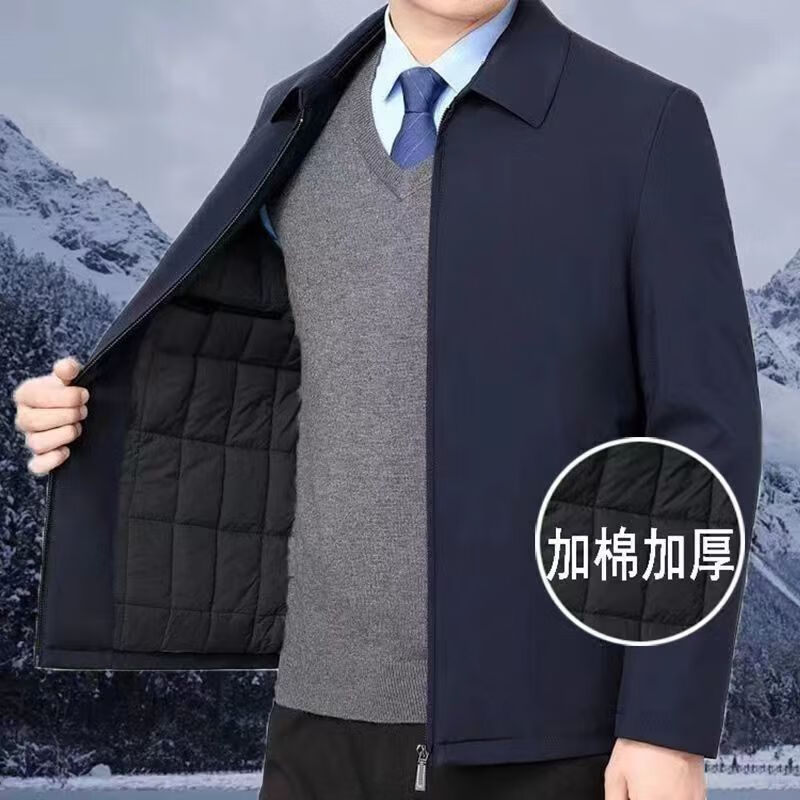 Clearance Broken Code Dad's Cotton Clothes Men's 2025 New Men's Cotton Clothes Autumn and Winter Middle-aged and Elderly Lapel High-end Jackets Blue Thickened Cotton BK Autumn and Winter Button Style XL Recommended 125-140 Jin Jin equals 0.5 kg