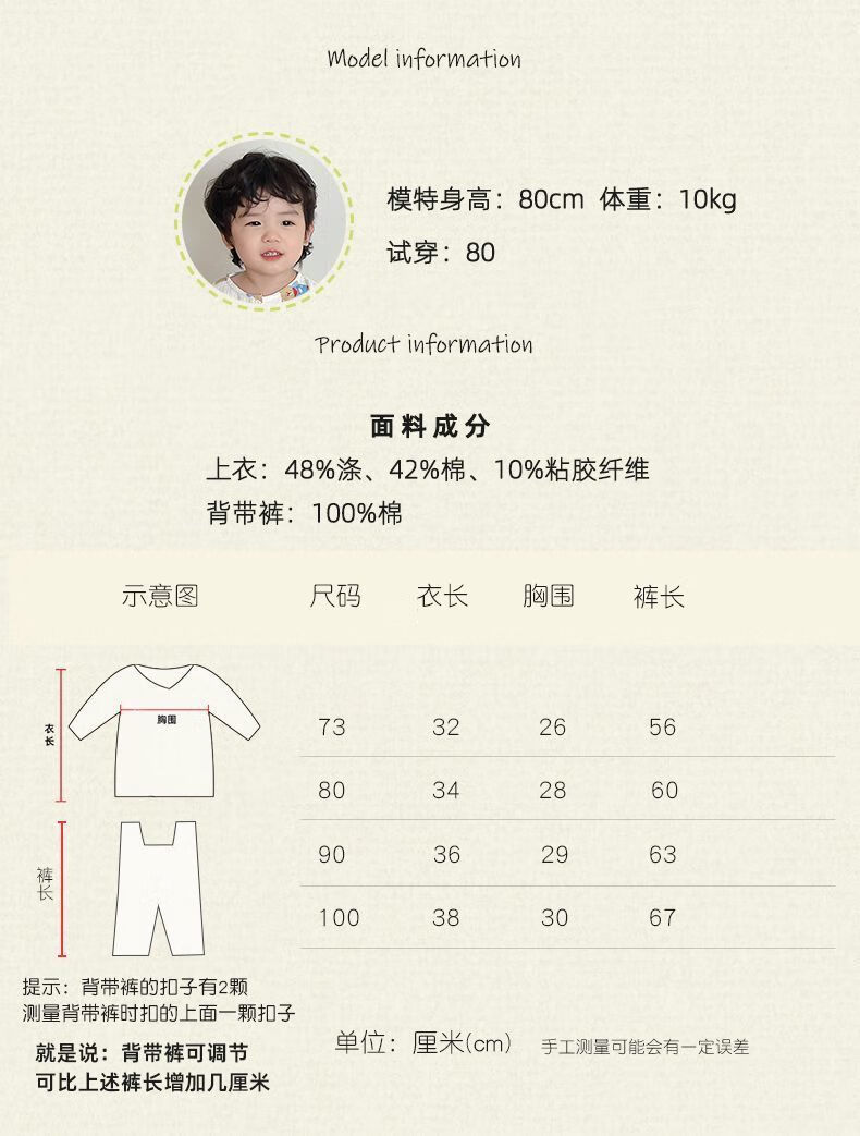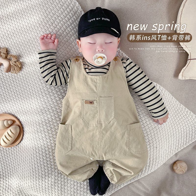 G.DUCKKIDS little yellow duck baby overalls striped T-shirt two-piece set male and female baby jumpsuit set outer wear children's one-piece striped T-shirt + light khaki overalls 90