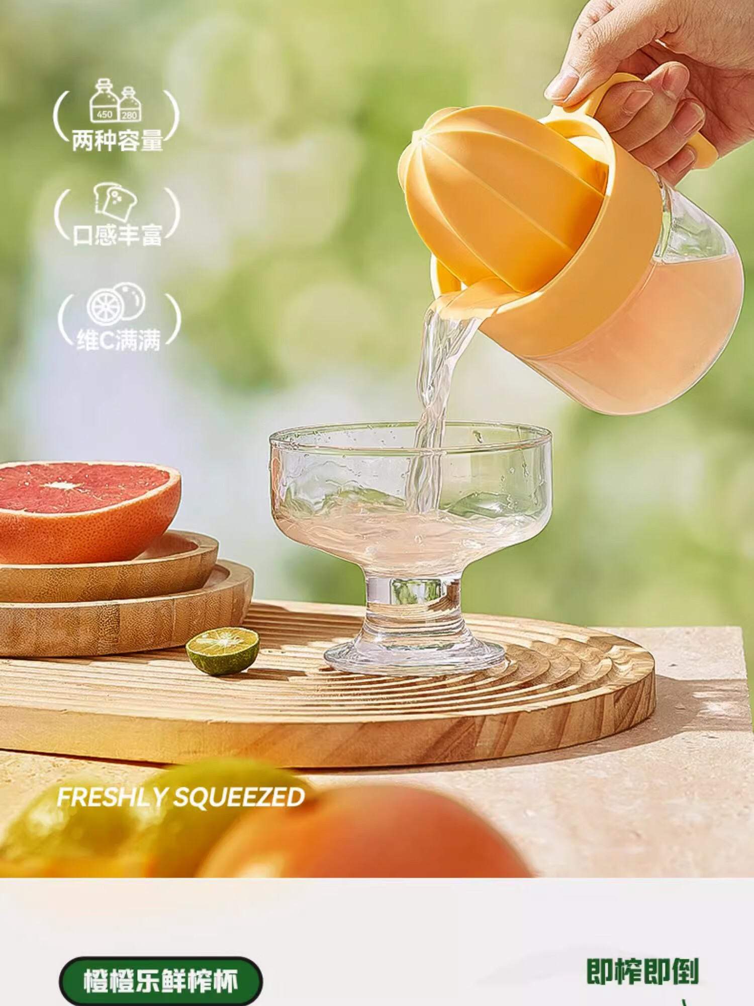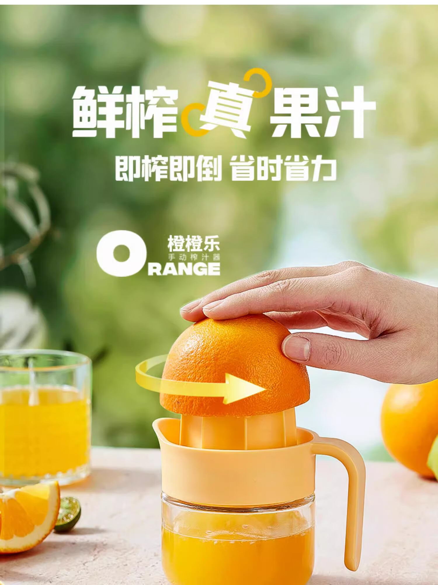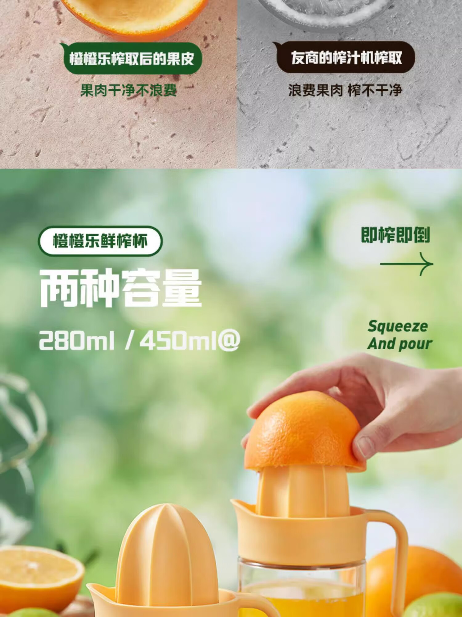 Manual juicer household household squeeze orange manual lemon juicer squeeze fruit juice residue yellow manual juicer 280ml