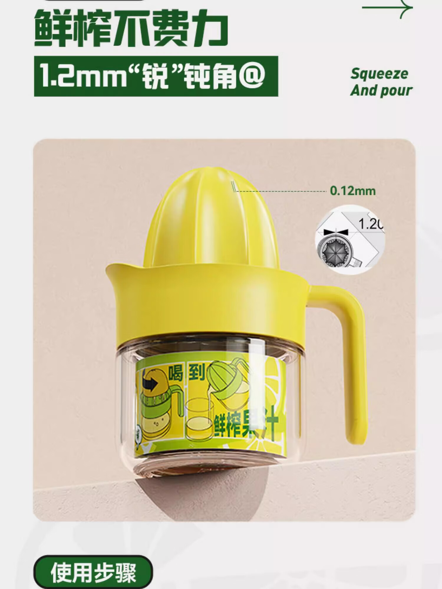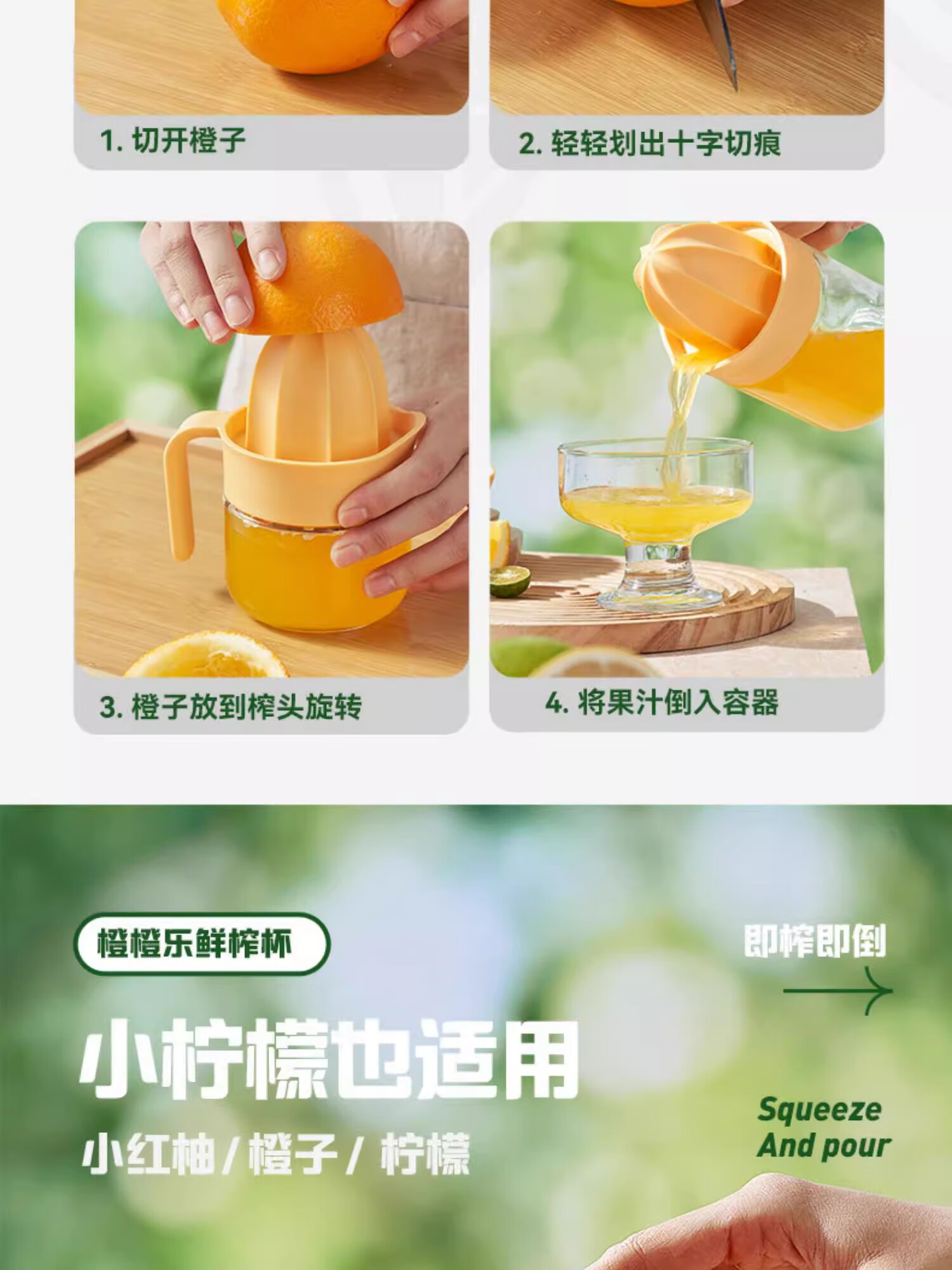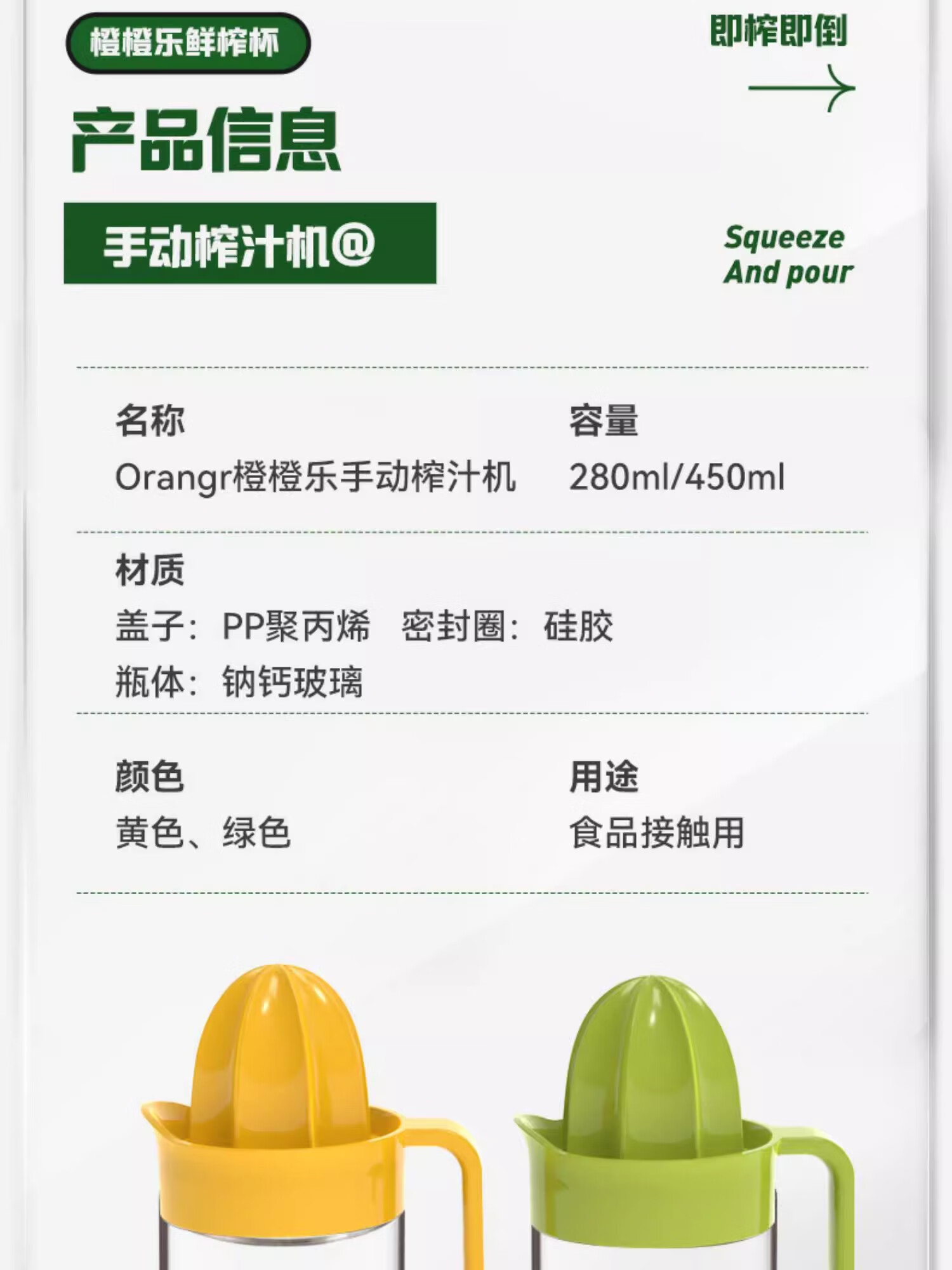 Manual juicer household household squeeze orange manual lemon juicer squeeze fruit juice residue yellow manual juicer 280ml