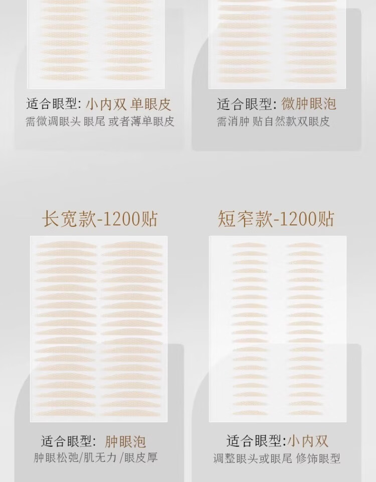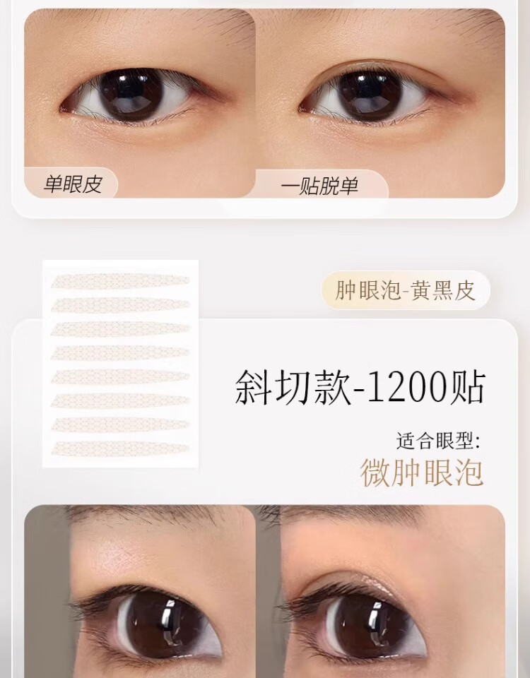 BIBK Japanese quality second generation upgraded double eyelid patch 1200 patch type female invisible natural traceless artifact with double swelling inside, oblique cut olive style, slightly swollen eyelids, loose eyelids 1 pair