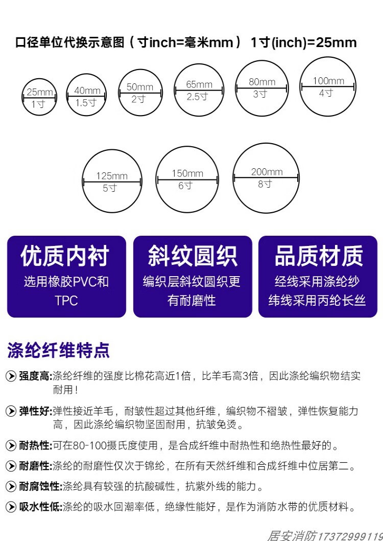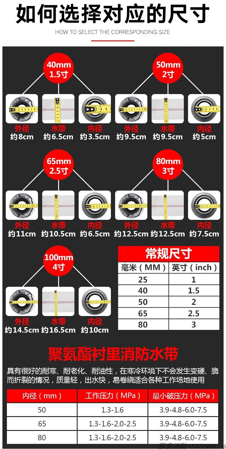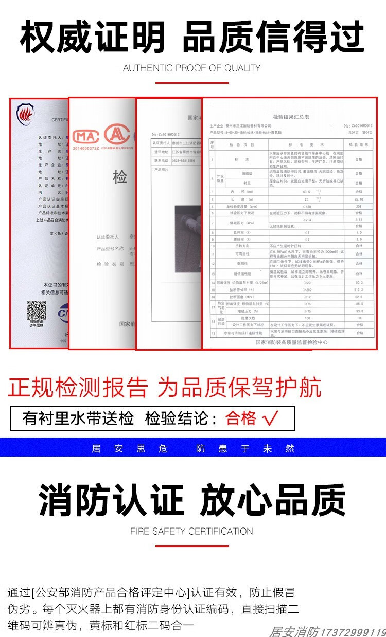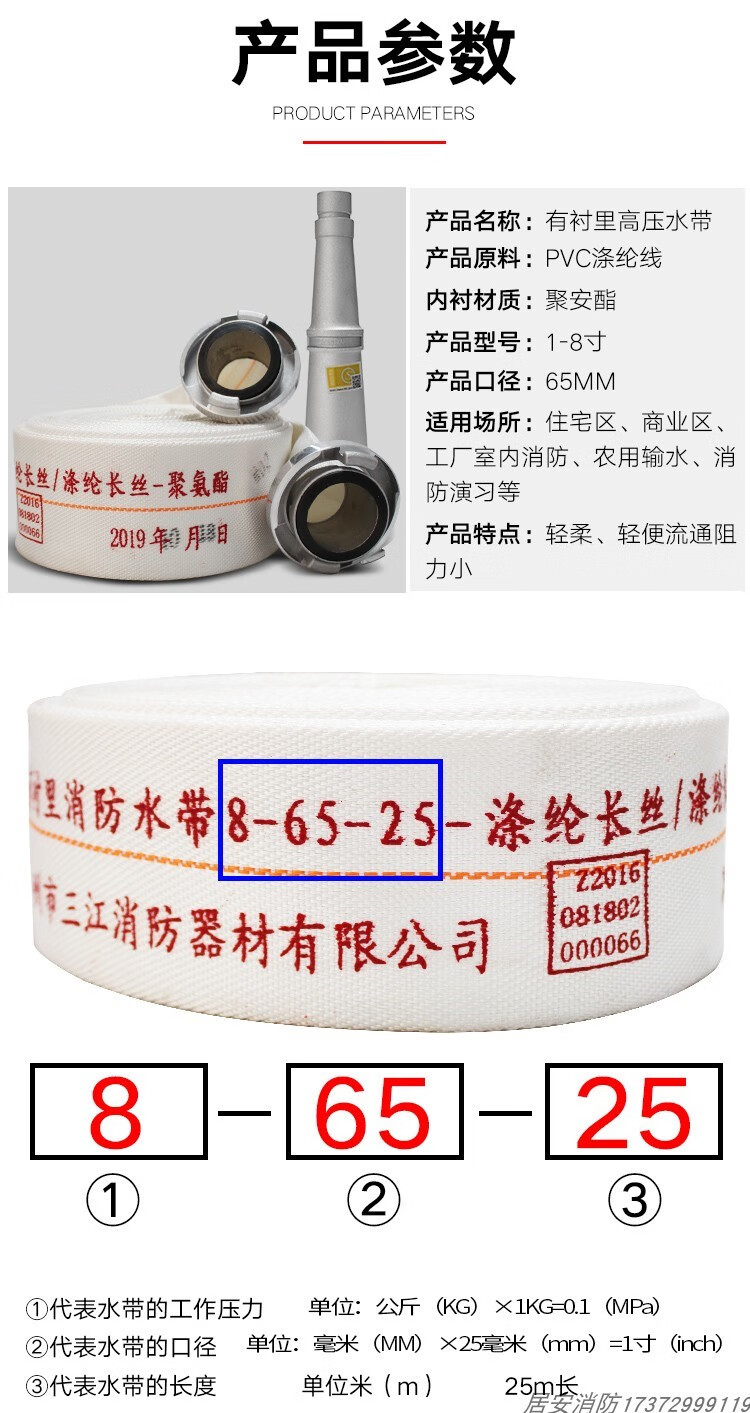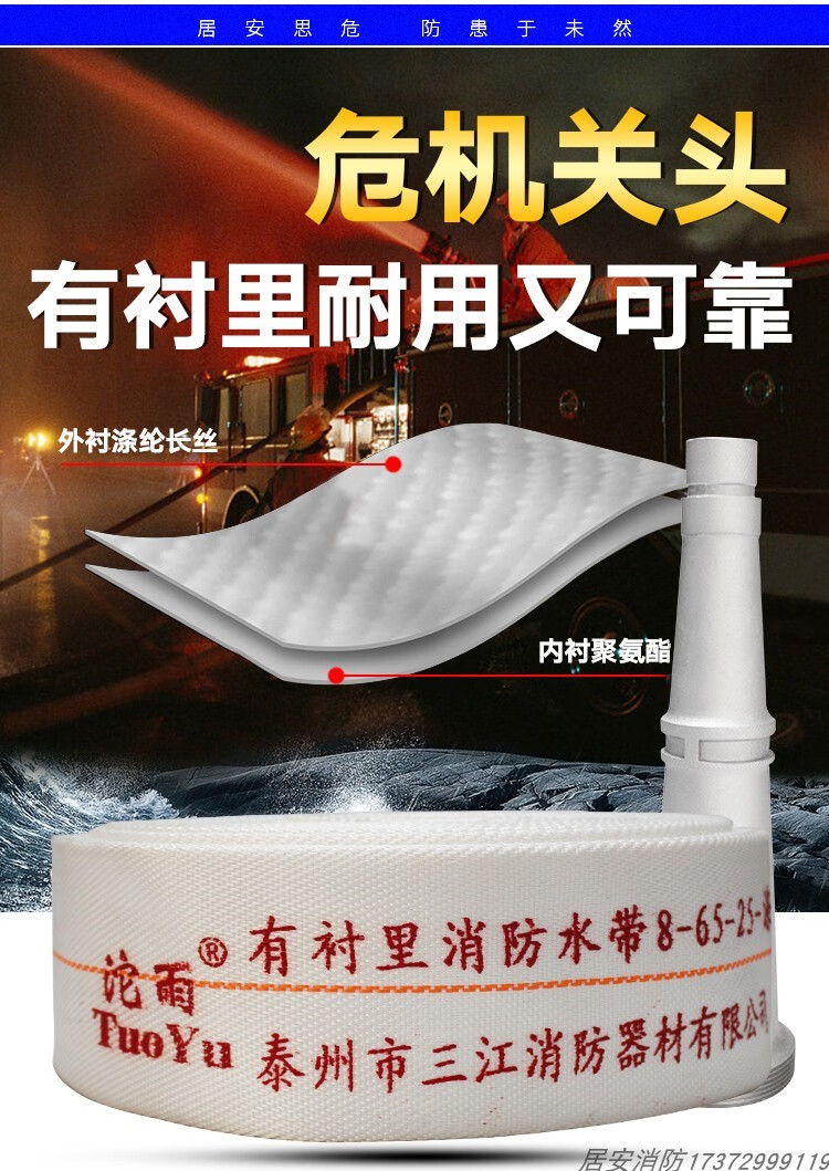 Tuoyu fire hose 65 national standard fire hydrant water pipe high pressure thickened water bag water gun connector 20/25 meters fire equipment 8-65-20 water hose + water gun + interface