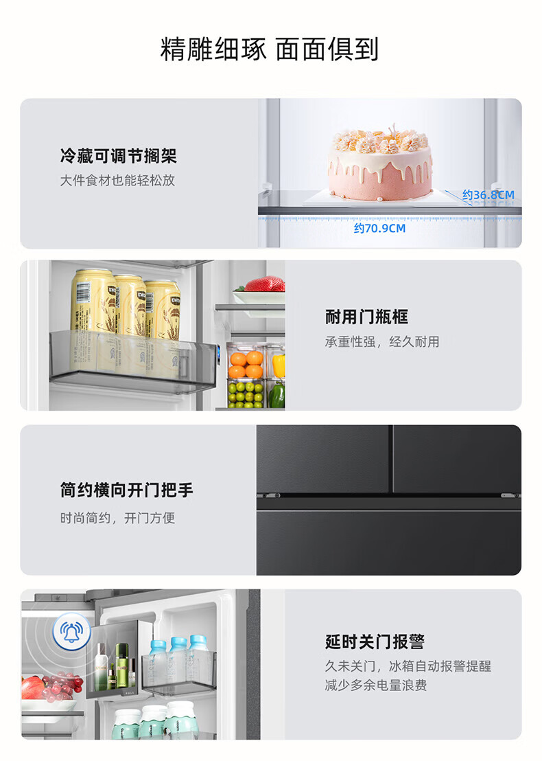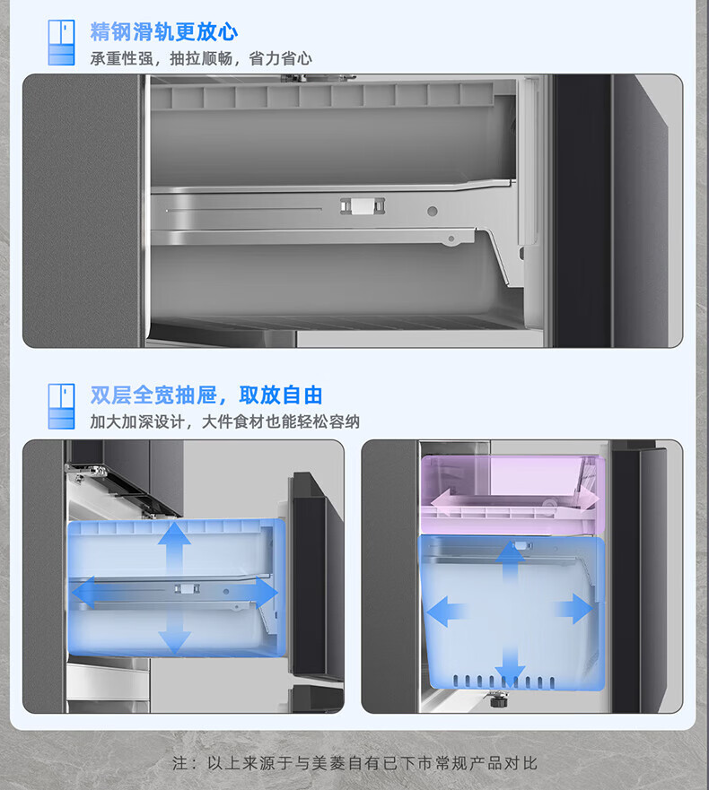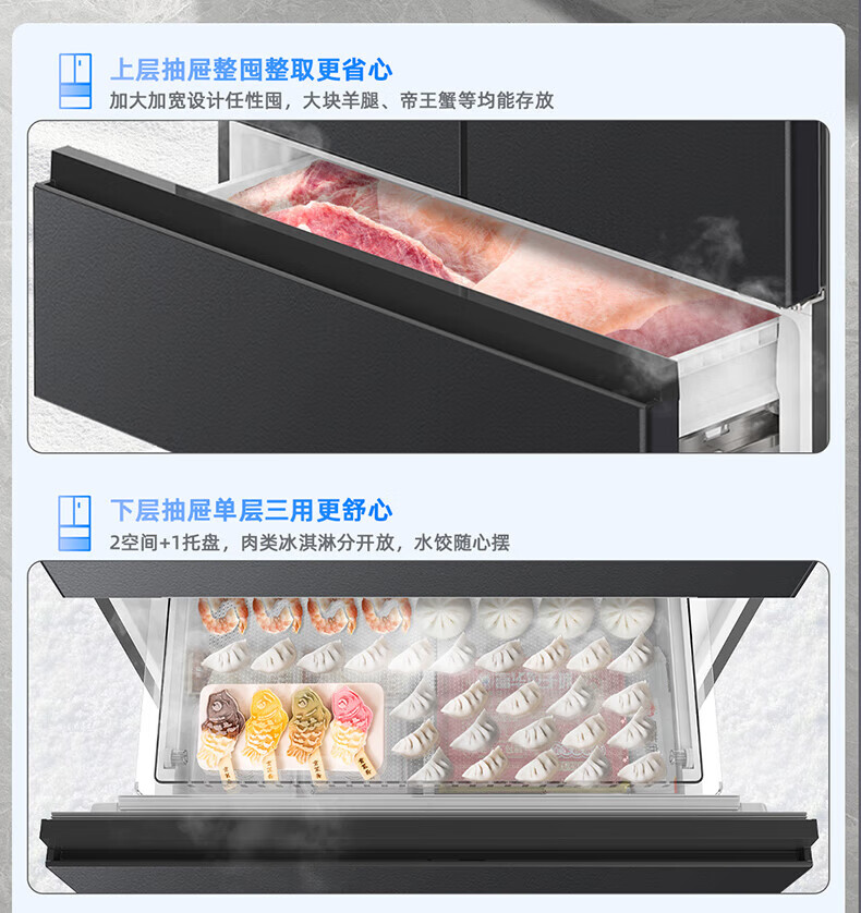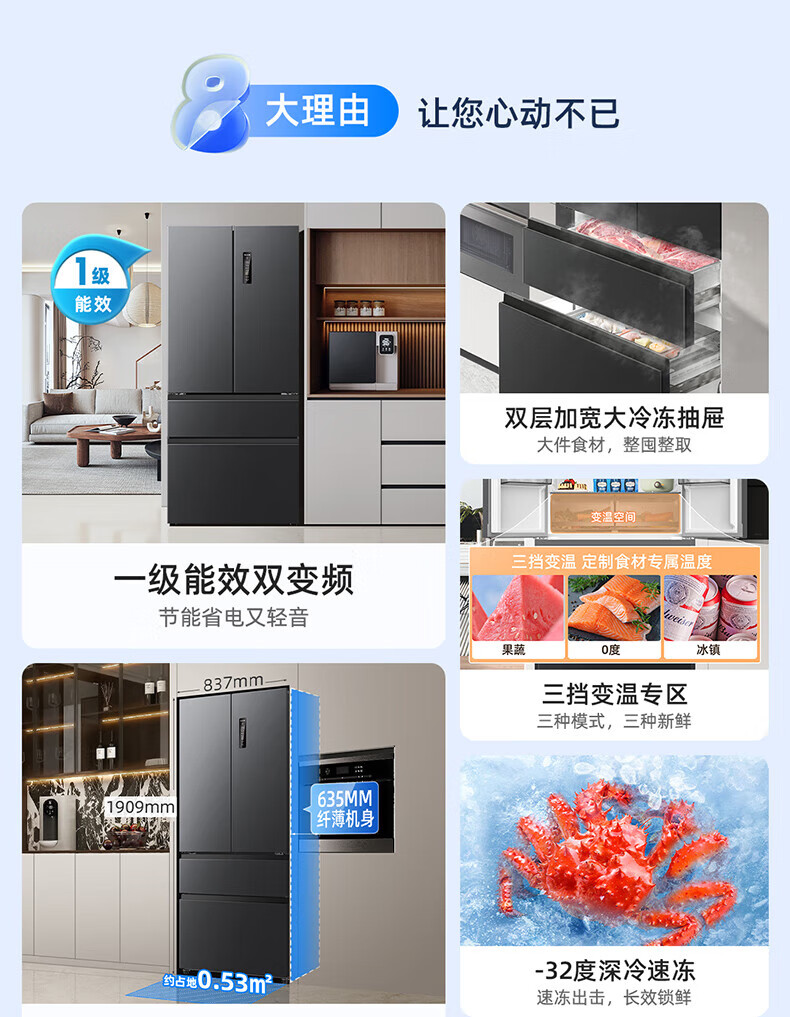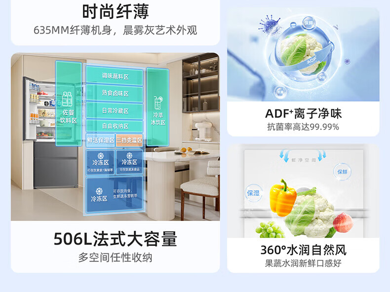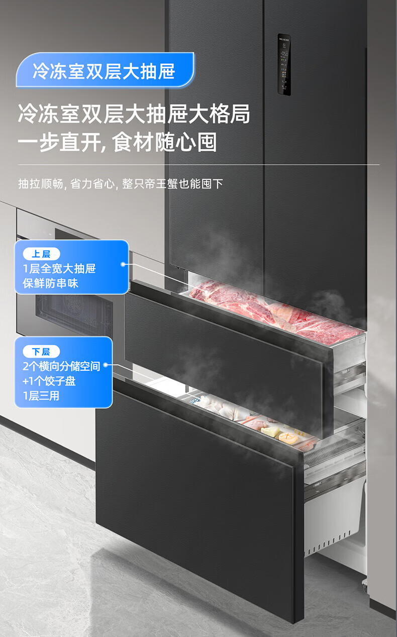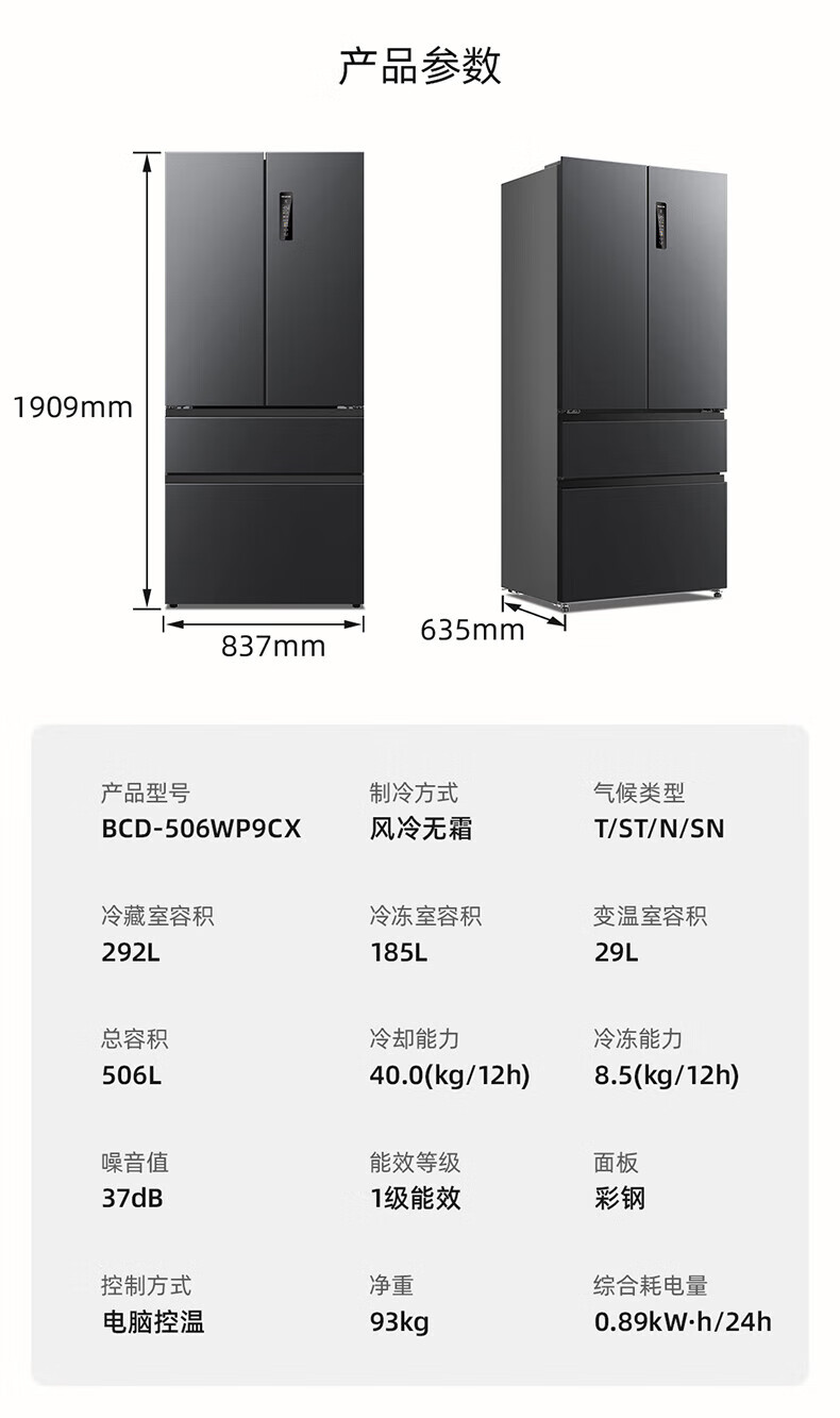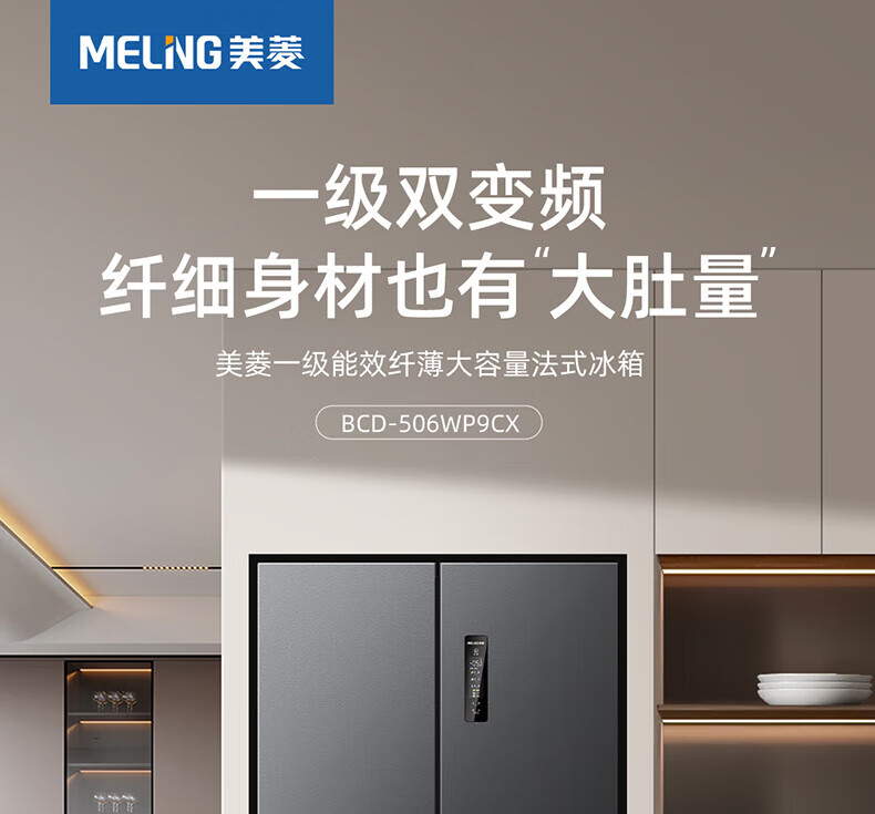 Meiling (MeiLing) 506 upgraded energy efficiency double frequency French multi-door four-door refrigerator household thin air-cooled frost-free antibacterial large capacity gray BCD-506WP9CX gray