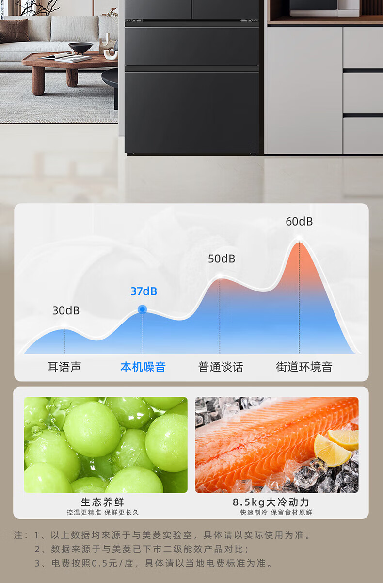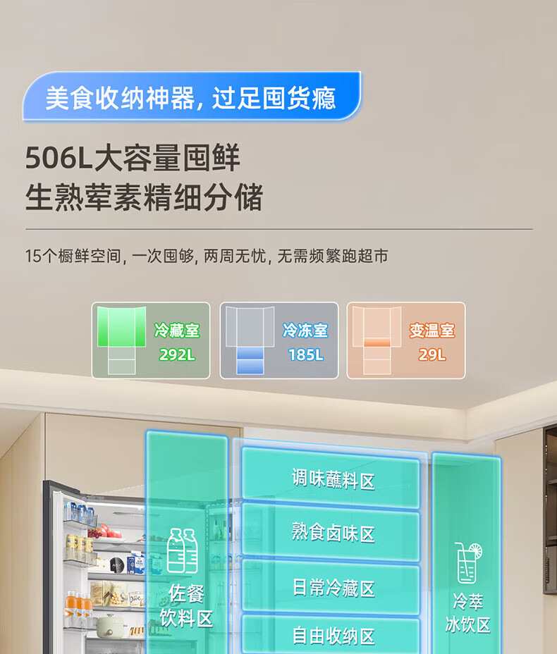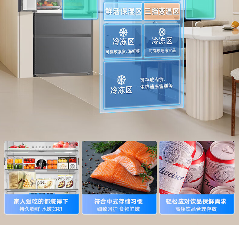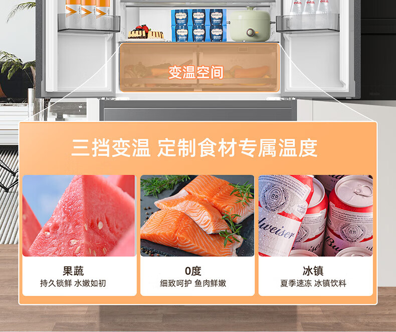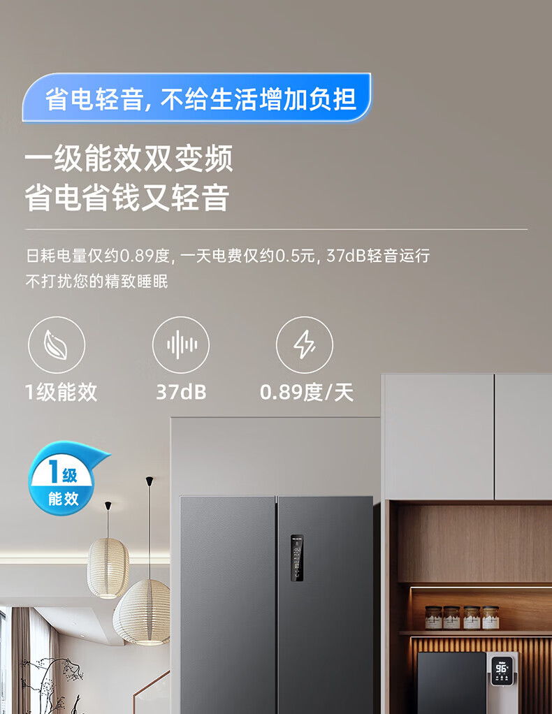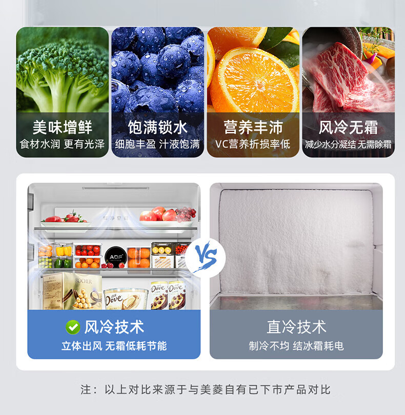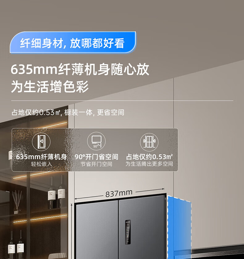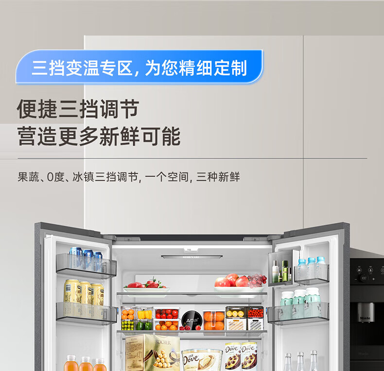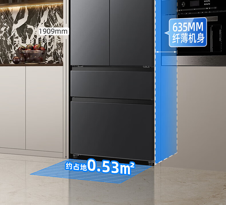 Meiling (MeiLing) 506 upgraded energy efficiency double frequency French multi-door four-door refrigerator household thin air-cooled frost-free antibacterial large capacity gray BCD-506WP9CX gray