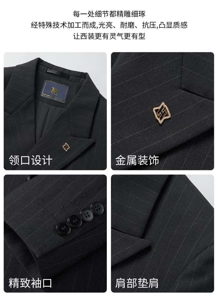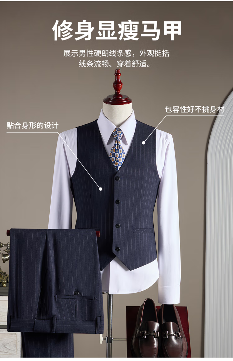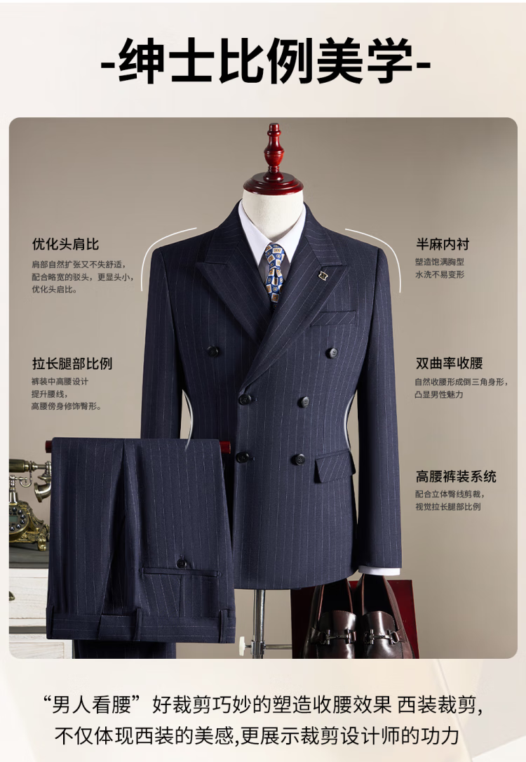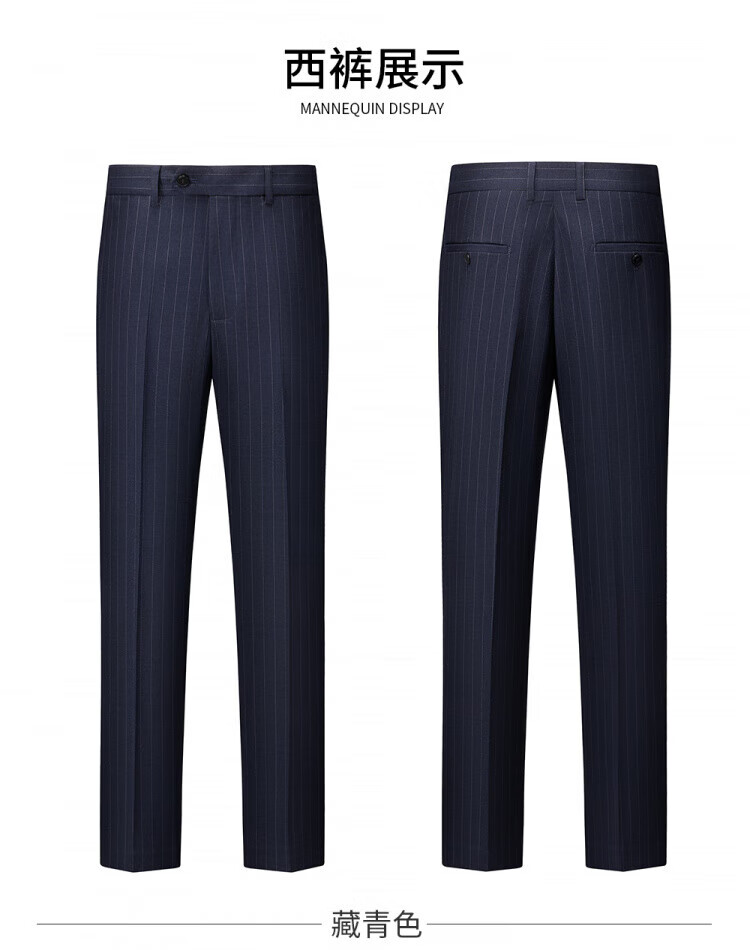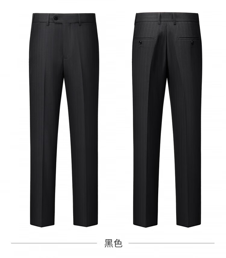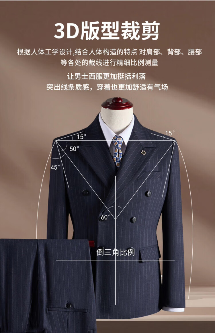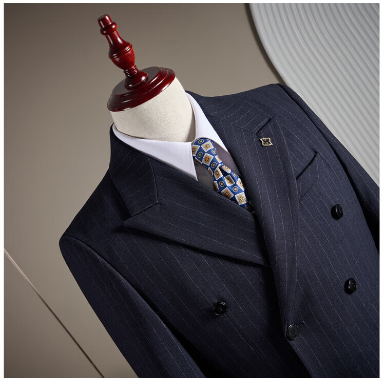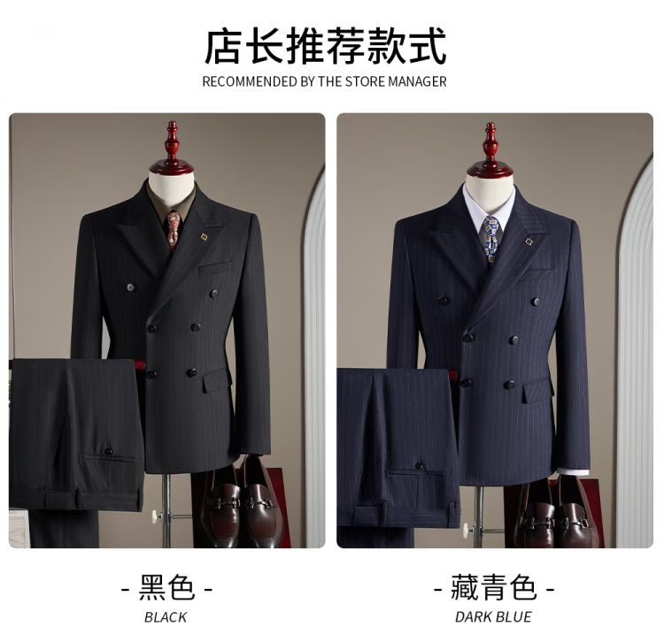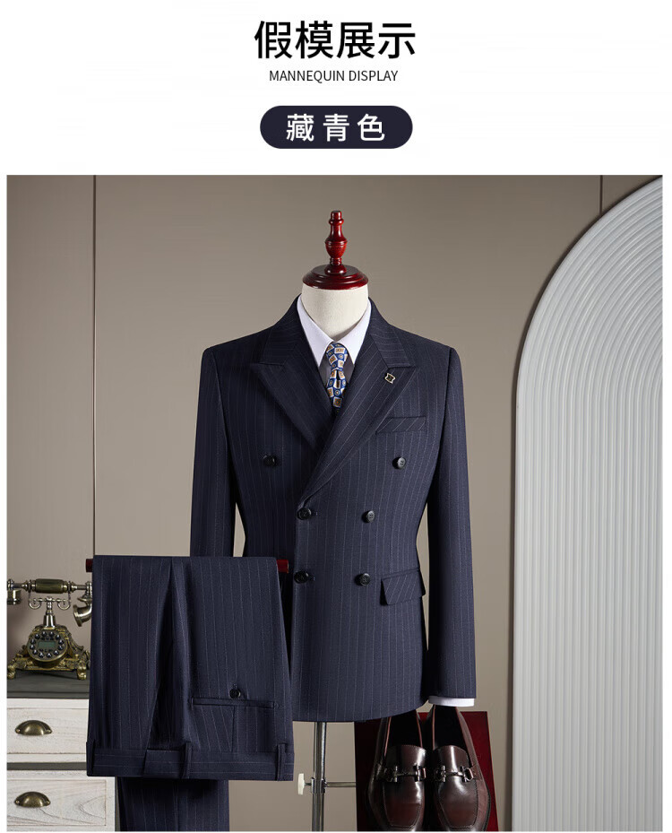 ROMON Double-breasted Striped Suit Men's British Style Business Slim Small Suit Groom Wedding Dress Jacket Men's Three-piece Suit - Black Suit + Trousers + Vest (Free White Shirt + Brooch) 2XL /54 Size 135-148Jin Jin is equal to 0.5kg Wear