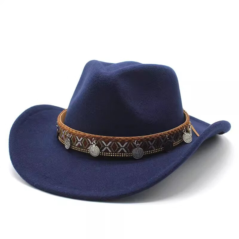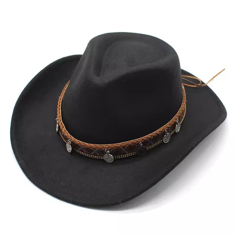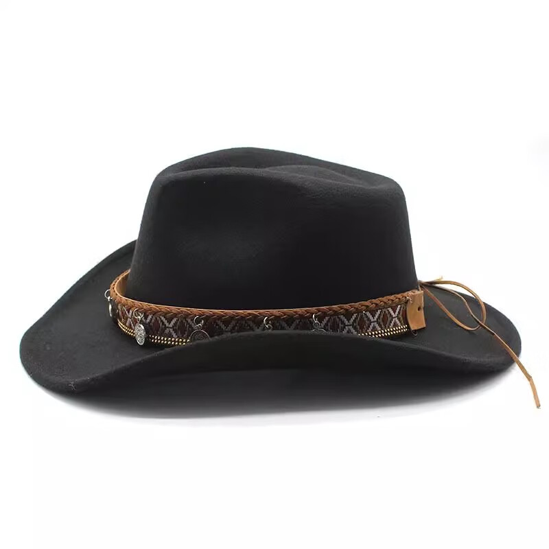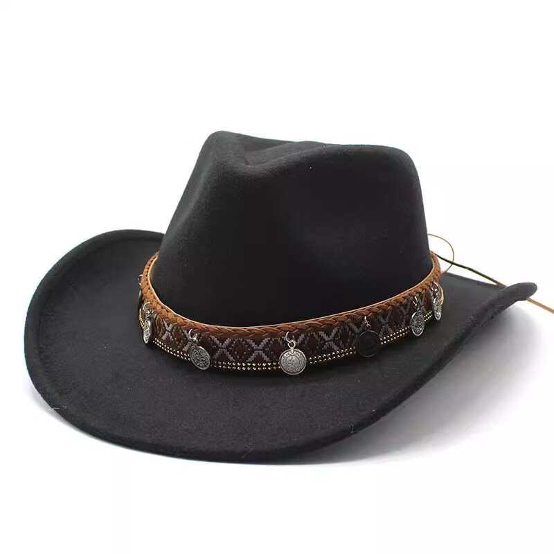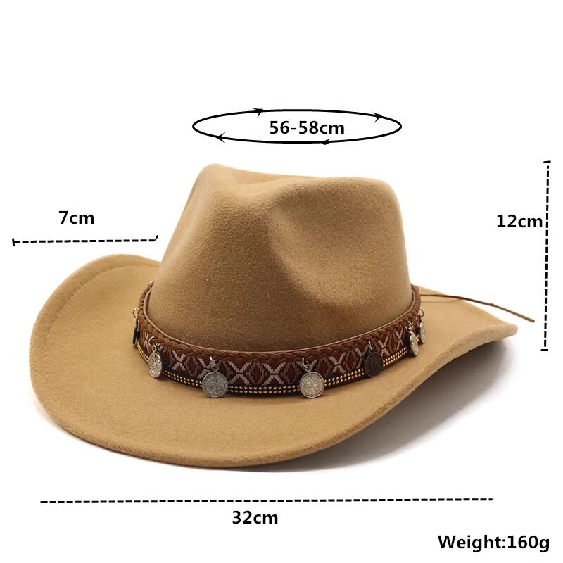 XINBUCKS minority ethnic style western cowboy hat unisex fashionable European and American style top hat bohemian style casual hat brown suitable for 55-58cm