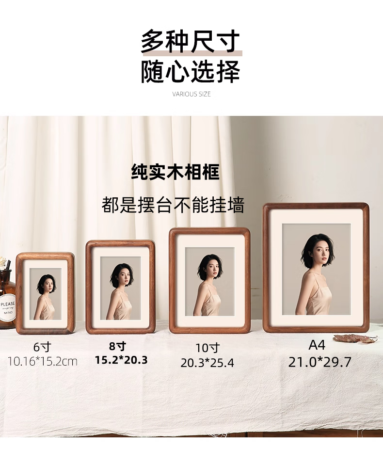 Black walnut solid wood table oil painting frame made into photo frame for children's high-end Valentine's Day and Chinese Valentine's Day birthday gift North American black walnut A4 inch solid wood mortise and tenon photo frame