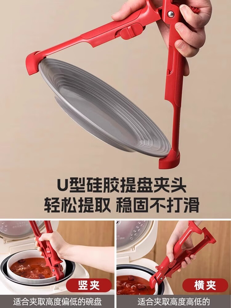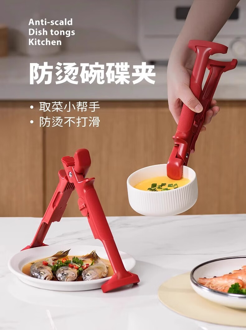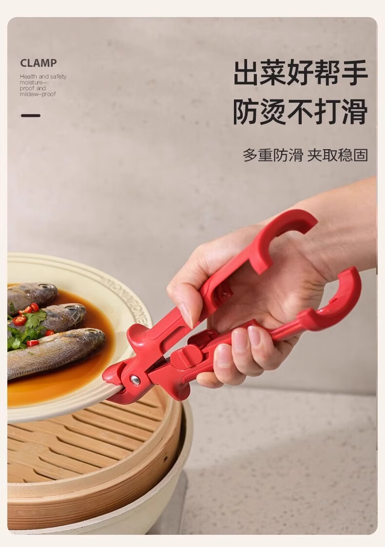 Kitchen two-in-one silicone anti-scalding clip bowl taker anti-slip plate lifter steamer clip baking pan clip anti-scalding clip artifact double head with silicone 1 handle can be clamped with one hand