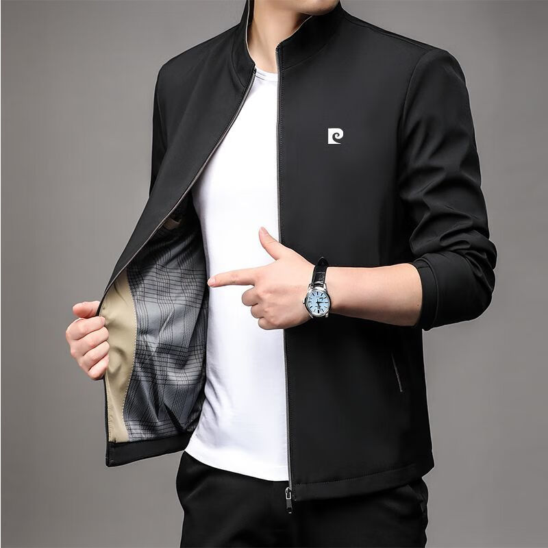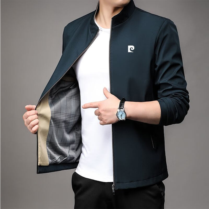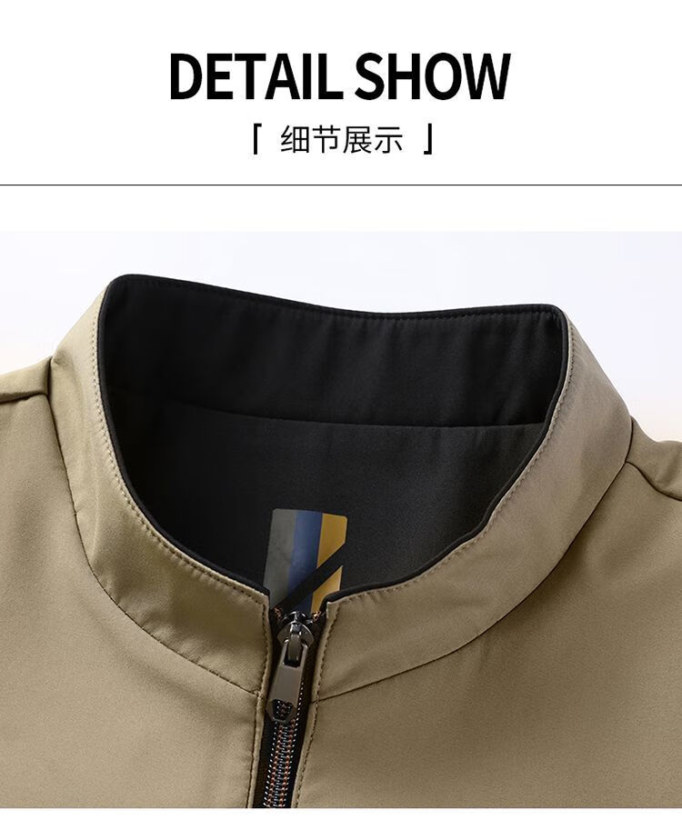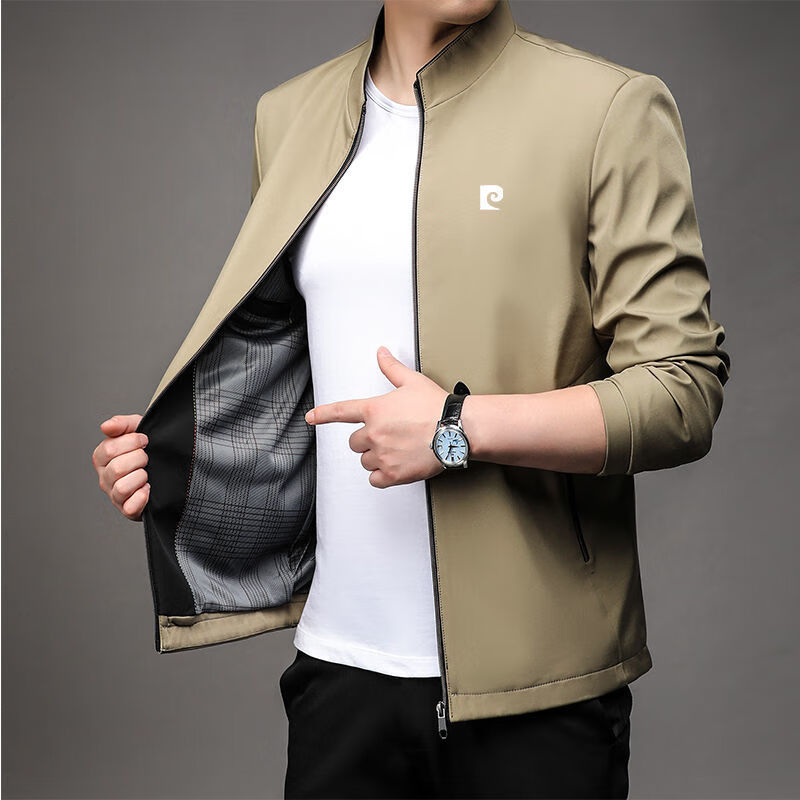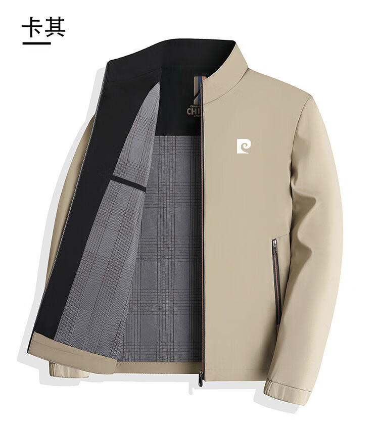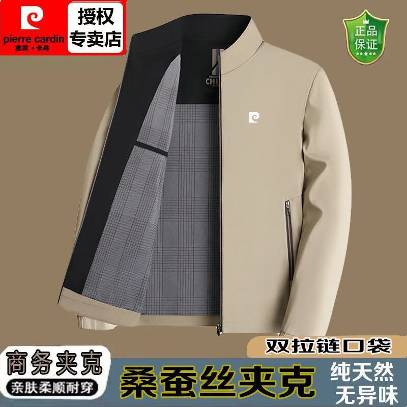 Pierre Cardin high-end authentic mulberry silk jacket spring and autumn thin stand-up collar middle-aged business dad men's casual jacket Pierre Cardin khaki boutique jacket XL recommended 135-150Jin Jin equals 0.5 kg