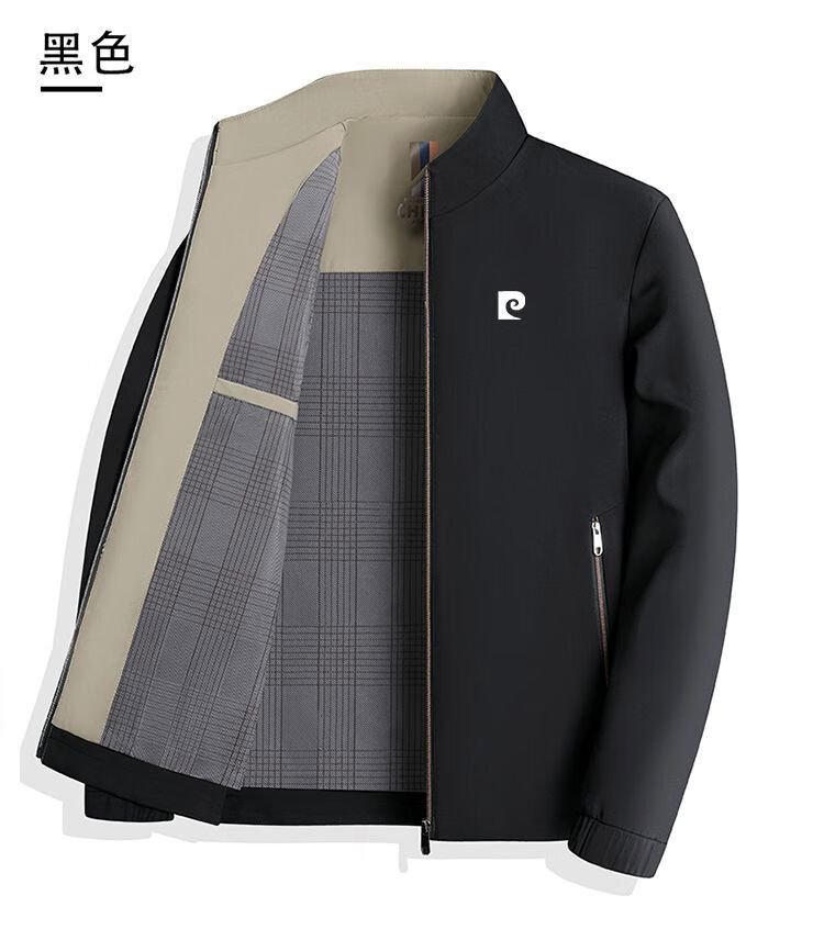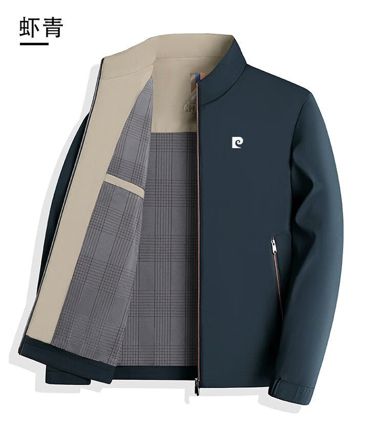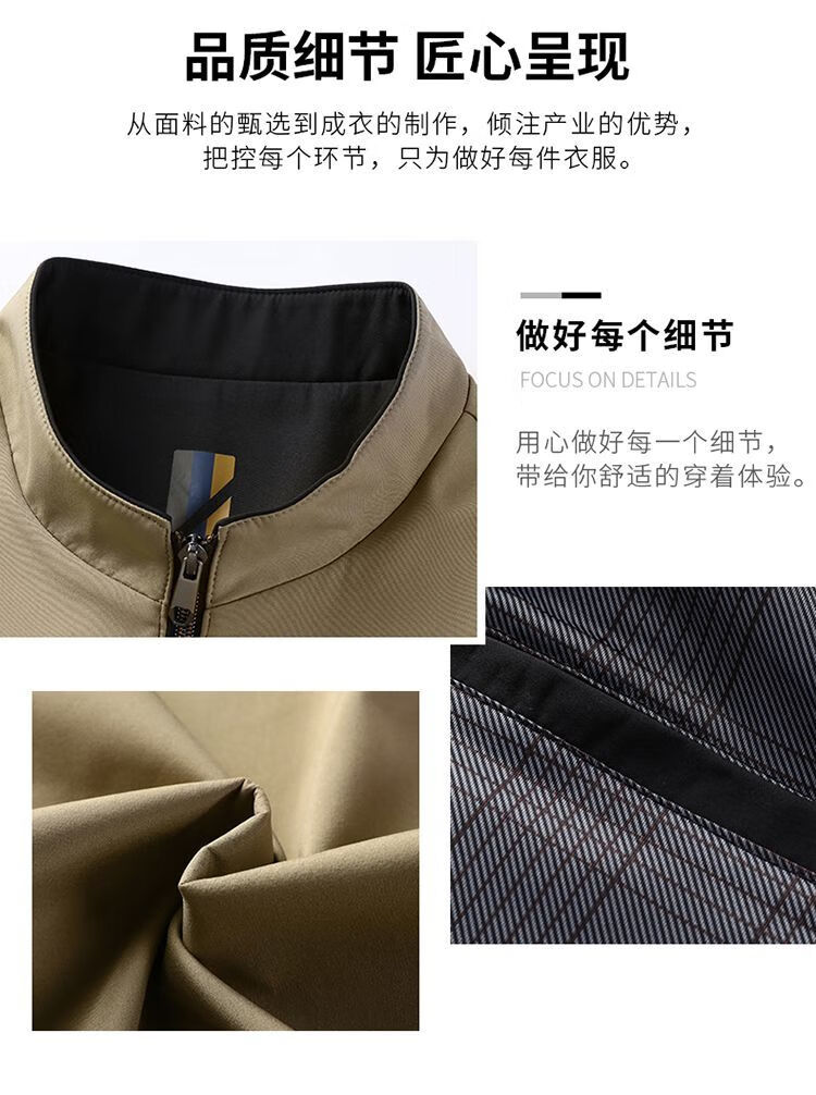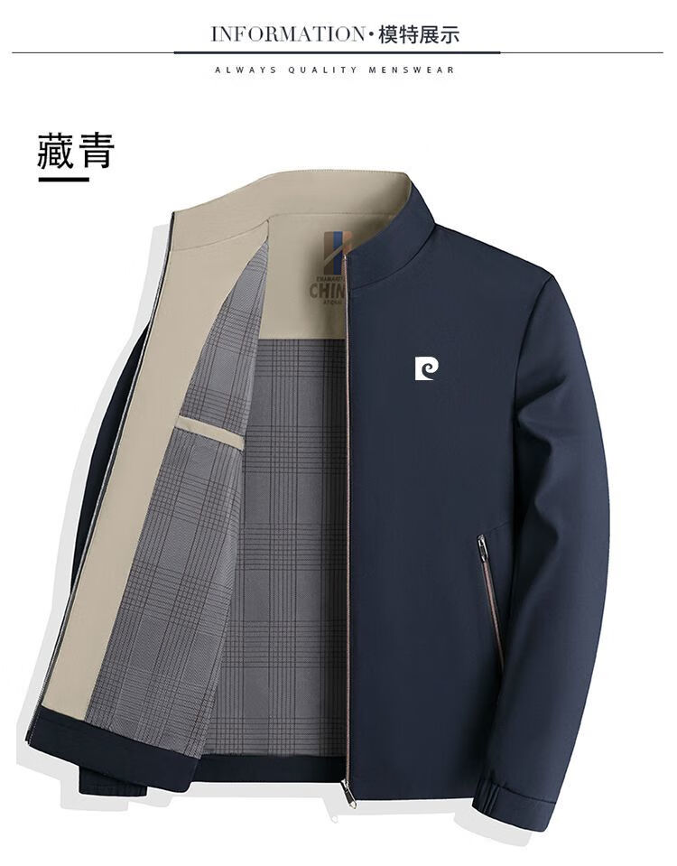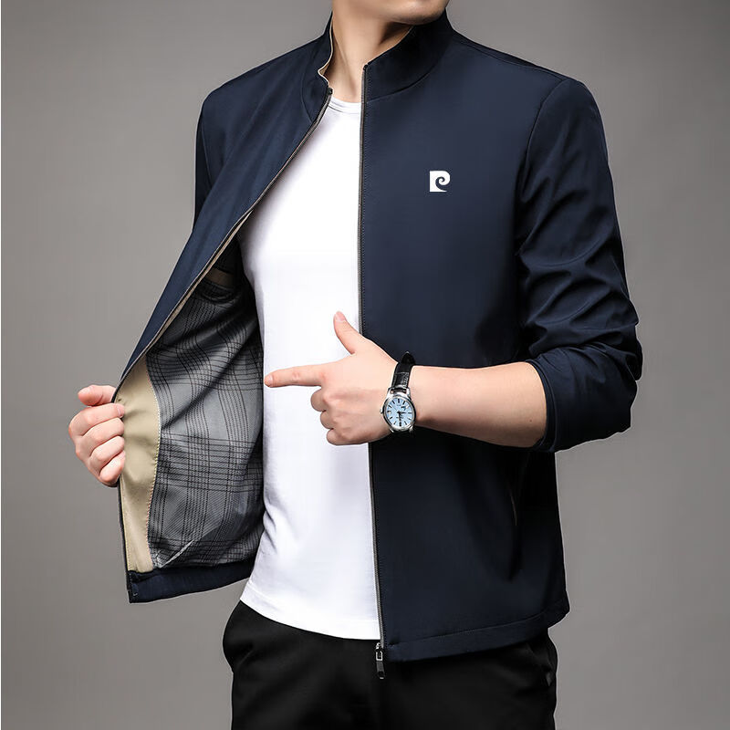 Pierre Cardin high-end authentic mulberry silk jacket spring and autumn thin stand-up collar middle-aged business dad men's casual jacket Pierre Cardin khaki boutique jacket XL recommended 135-150Jin Jin equals 0.5 kg