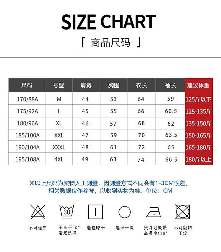 China (cm) 165 / 88-90 170 / 96-98 175 / 108-110 180 / 118-122 185 / 126-130