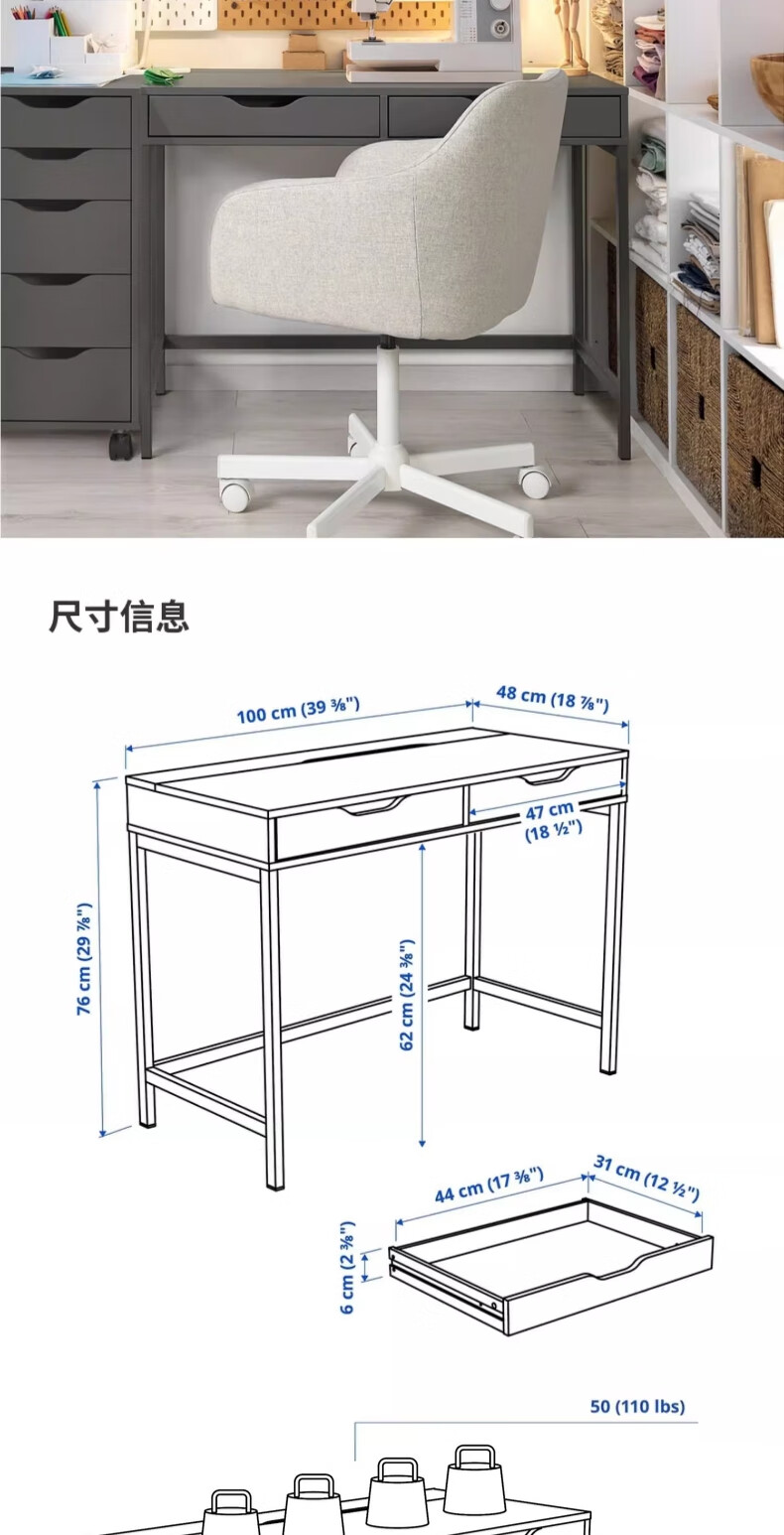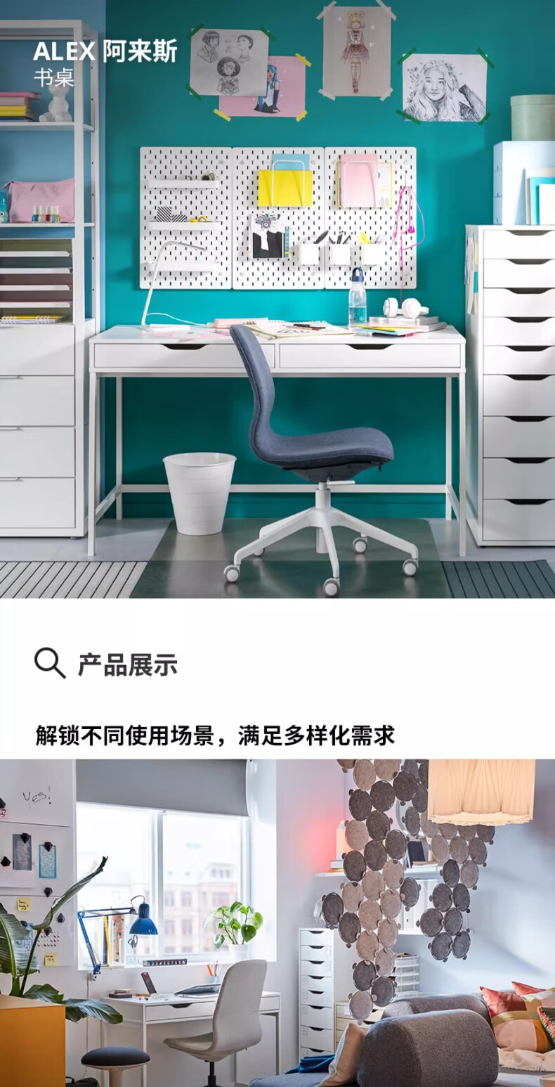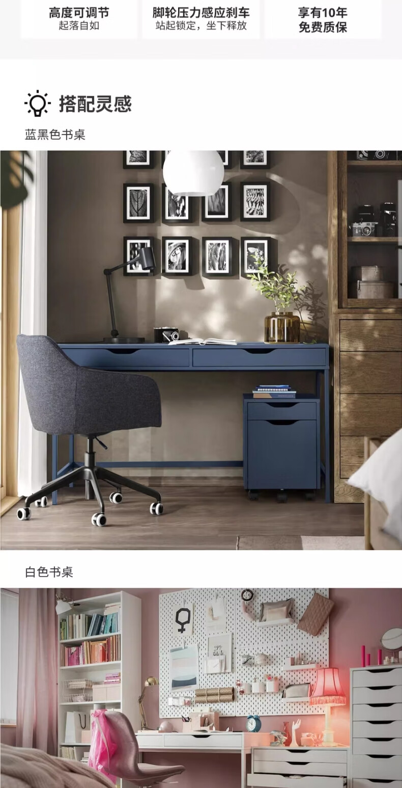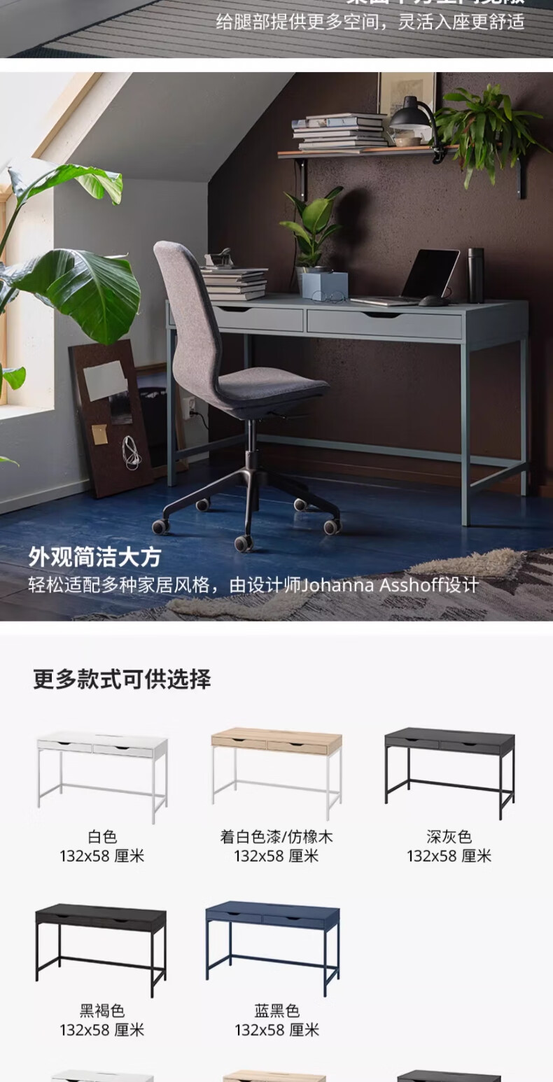 IKEA ALEX Children's Desk Light Luxury Modern Computer Desk Study Furniture Work Desk Blue Black Desk 132x58x76cm