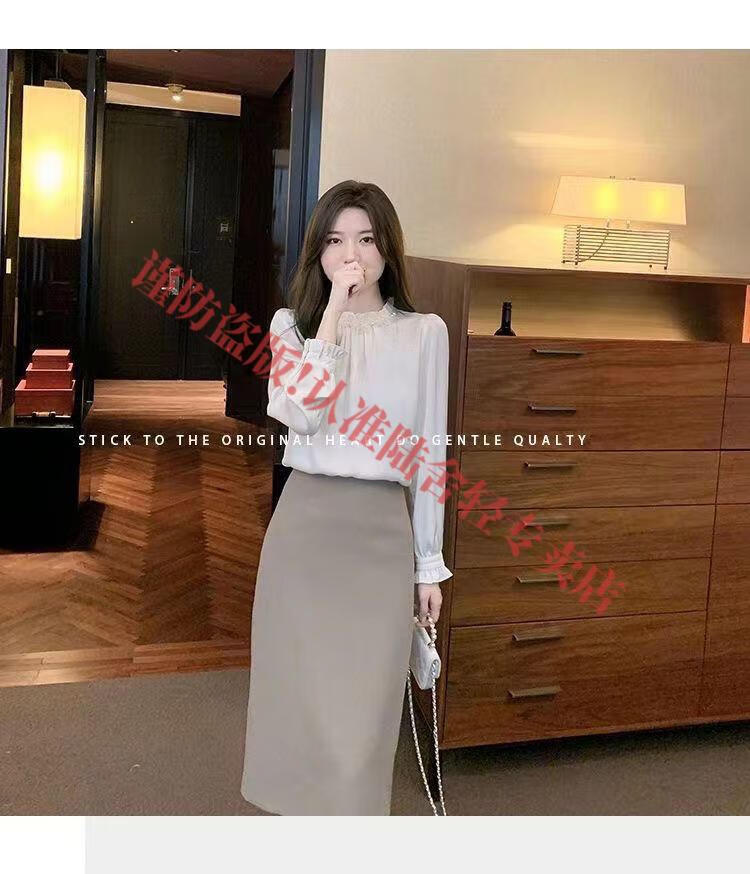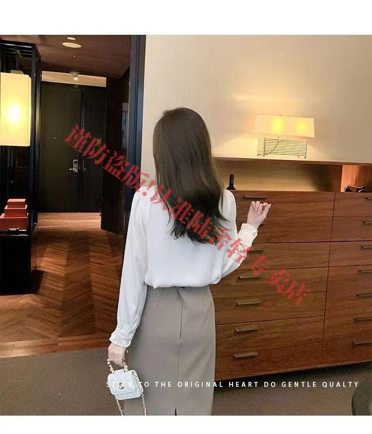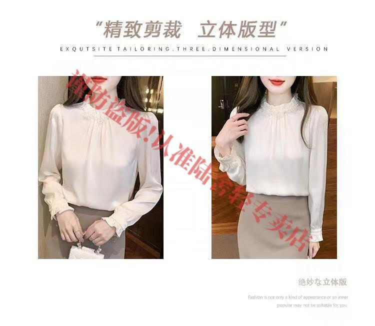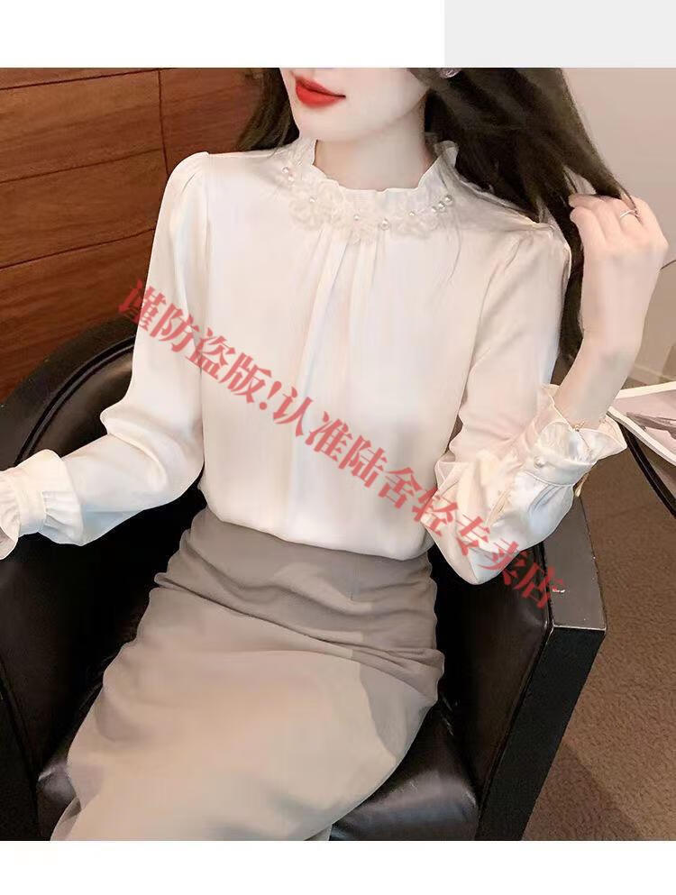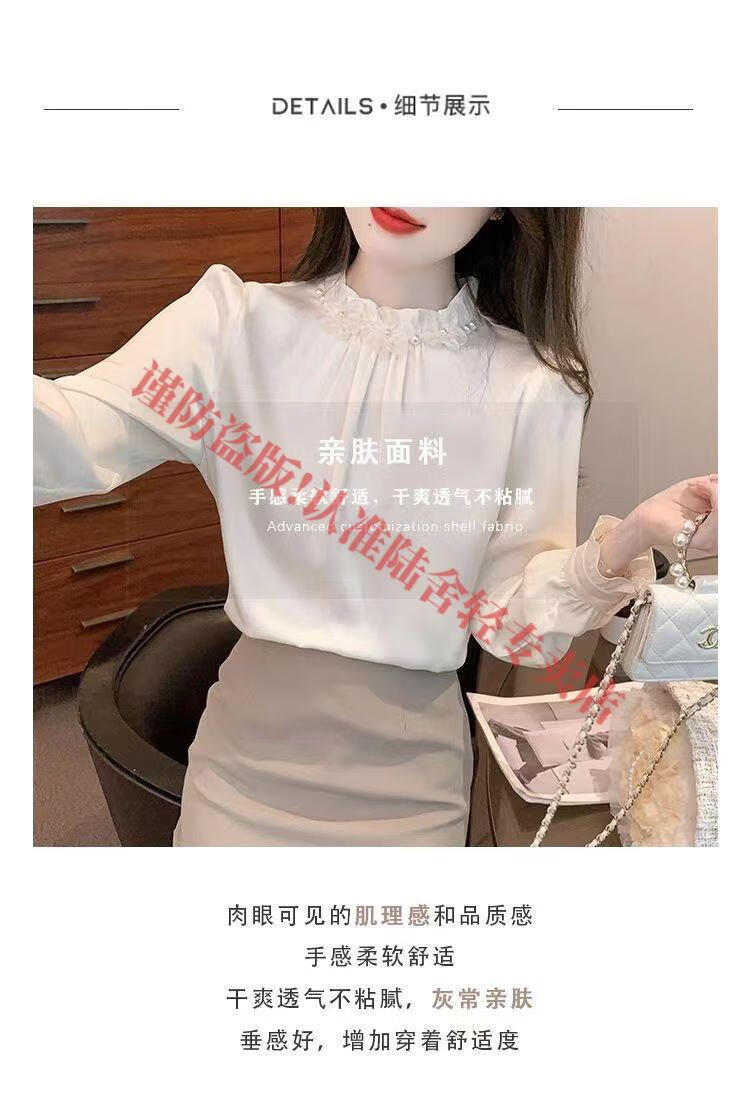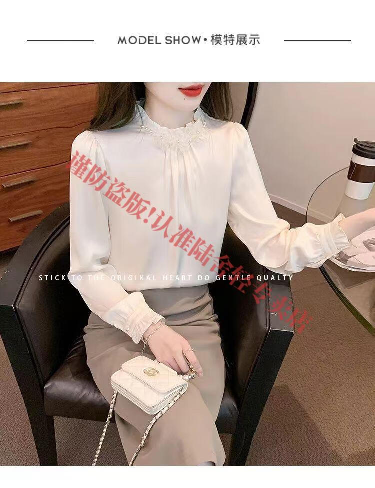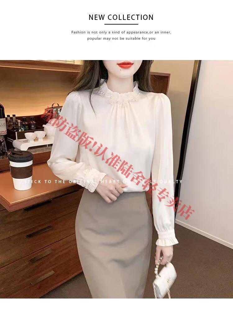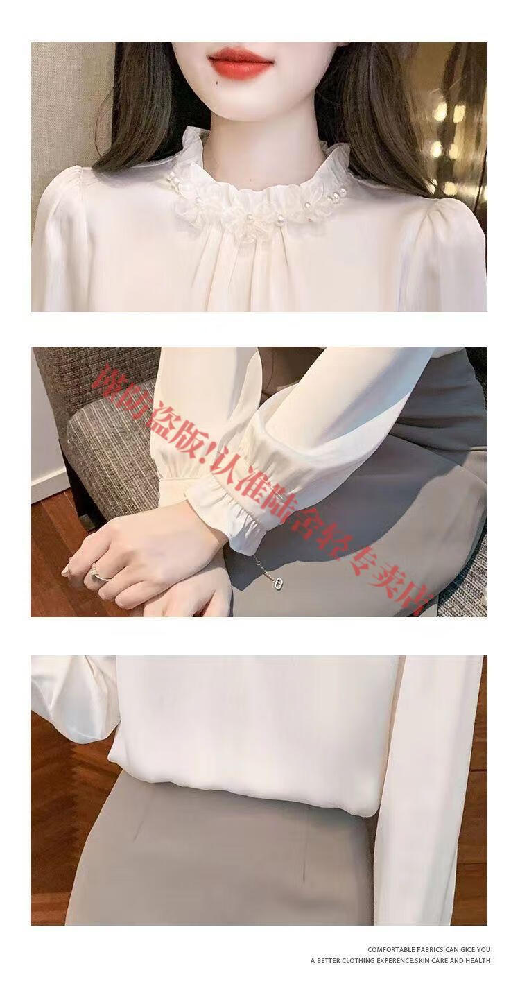 Pierre Cardin temperament stand collar beading spring and autumn 2025 new French long-sleeved chiffon shirt women's shirt age-reducing chic and beautiful shirt apricot L Recommendation 100Jin Jin is equal to 0.5kg -115Jin Jin is equal to 0.5kg