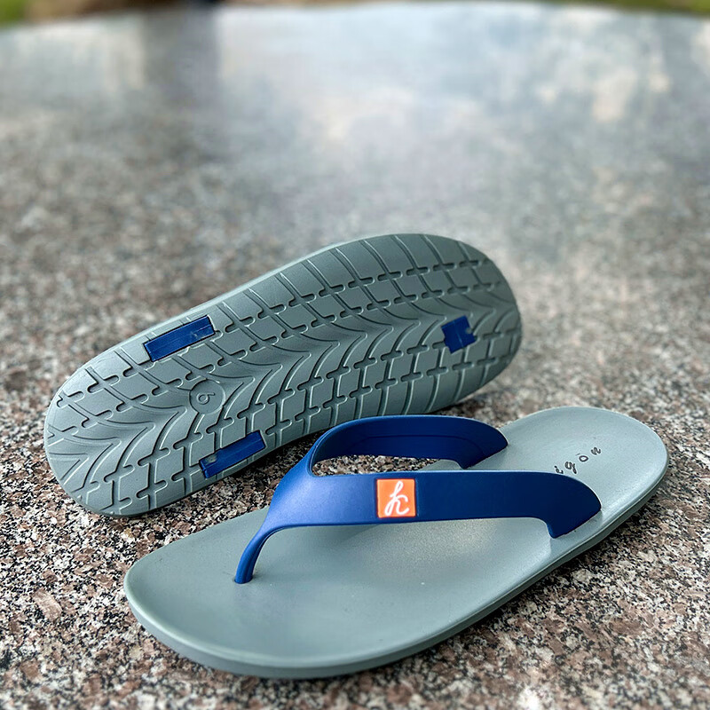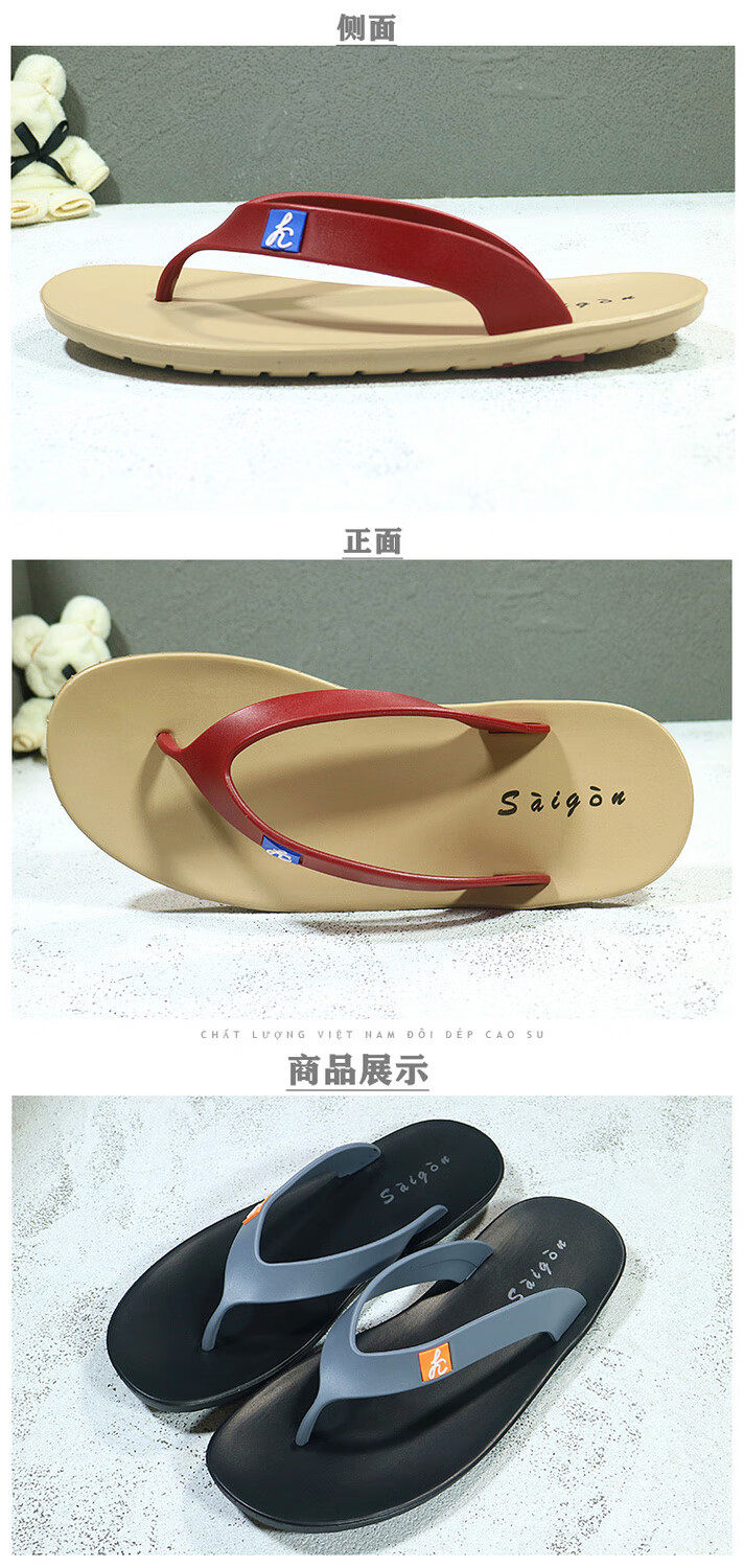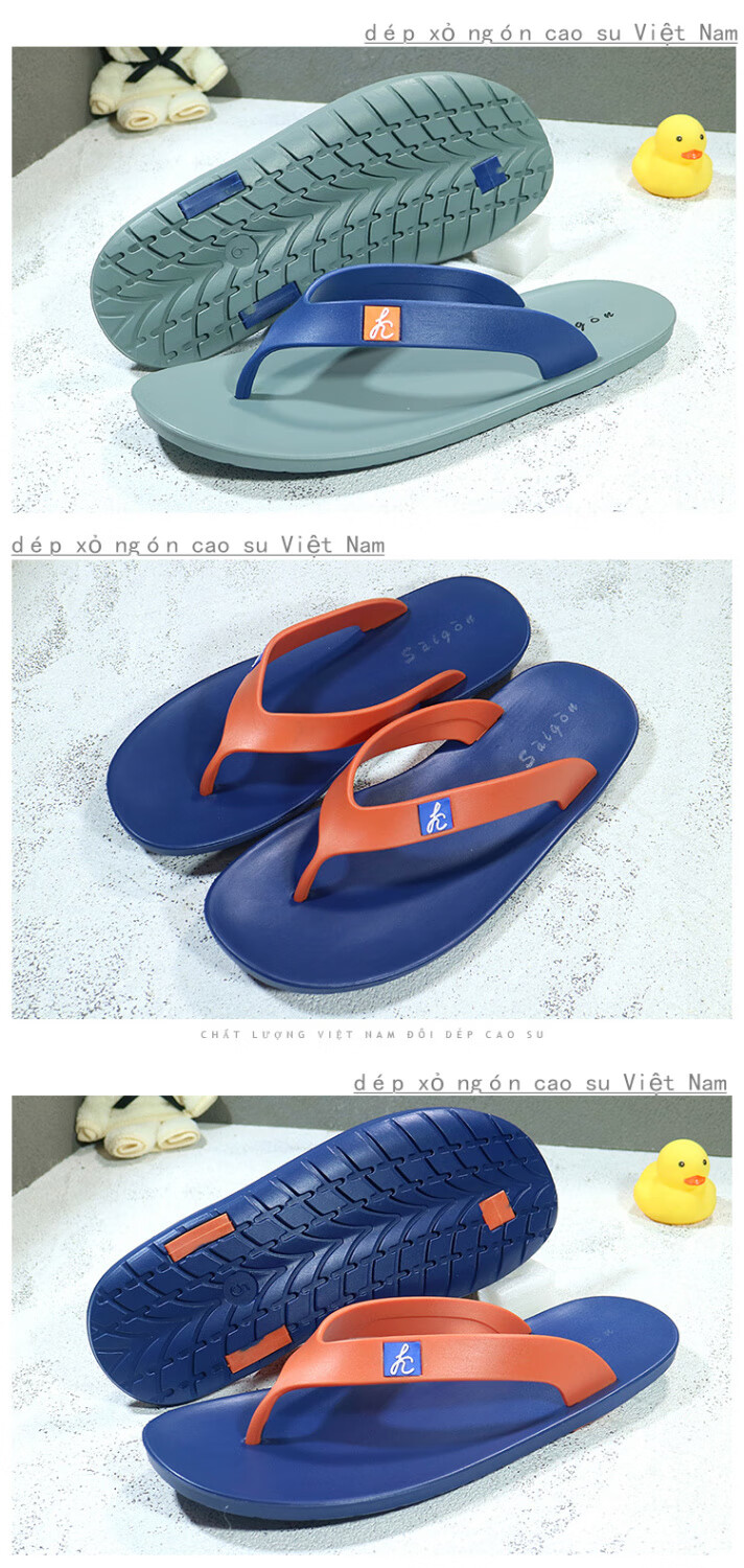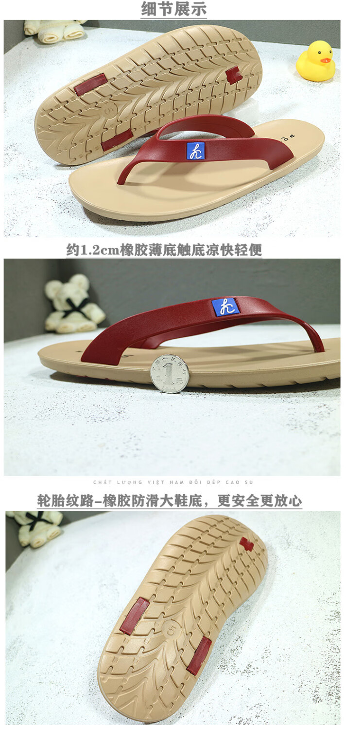 Vinoa rubber flip-flops for men, summer, wear-resistant, non-slip, youth beach, Thai latex flip-flops, floral black sole + black belt, size 10 (43-44 feet recommended)