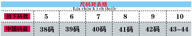 China (cm) 36 - 37 38 - 39 40 - 42 43 - 44 45 - 47