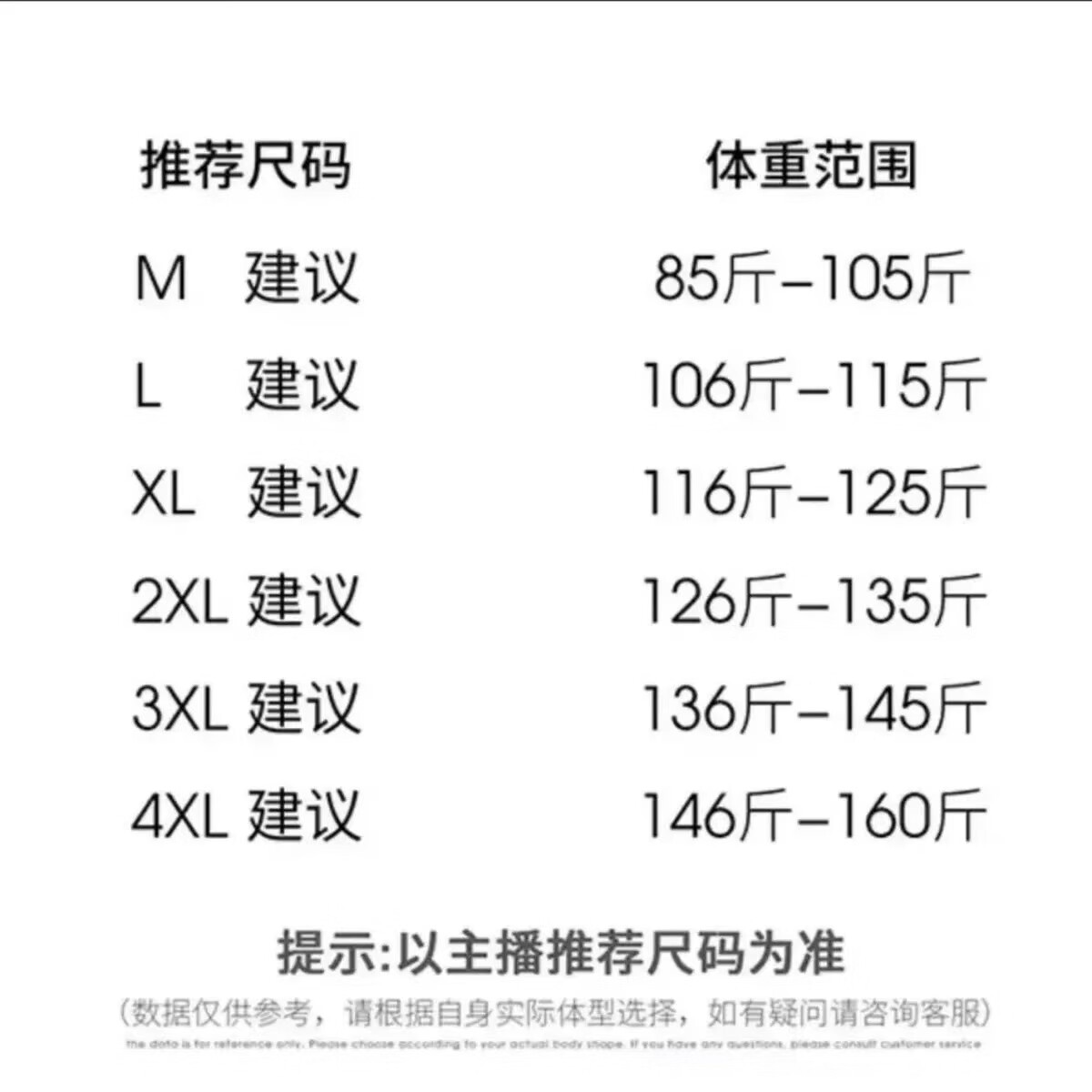 China (cm) 160-165/84-86 165-170 / 88-90 167-172 / 92-96 168-173 / 98-102 170-176 / 106-110