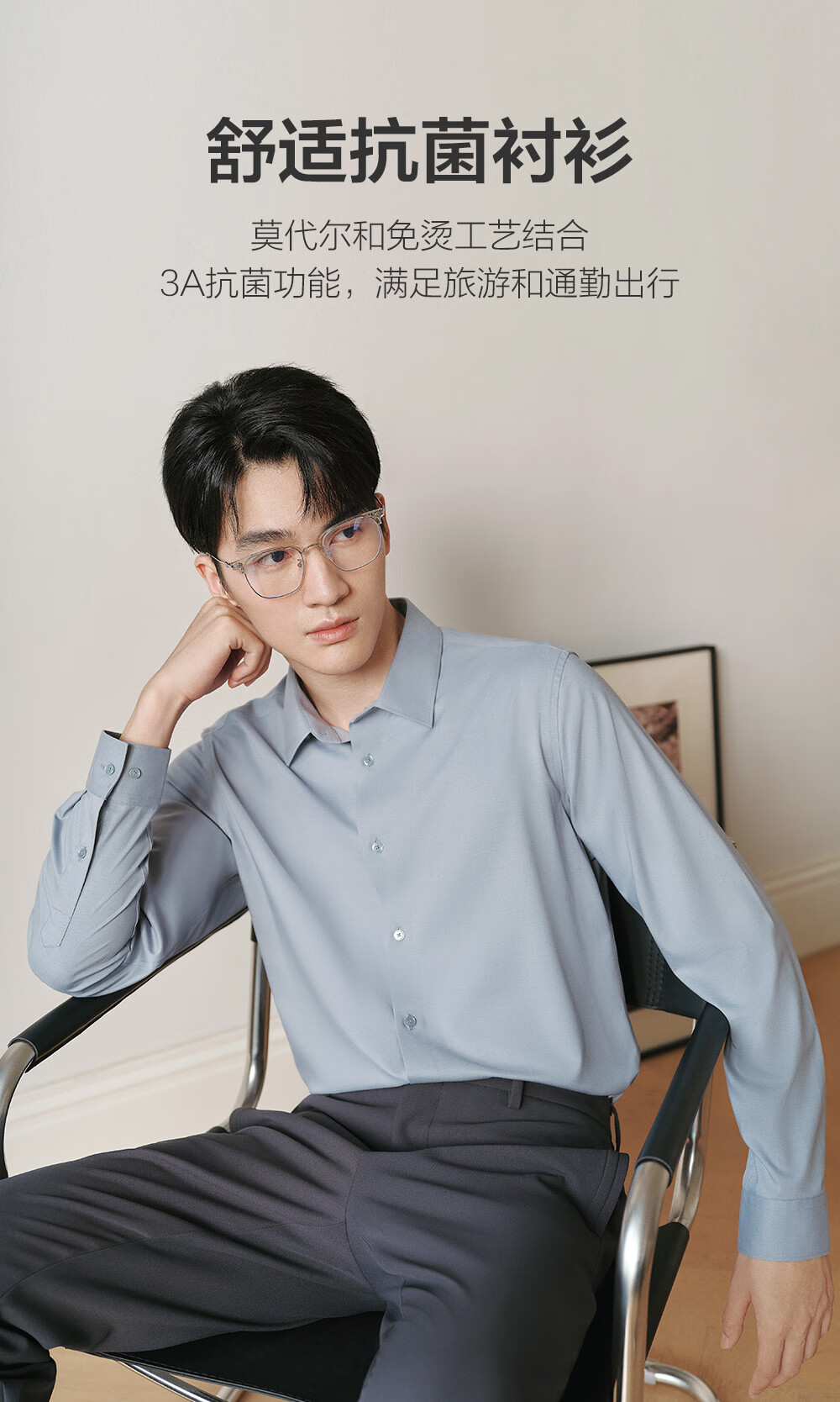 JOEONE non-iron antibacterial worry-free shirt men's business casual versatile autumn style including modal shirt slim version + gray + TC1DX40737 41 (175/96A)
