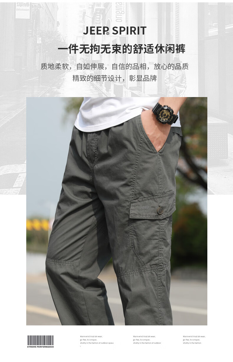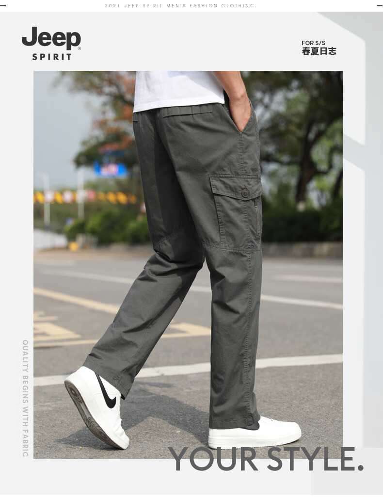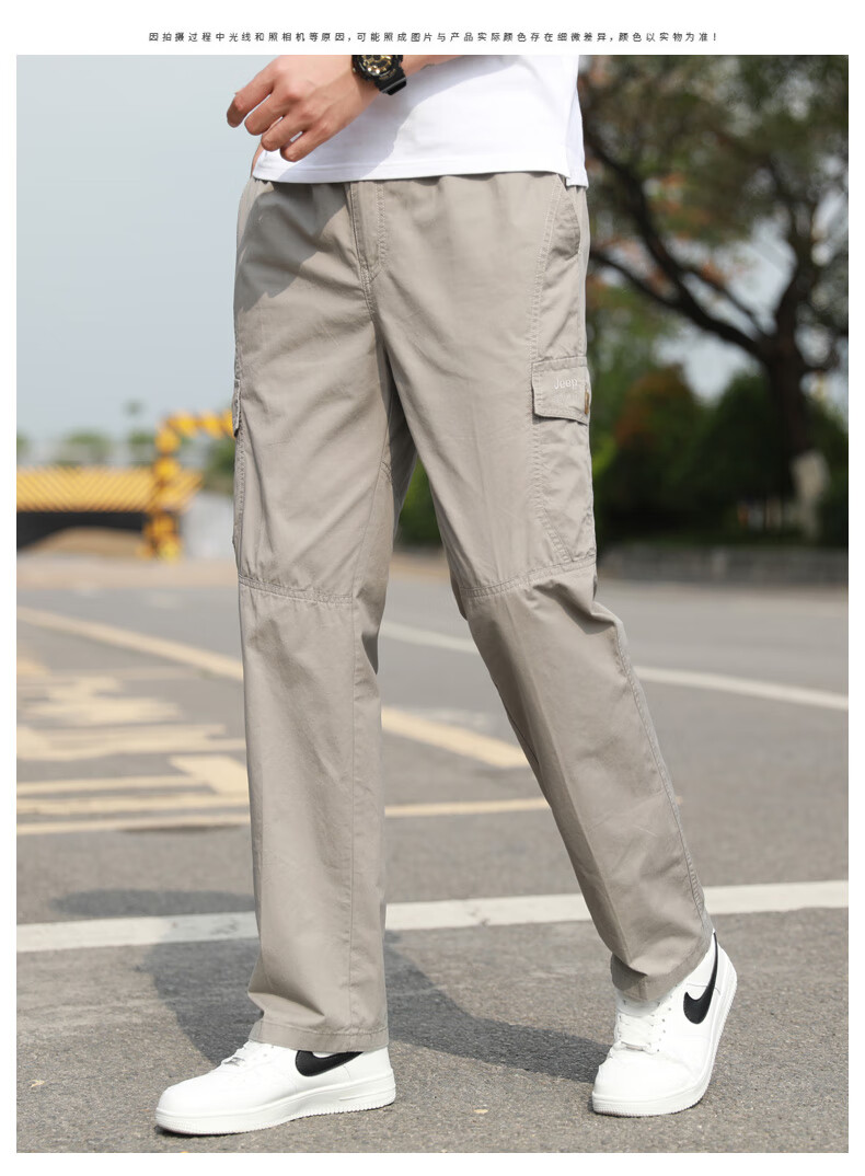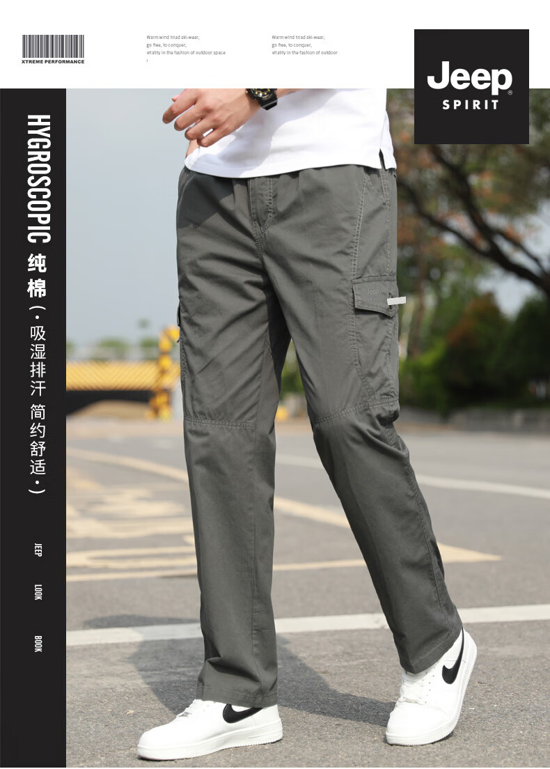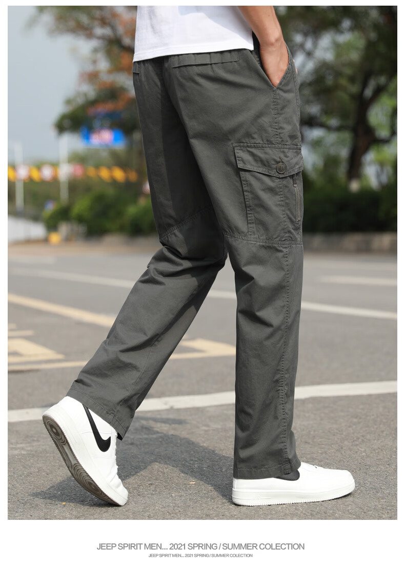 JEEP SPIRIT Casual Pants Men's Summer Overalls Outdoor Loose Sports Pants Summer Straight Pants Long Pants Light Gray XL