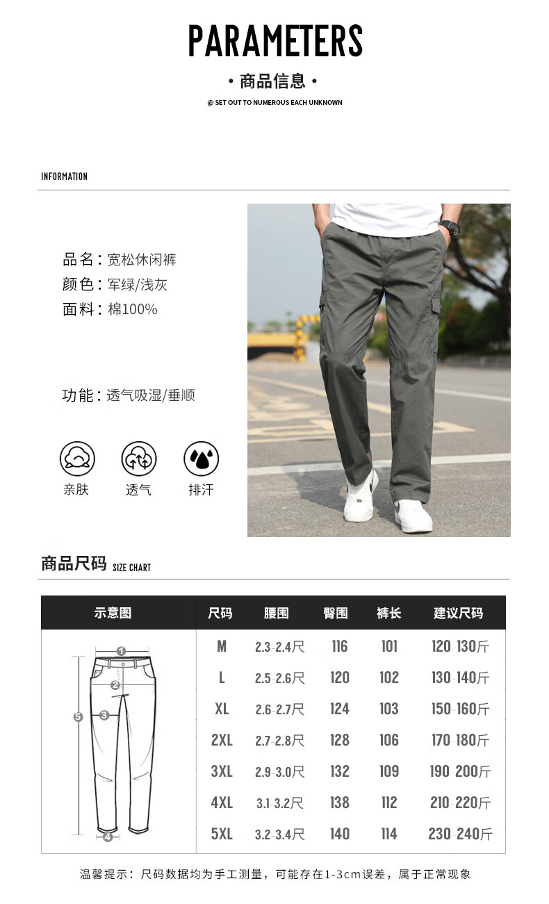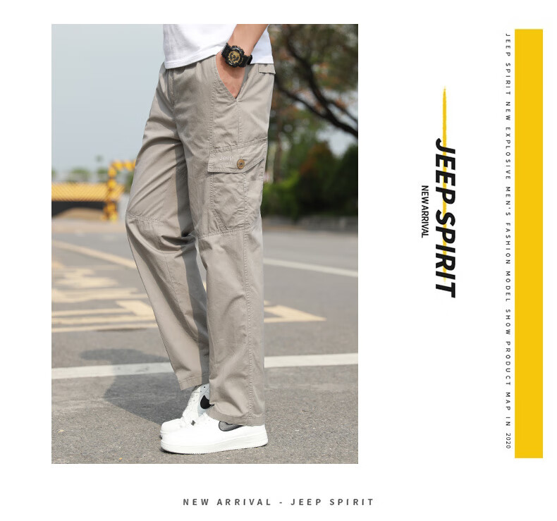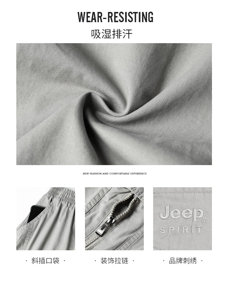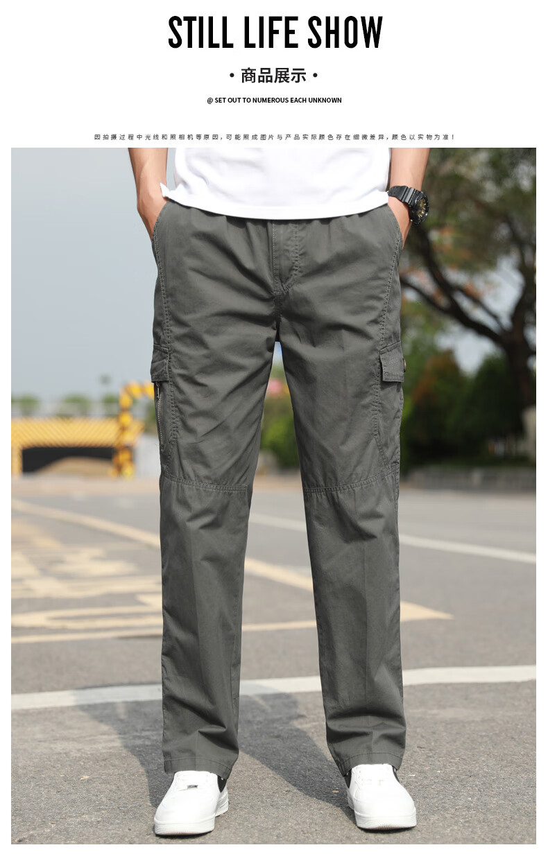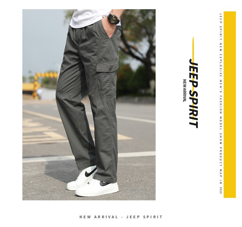 JEEP SPIRIT Casual Pants Men's Summer Overalls Outdoor Loose Sports Pants Summer Straight Pants Long Pants Light Gray XL