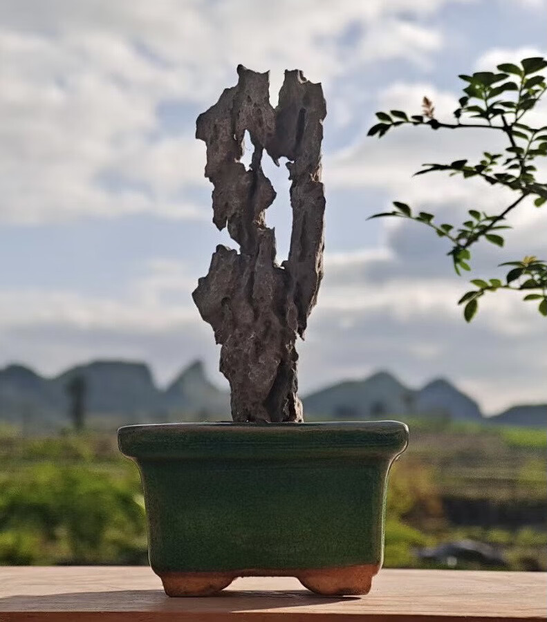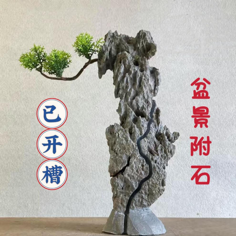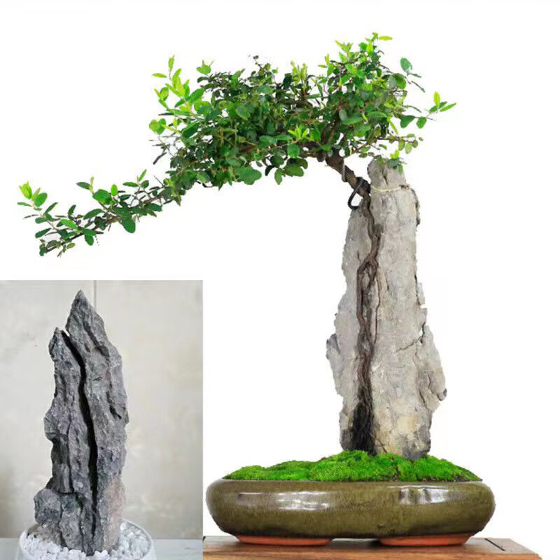 The raw stone is slotted and attached to the stone bonsai, which can be attached with elm, golden bean, fish tank, rockery, garden landscaping stone 17-20cm (slotted model will be shipped randomly)