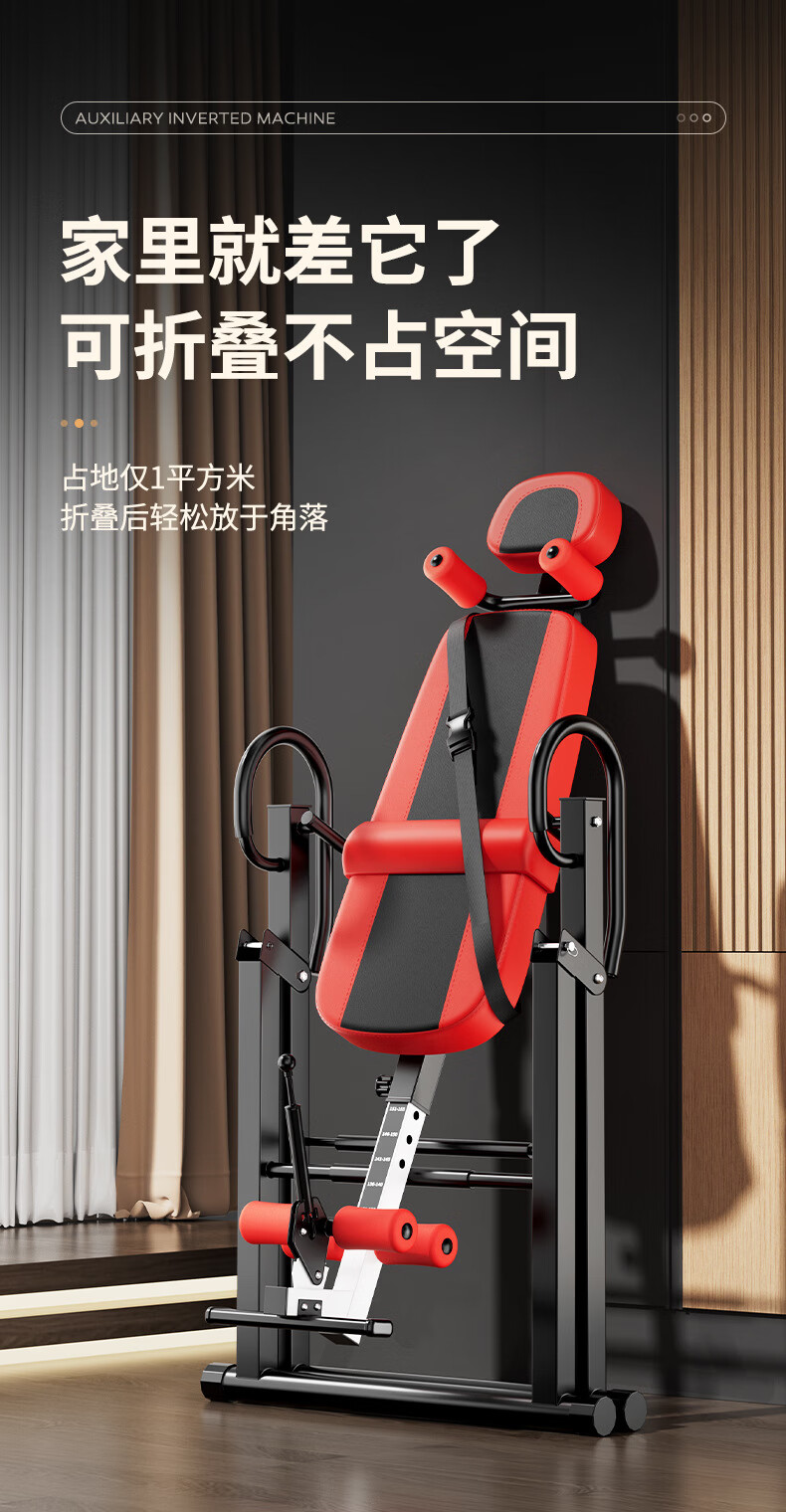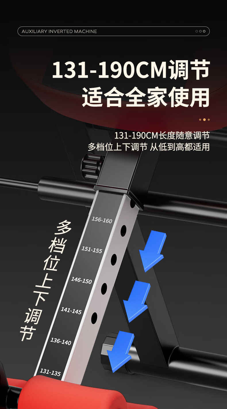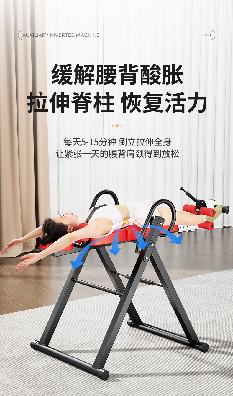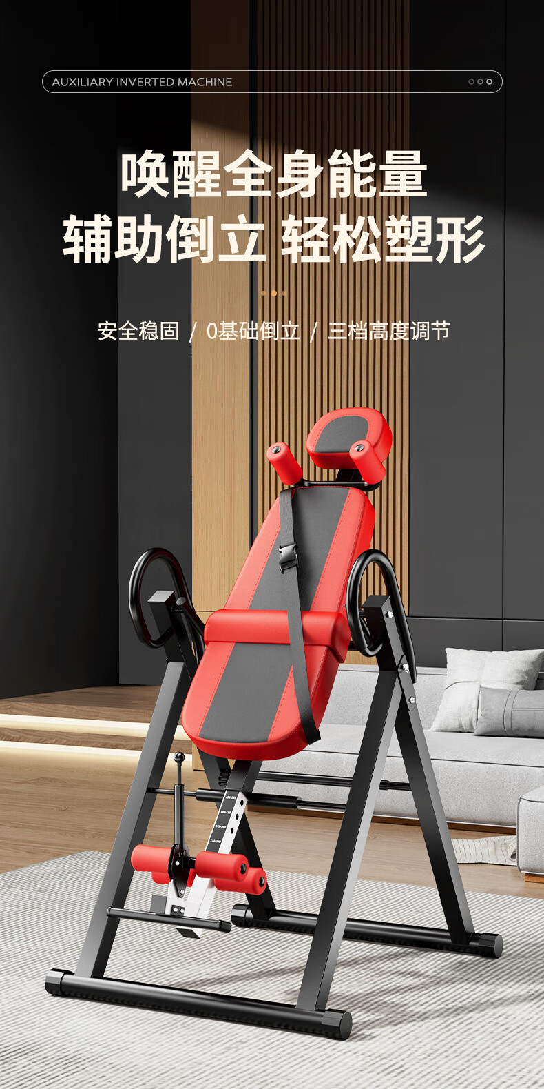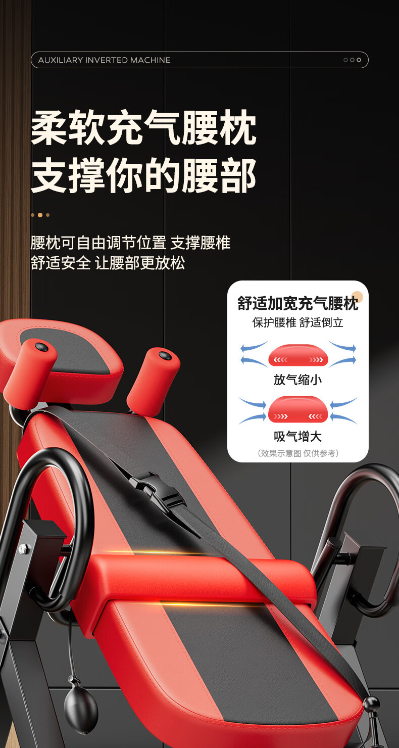 Kaooseen inversion machine, household cervical and lumbar stretching artifact, inverted traction device, stretching waist inverted device, fitness equipment, black and red - universal for height 131-190CM, load-bearing 220Jin, Jin is equal to 0.5kg