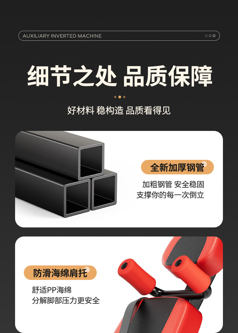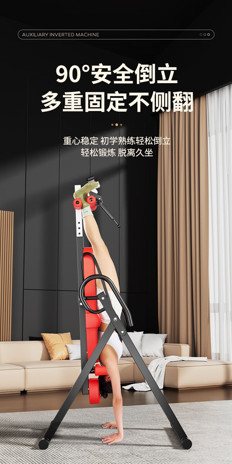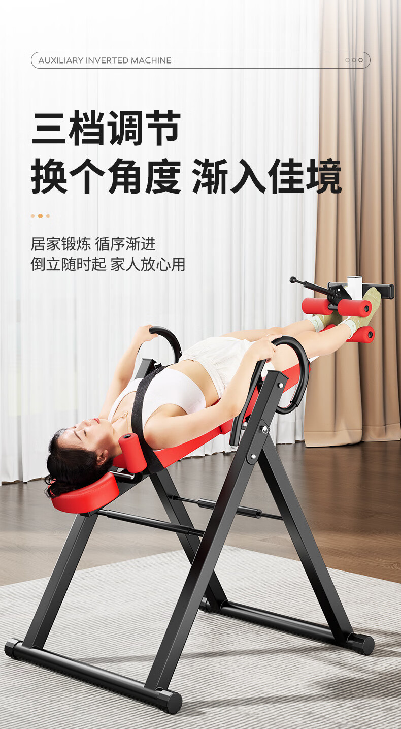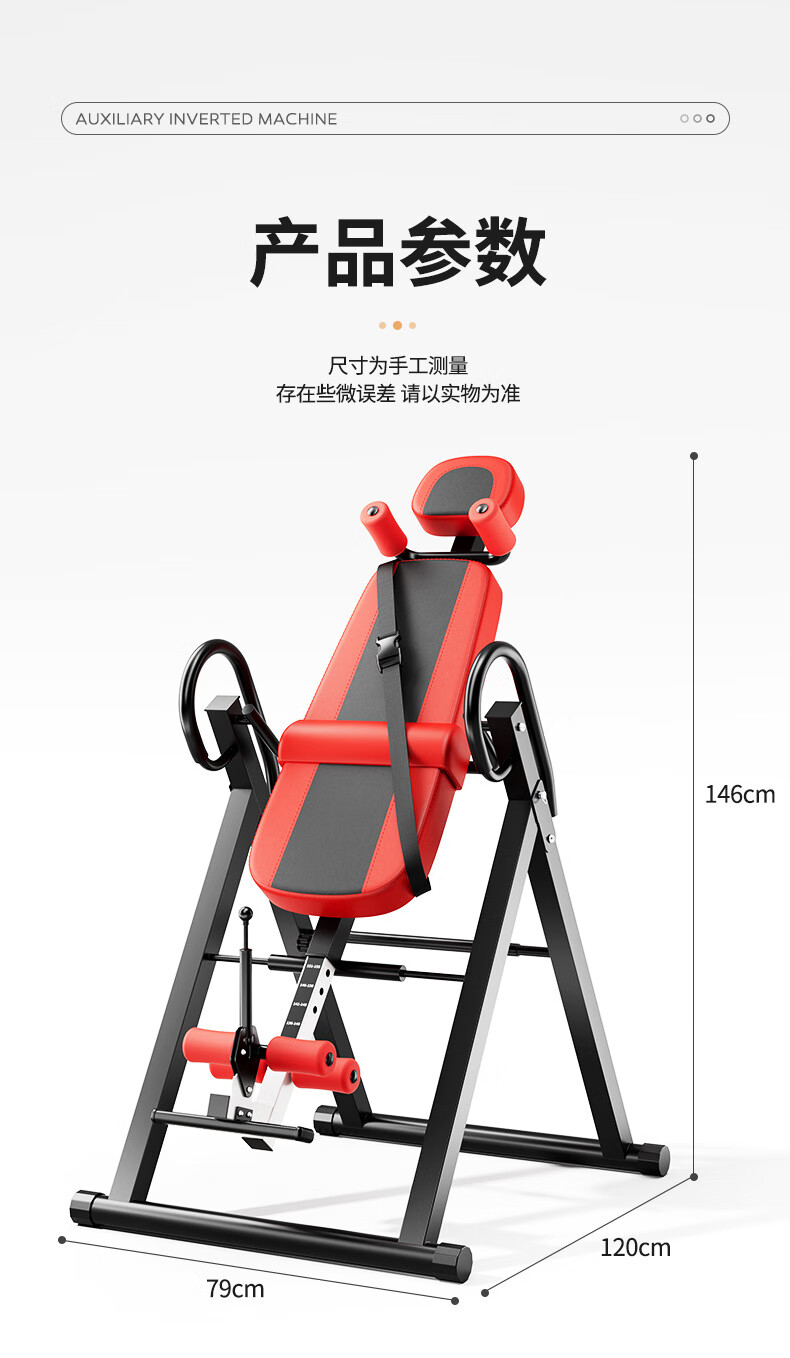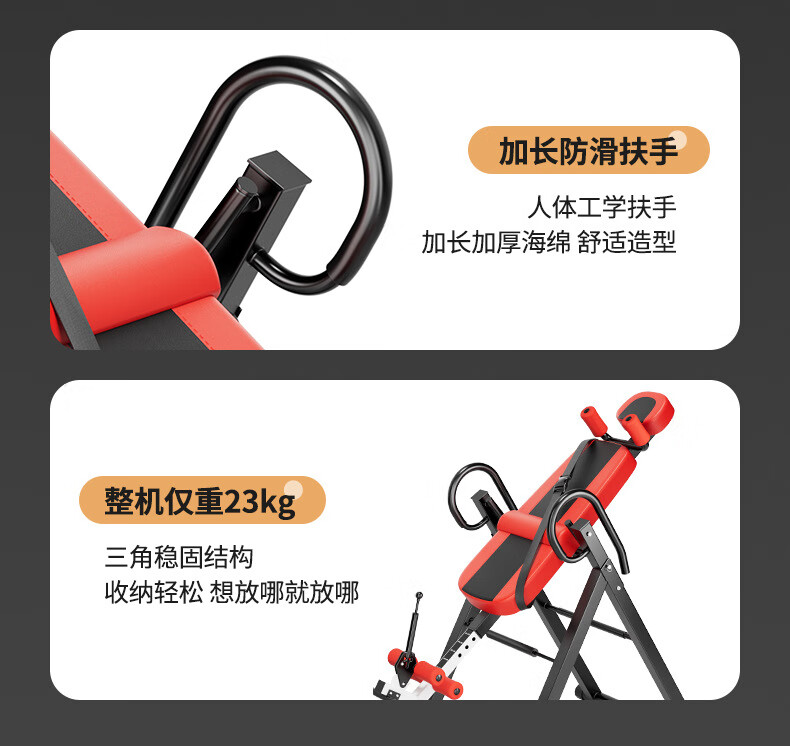 Kaooseen inversion machine, household cervical and lumbar stretching artifact, inverted traction device, stretching waist inverted device, fitness equipment, black and red - universal for height 131-190CM, load-bearing 220Jin, Jin is equal to 0.5kg
