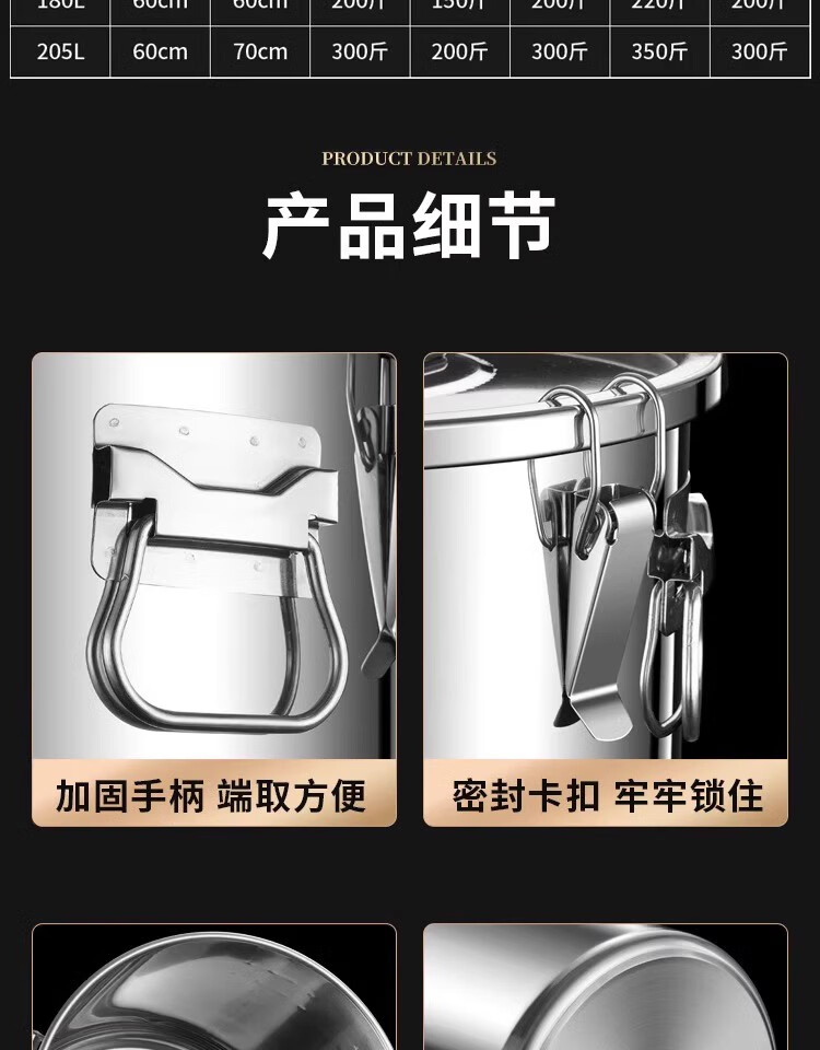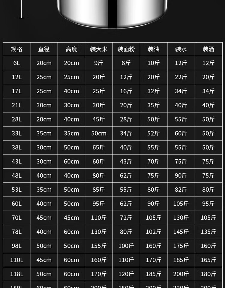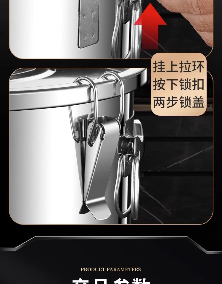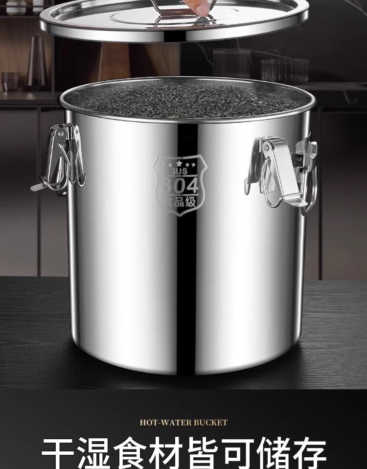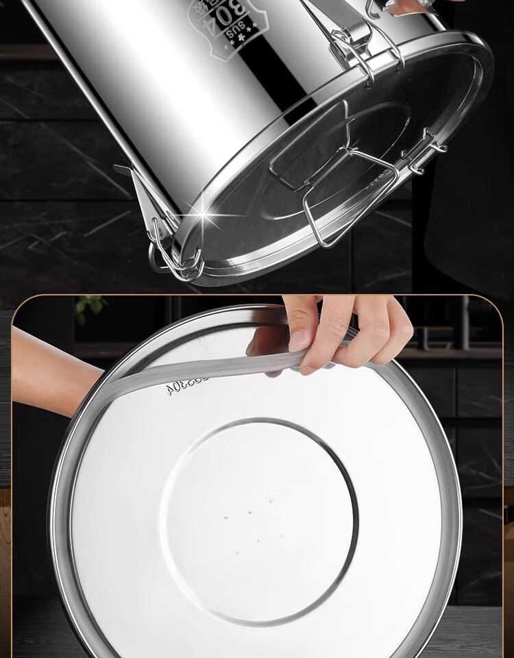PGY Japan imported quality extra thick sealed bucket 304 stainless steel rice bucket insect-proof and moisture-proof rice tank household rice storage bucket soup 3.0 extra thick 304 steel seal sealed rice bucket 12 liters