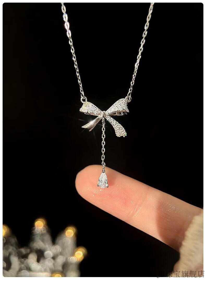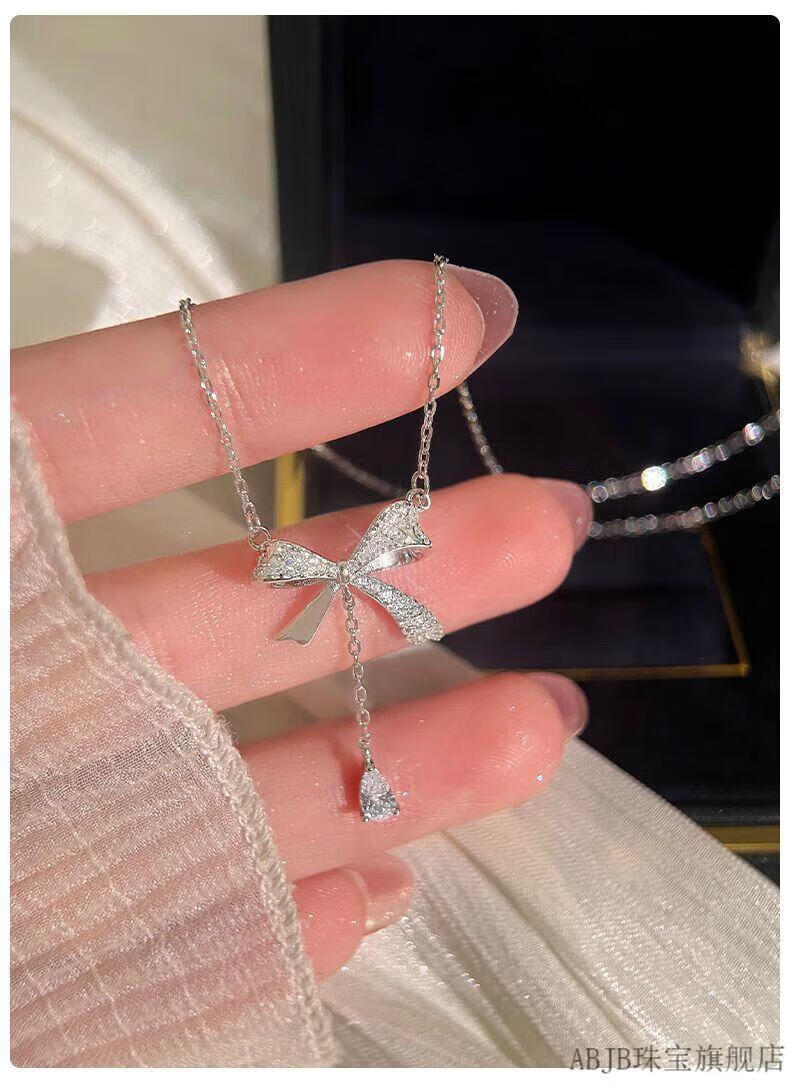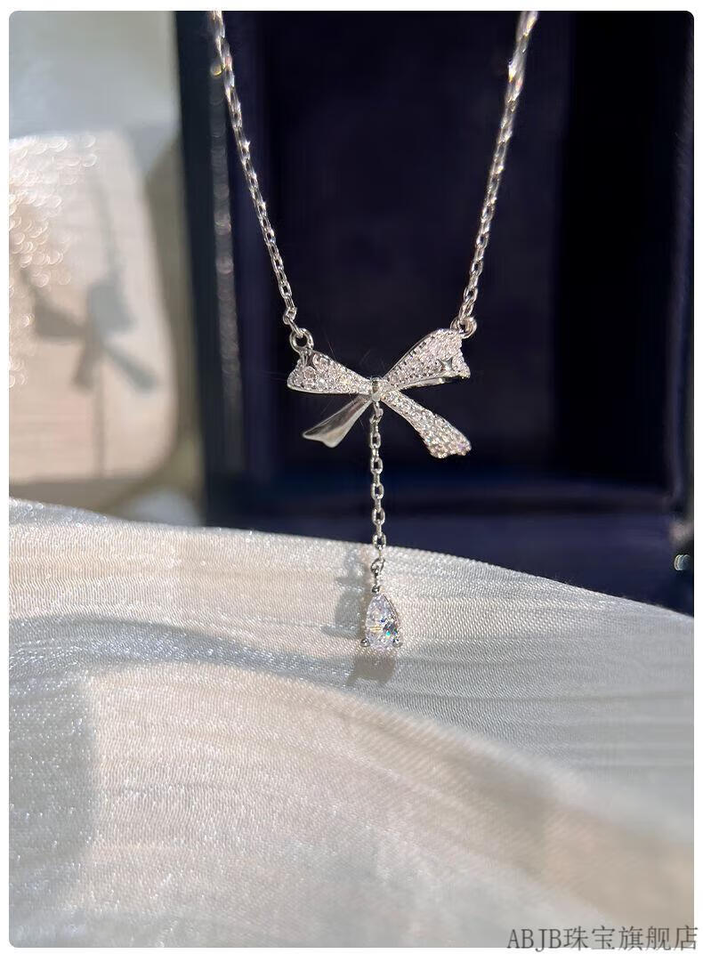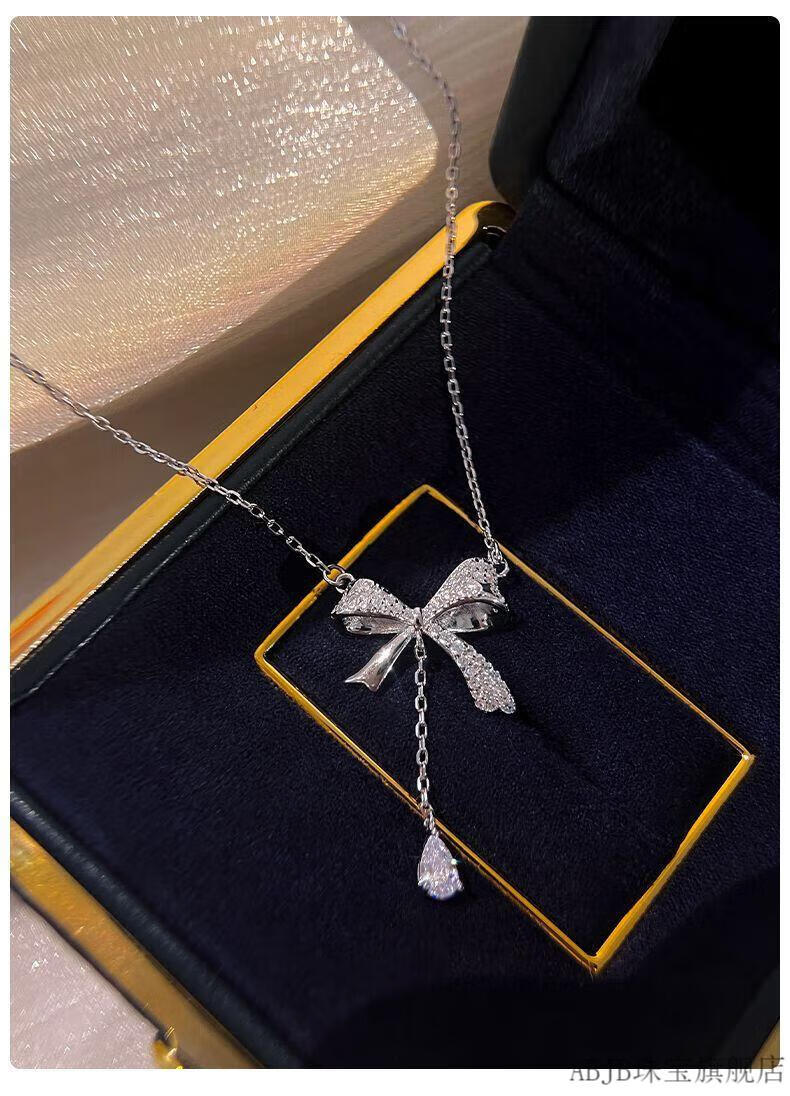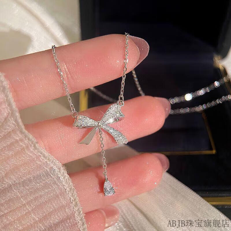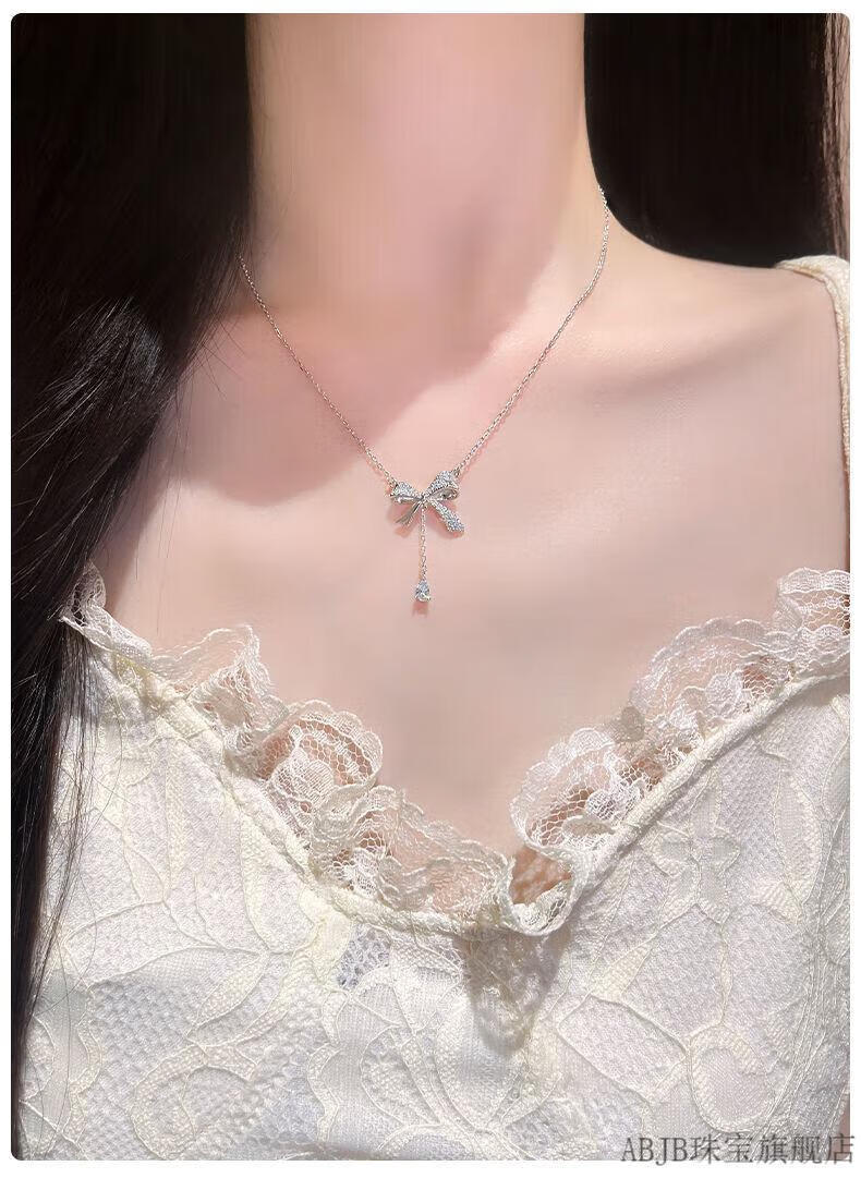 ABJB Old Phoenix 999 Pure Silver Bow Necklace Women's Light Luxury Niche Chinese Valentine's Day Gift for Girlfriend