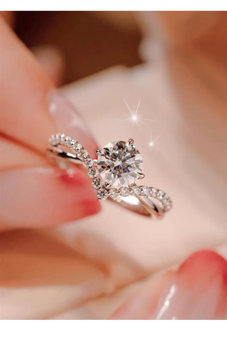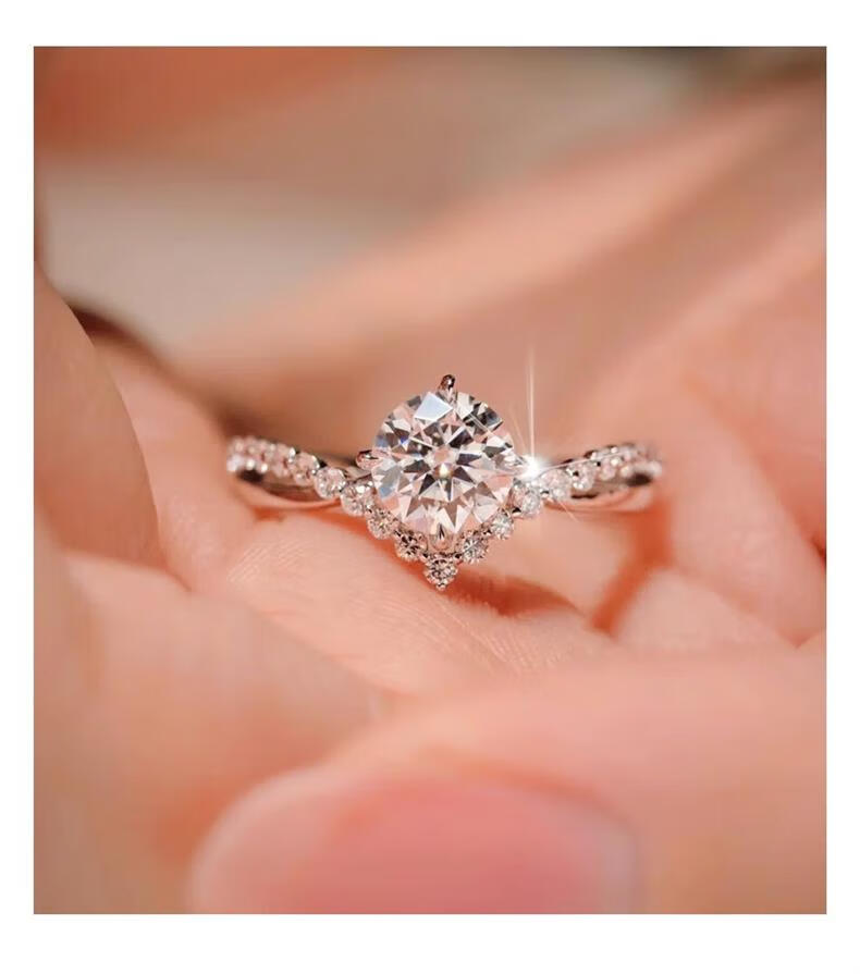 Pt950 Platinum Coronation for Love Moissanite Diamond Ring Diamond Ring Women's Engagement Proposal and Wedding Ring Closed Ring Coronation for Love Diamond Ring 50 Points - Light Luxury Model The default live opening can be adjusted in size