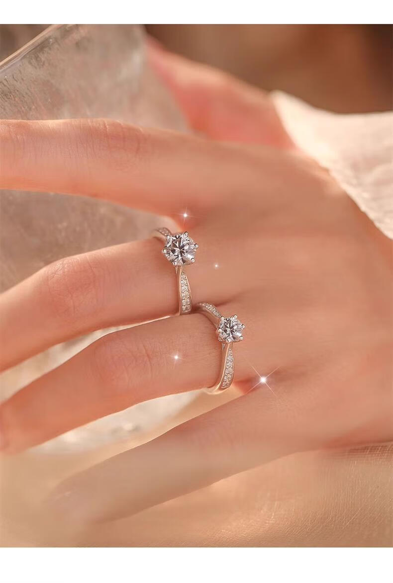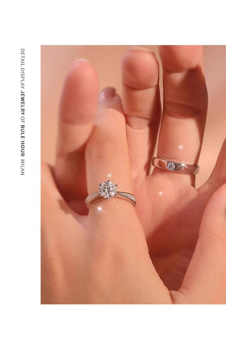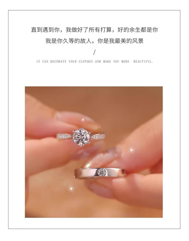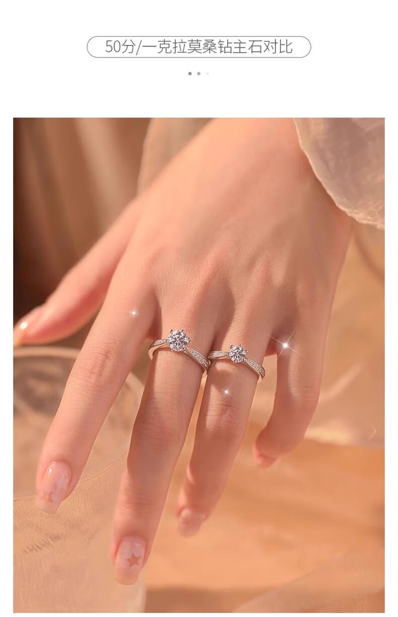 Pt950 platinum moissanite color diamond ring for female couple. A pair of rings for wedding, engagement and proposal. Light luxury gift. Star women's ring 50 points. Men's ring 10 points - light luxury model. The default live mouth can be adjusted in size.