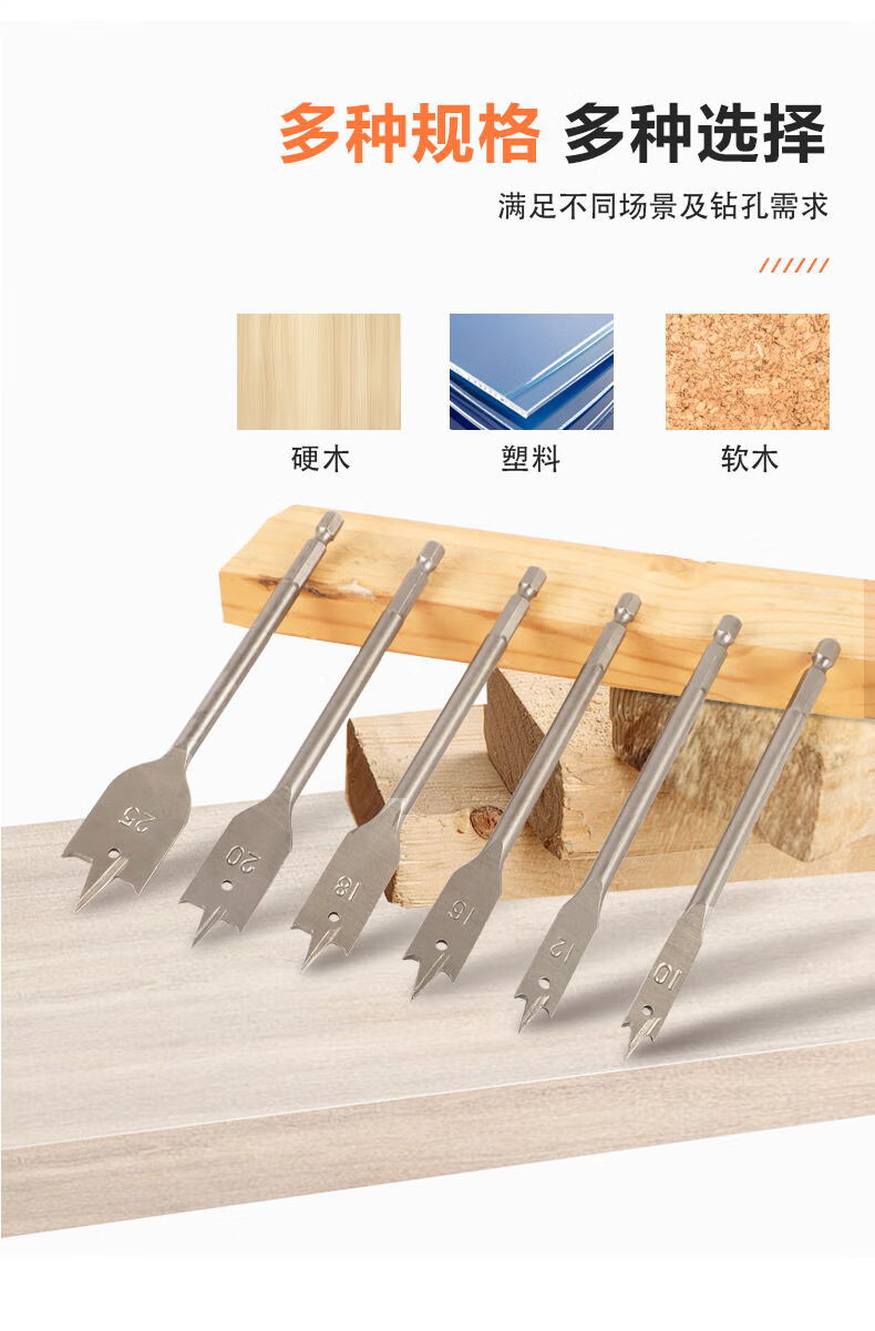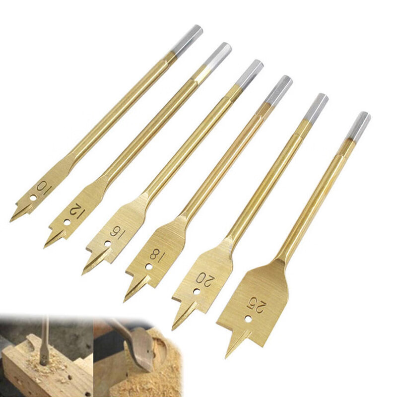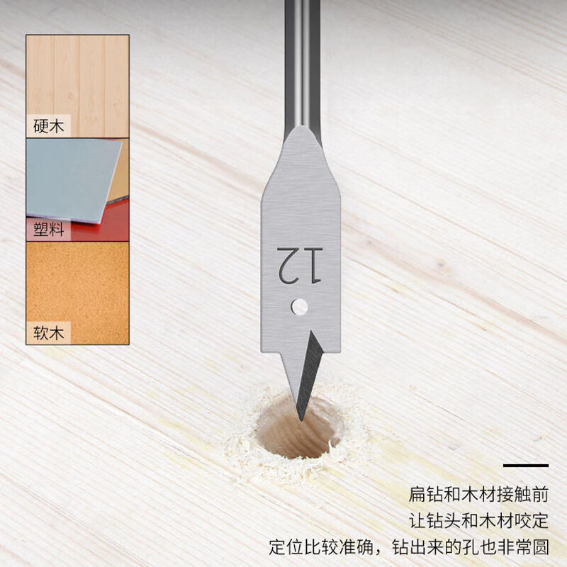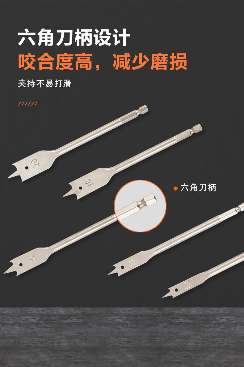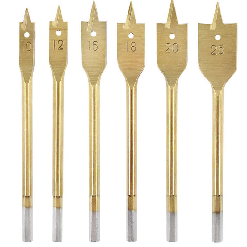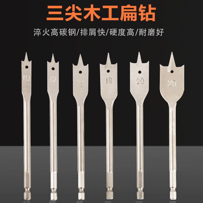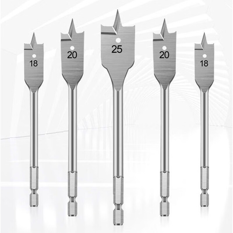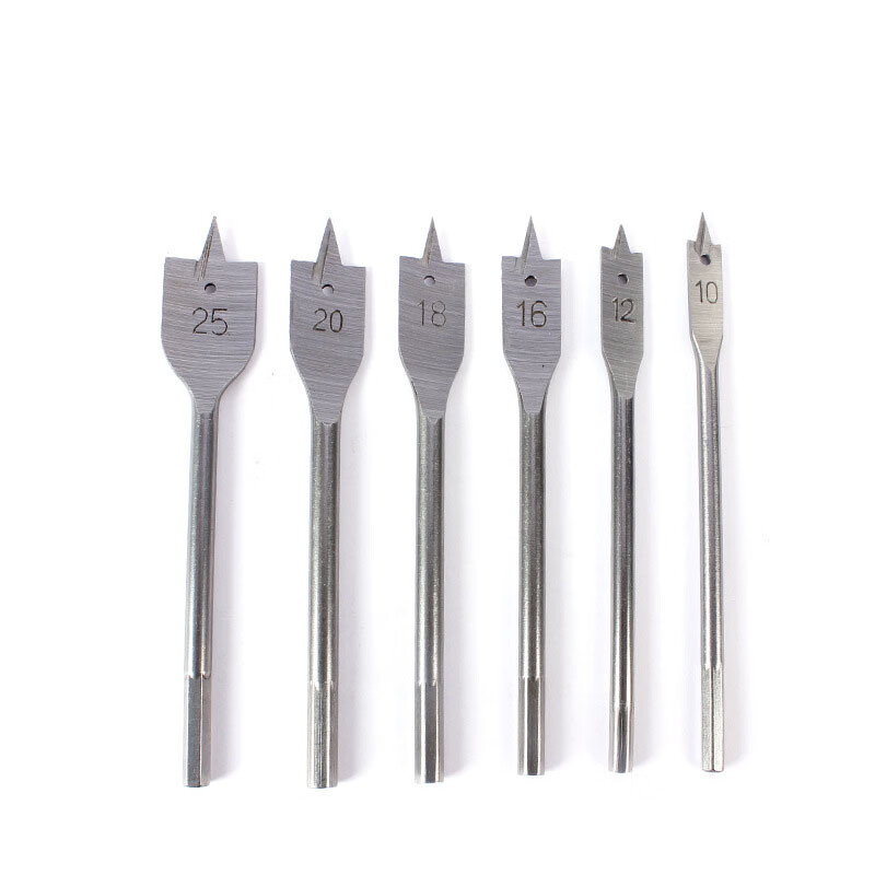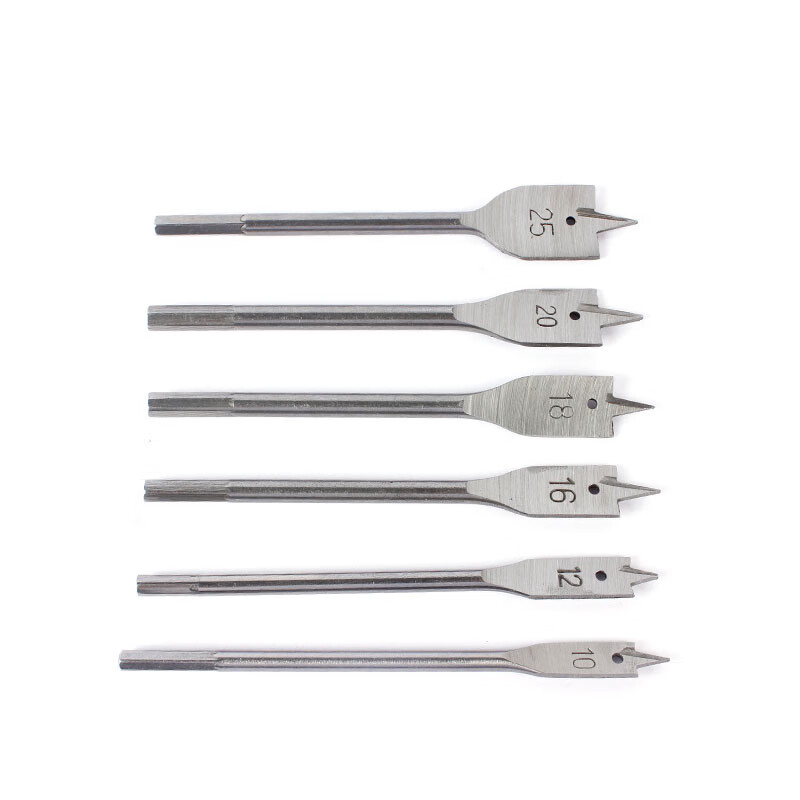 Three-point woodworking flat drill woodworking drill bit, hexagonal handle woodworking hole opener set, flat drill bit board hole puncher, silver hexagonal handle flat drill 6 pieces
