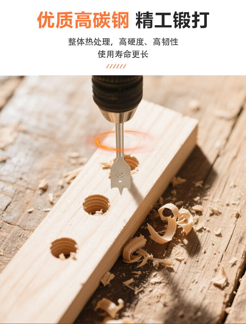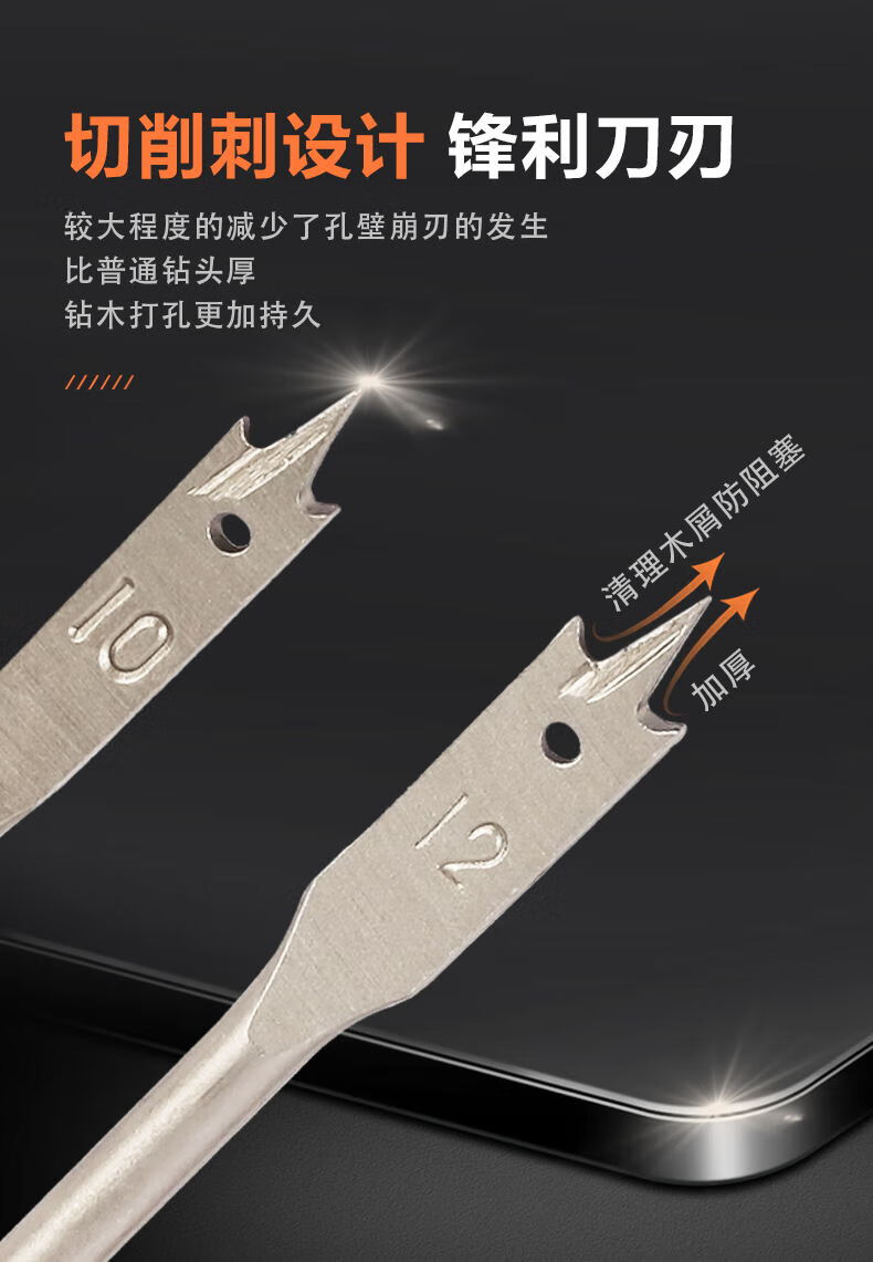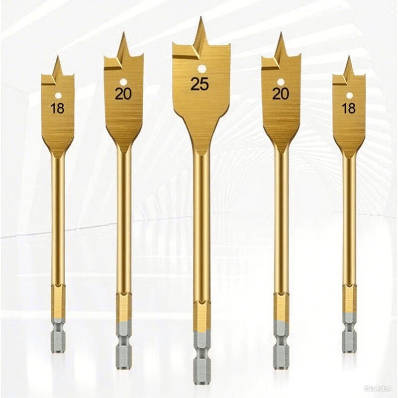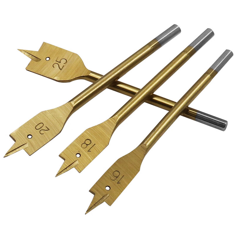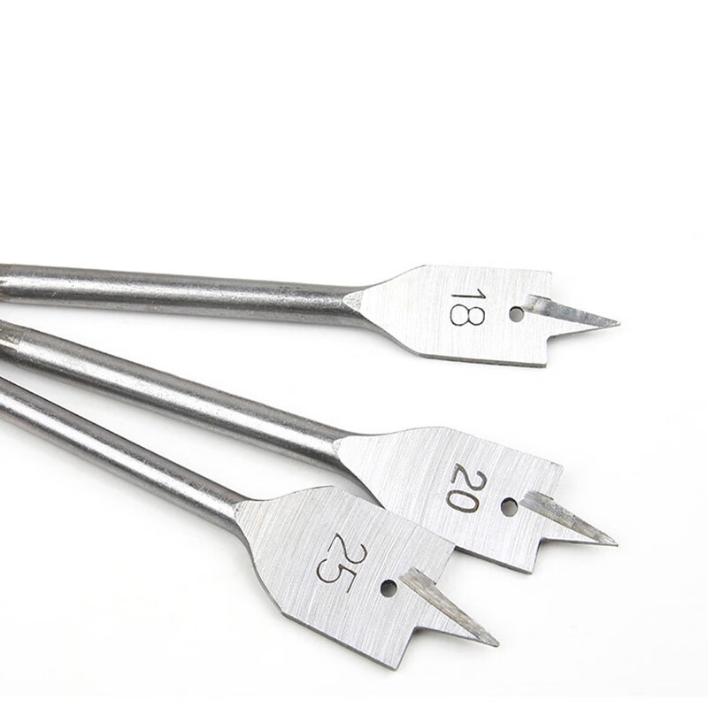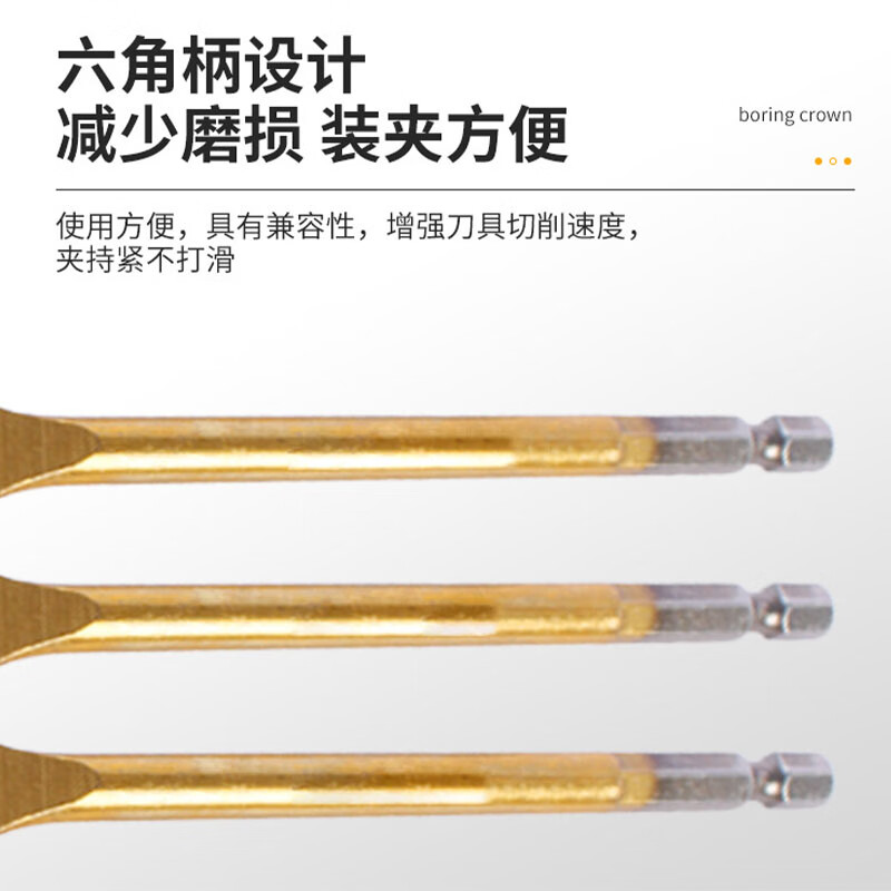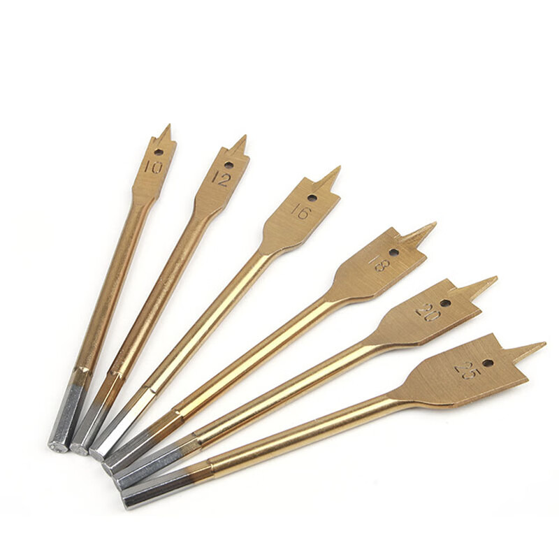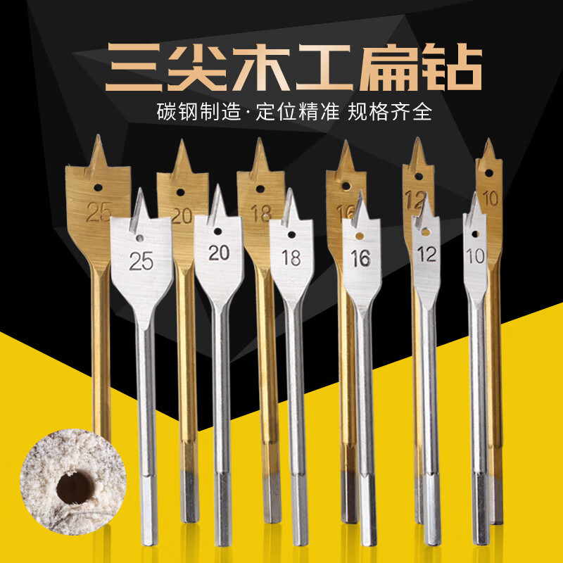 Three-point woodworking flat drill woodworking drill bit, hexagonal handle woodworking hole opener set, flat drill bit board hole puncher, silver hexagonal handle flat drill 6 pieces