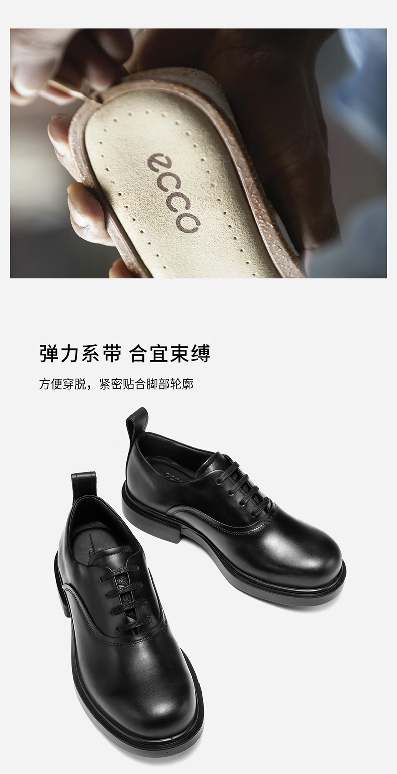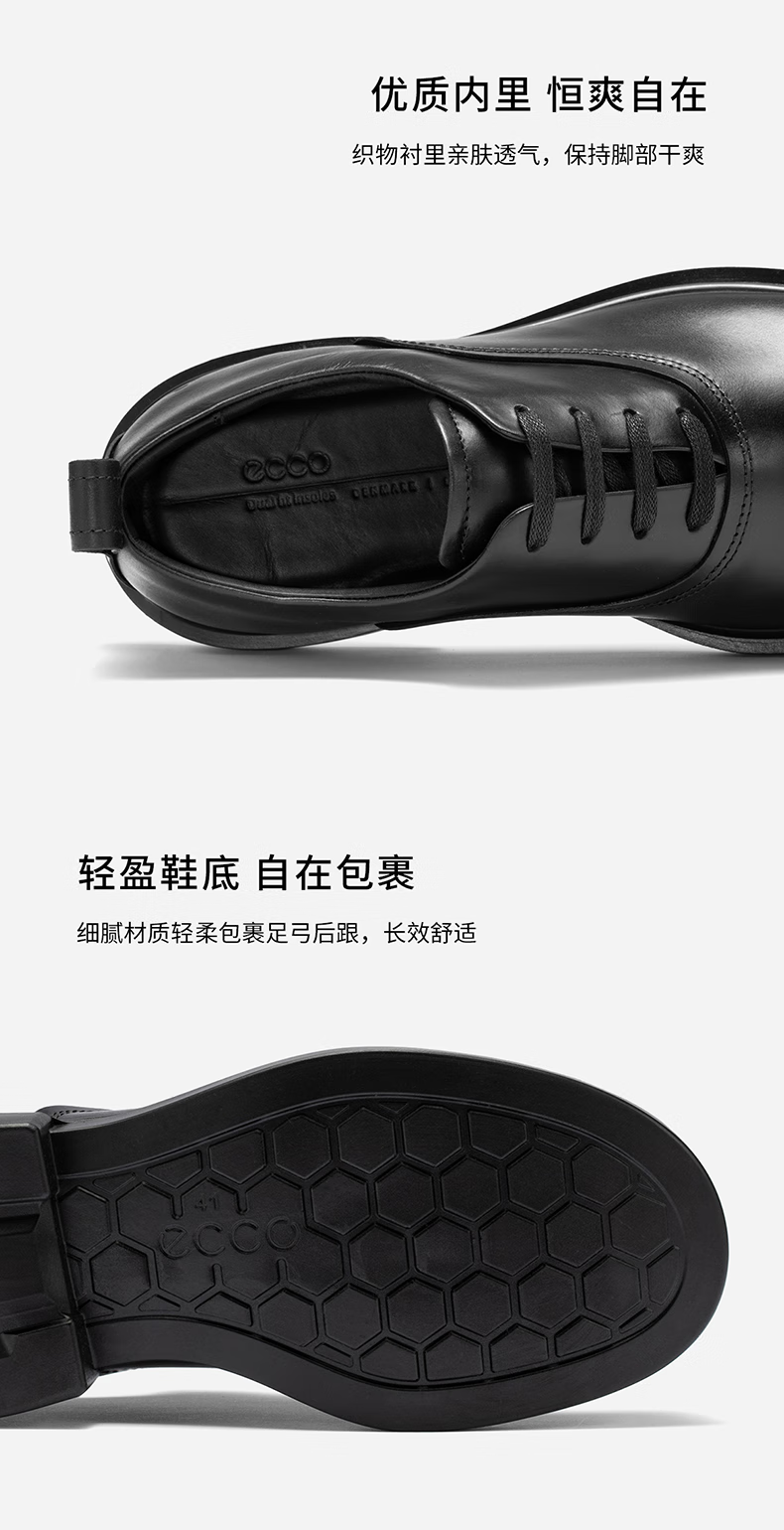 ECCO Derby Shoes 2025 Autumn New Business Leather Shoes Men's Height Height Wedding Shoes City Seoul 522364 Black 52236401001 41
