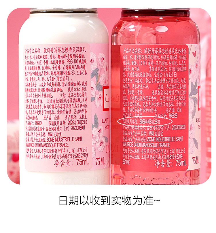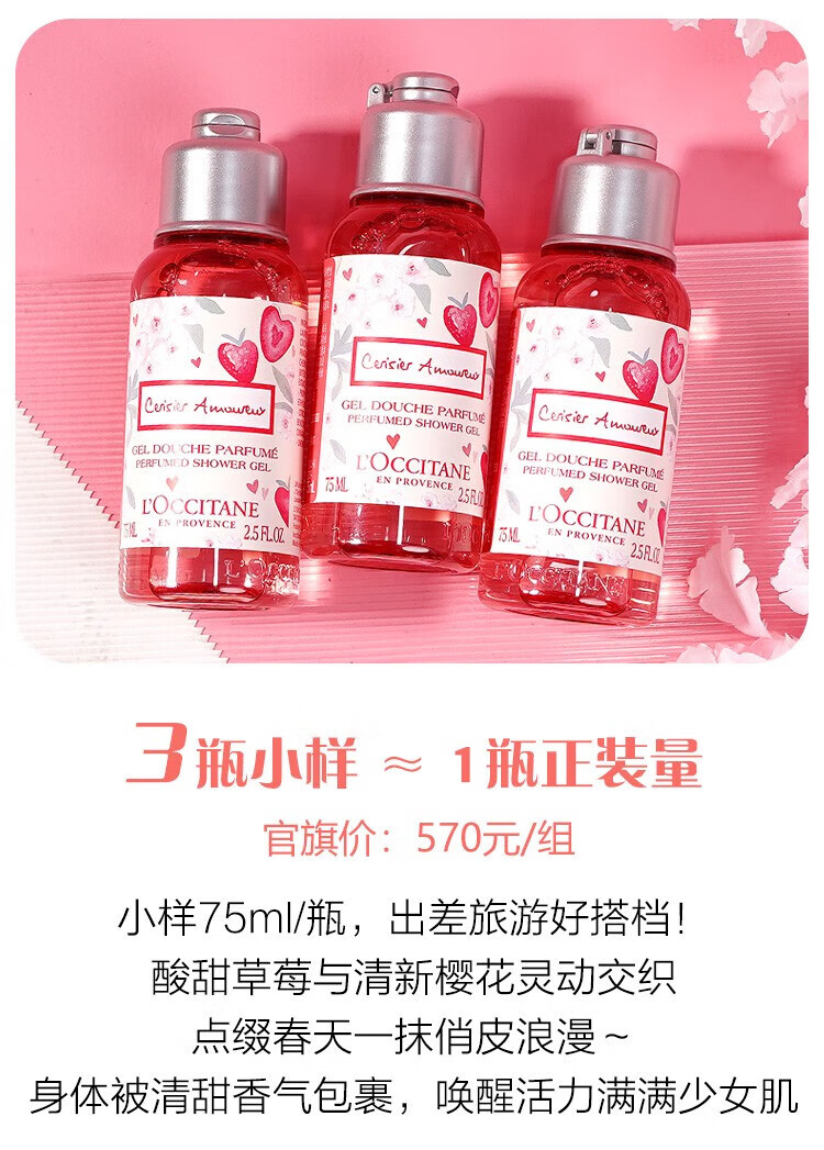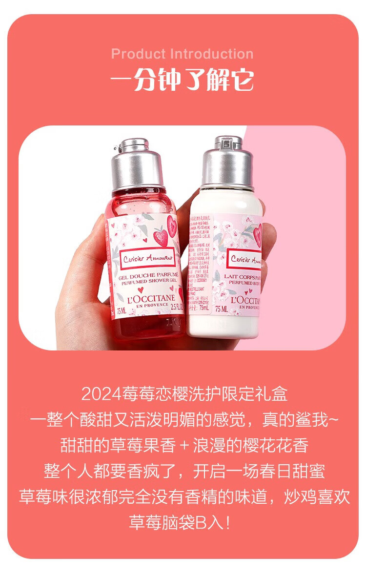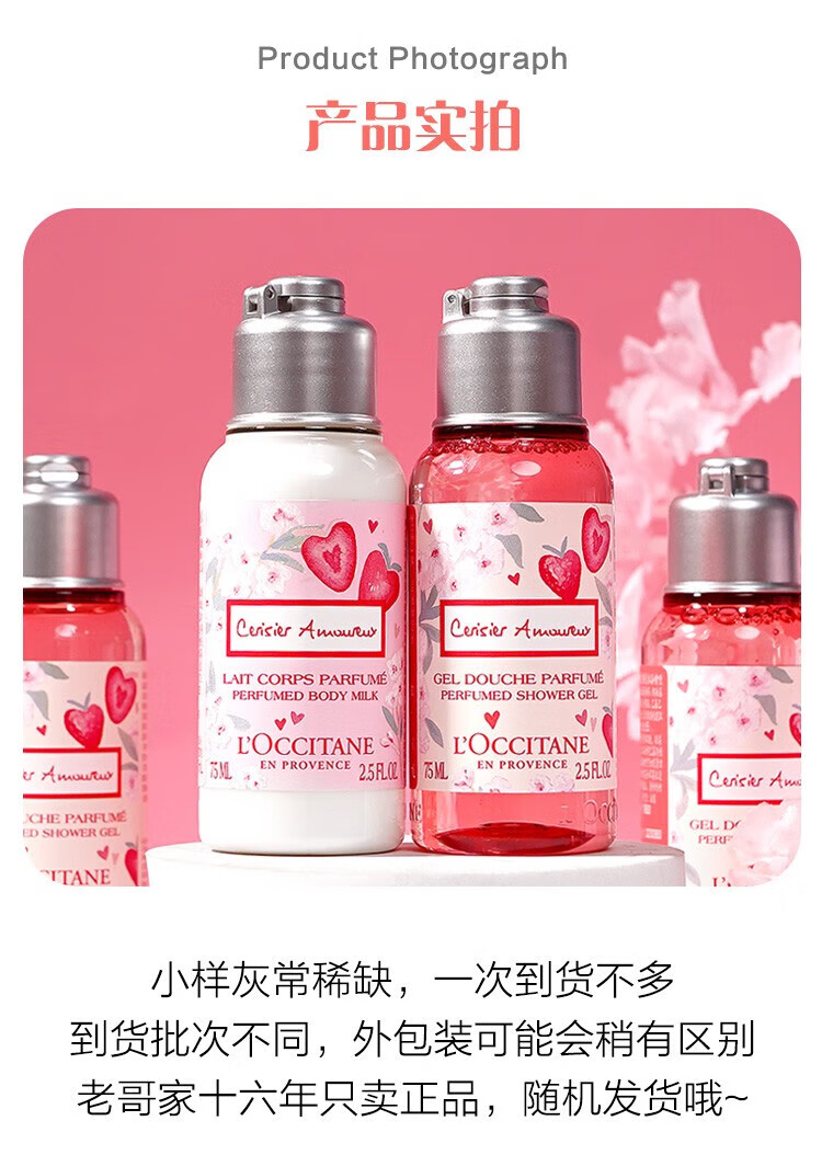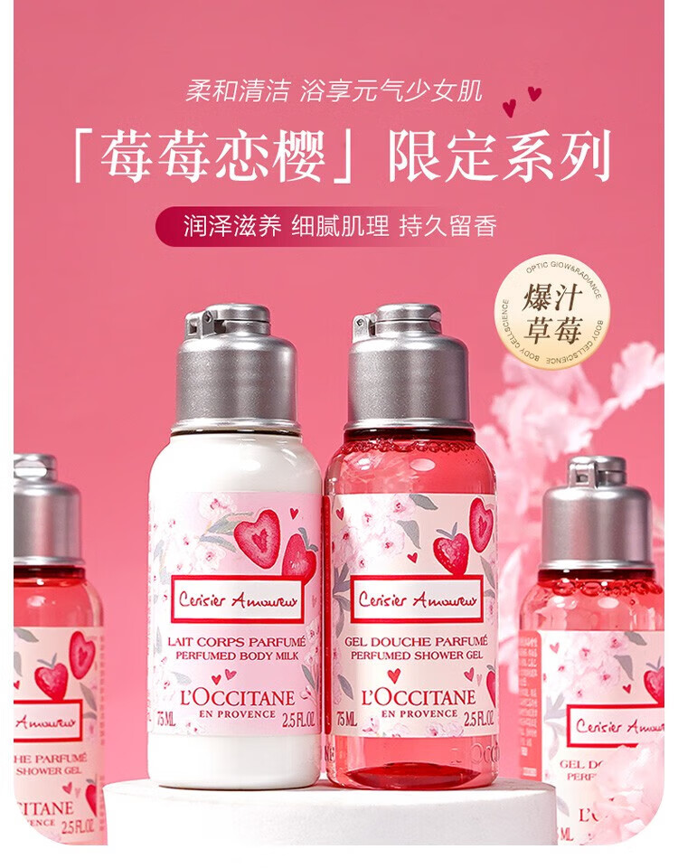 L OCCITANE body lotion berry cherry blossom shower gel set moisturizing strawberry cherry blossom 75ml travel size sample body lotion 75ml*1 bottle 75ml