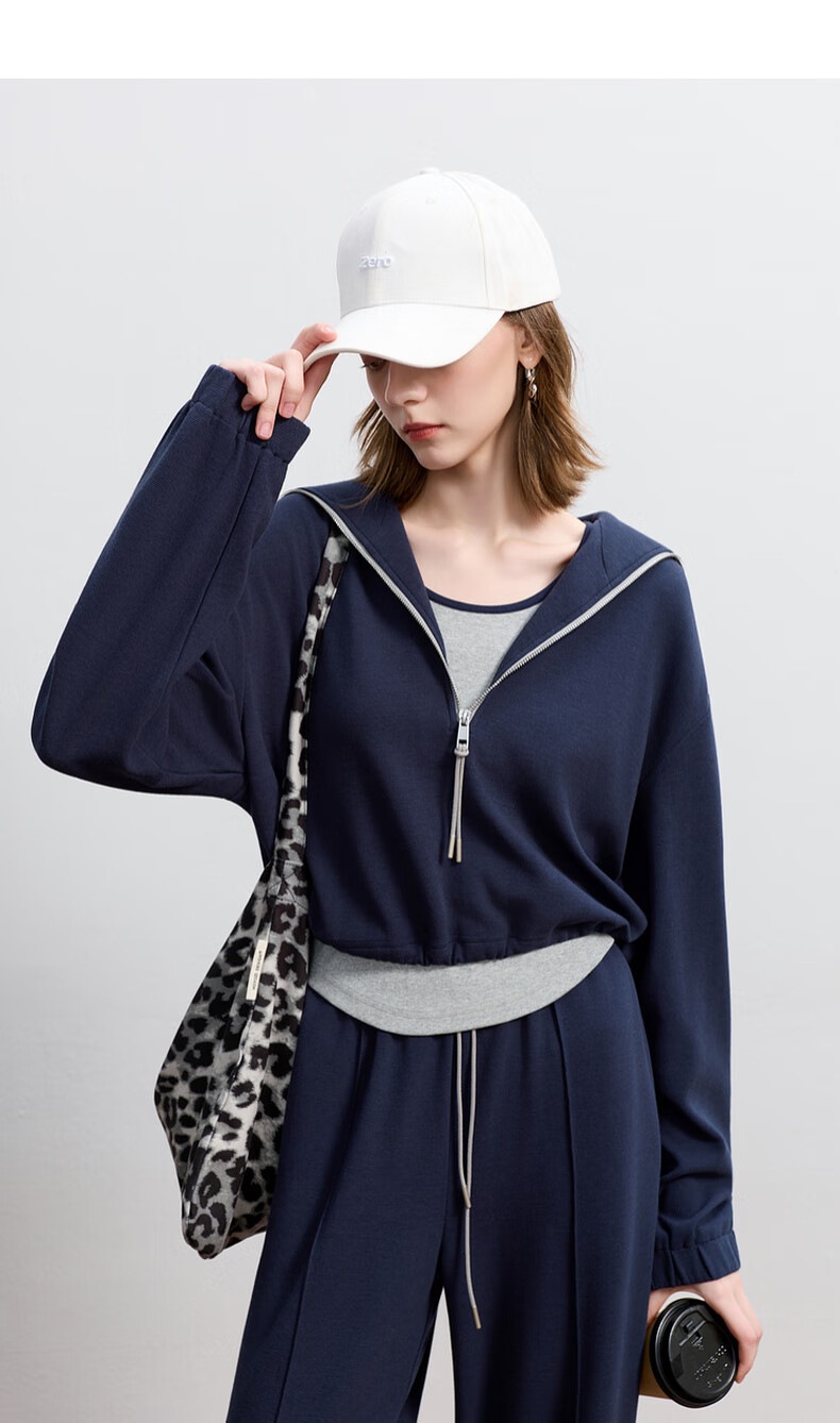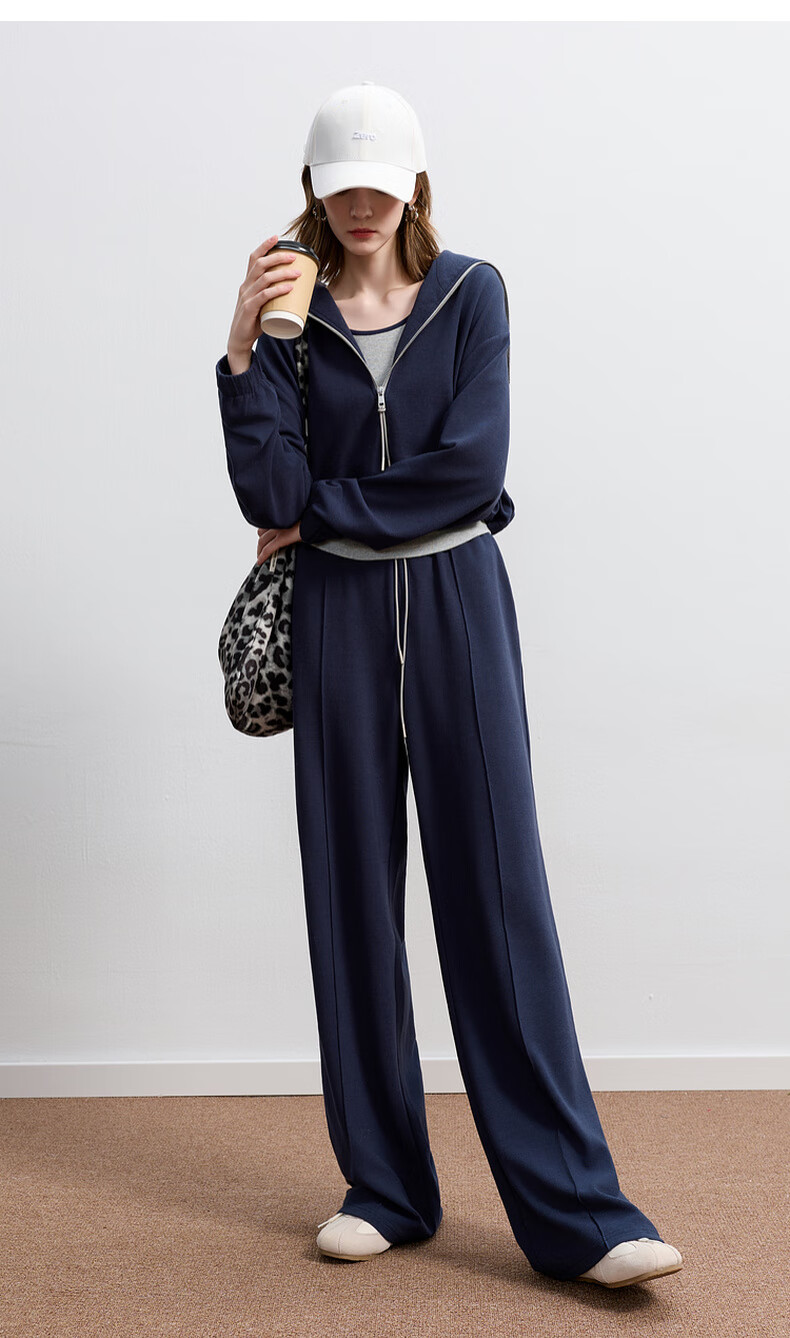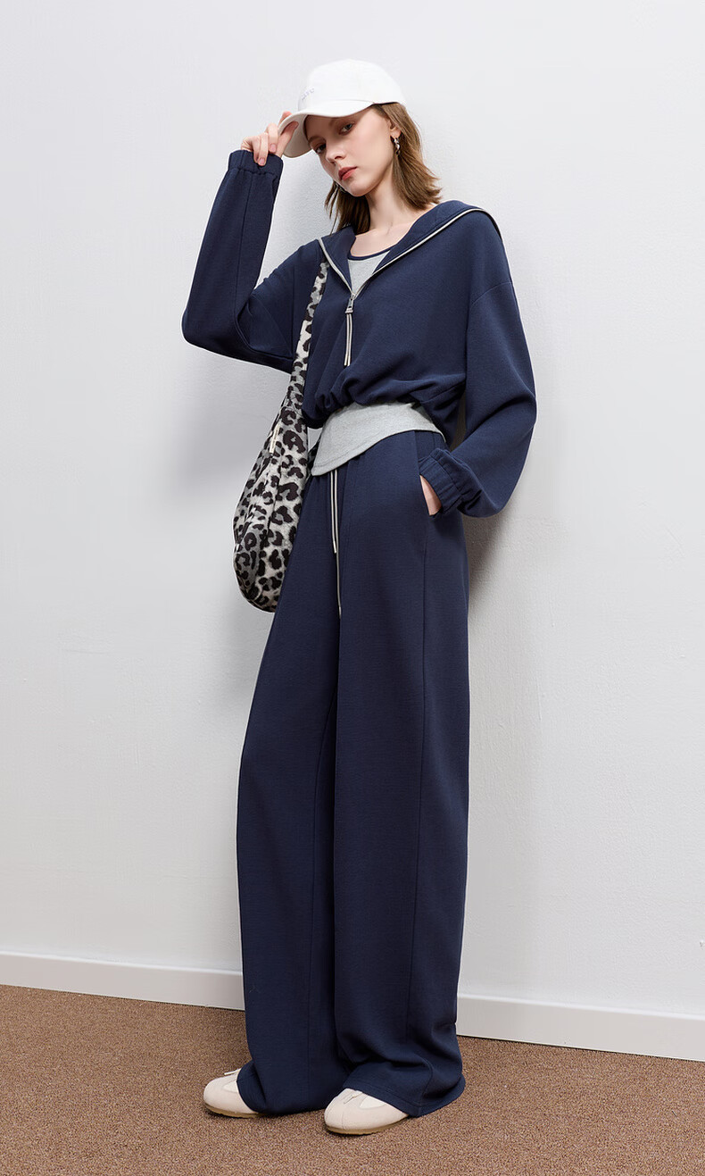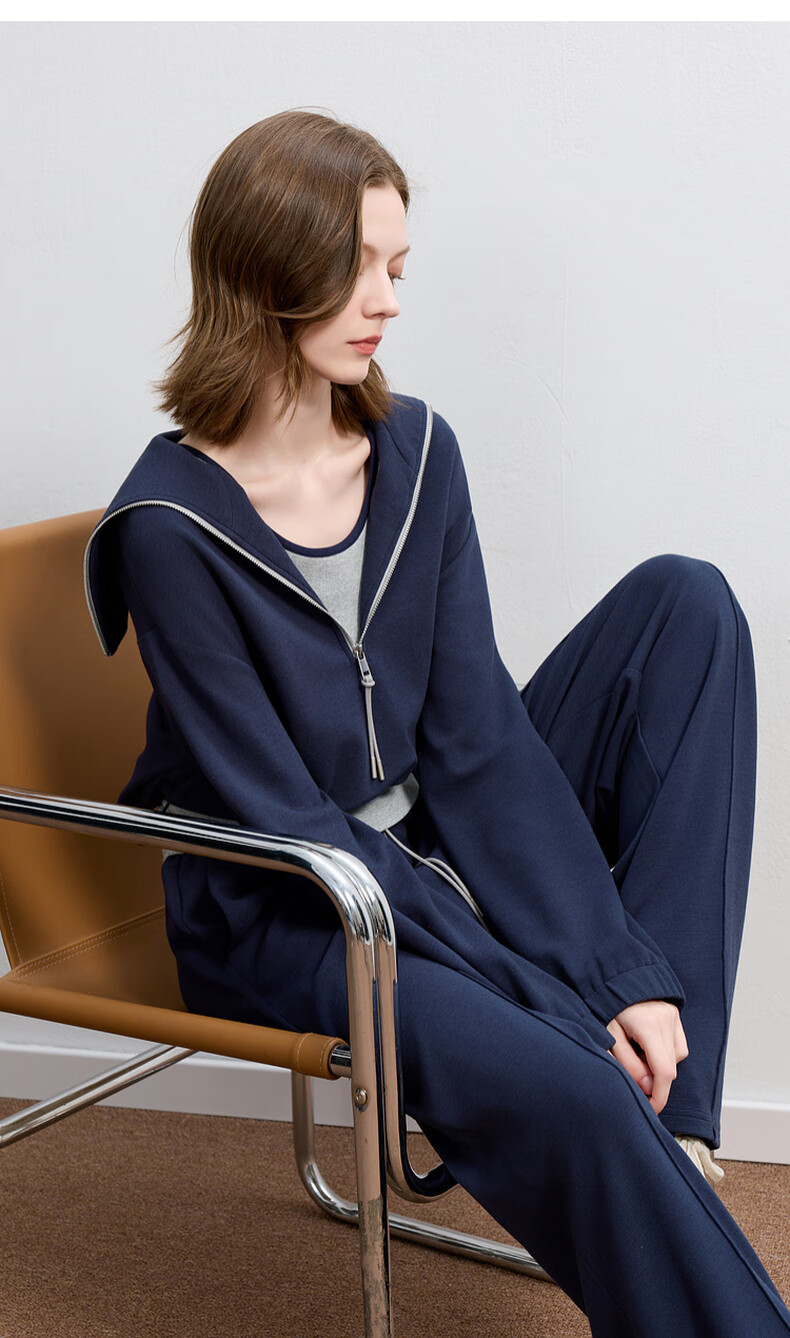 Sancai 2025 Autumn New Casual Three-piece Navy Collar Jacket T-shirt Straight Pants Suit Pants S Navy M 160/84A