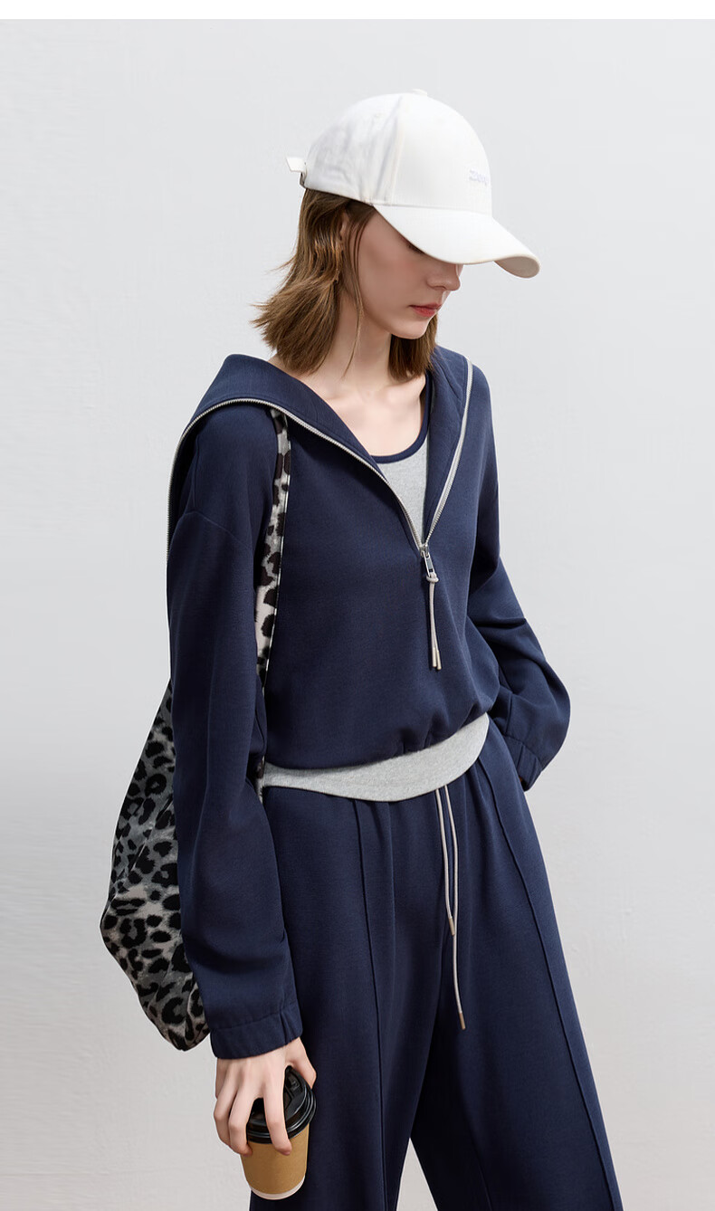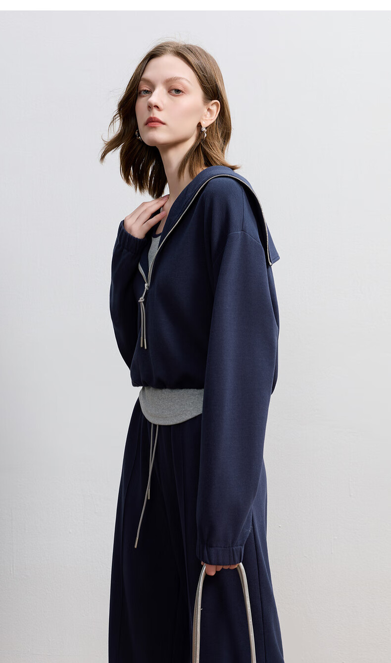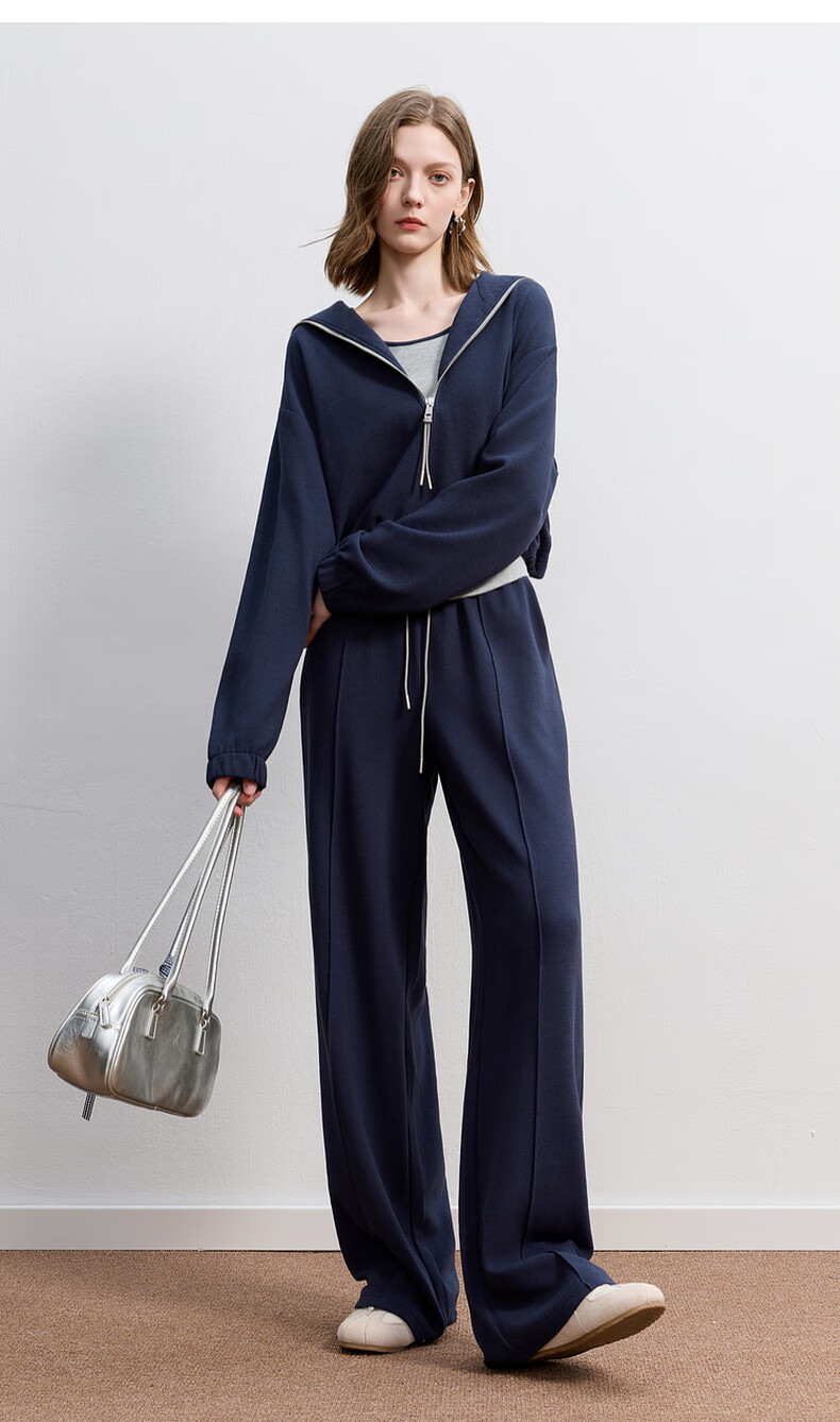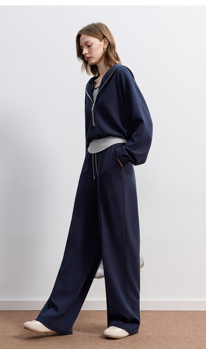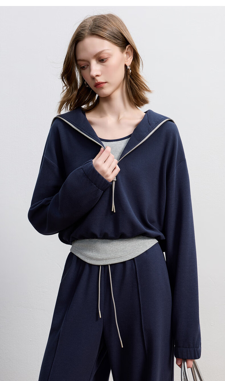 Sancai 2025 Autumn New Casual Three-piece Navy Collar Jacket T-shirt Straight Pants Suit Pants S Navy M 160/84A