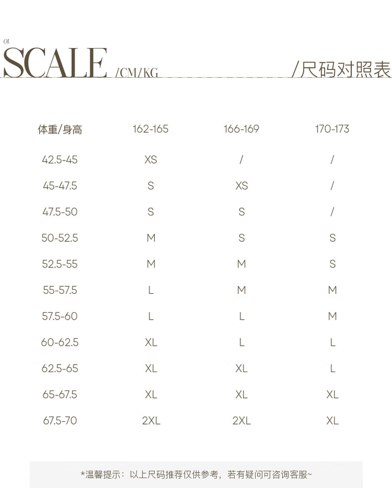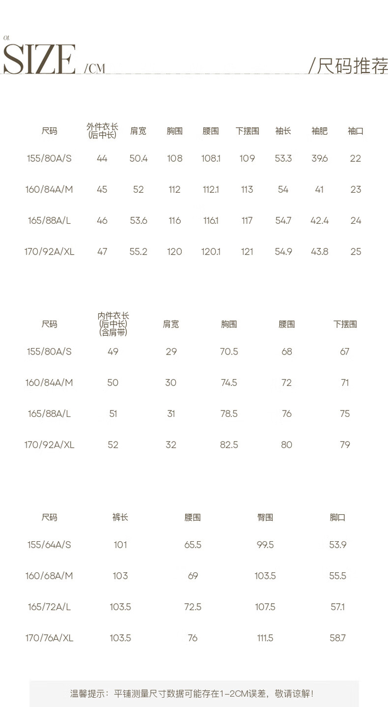 China (cm) 160-165/84-86 165-170 / 88-90 167-172 / 92-96 168-173 / 98-102 170-176 / 106-110
