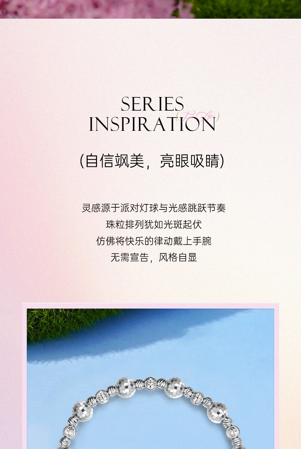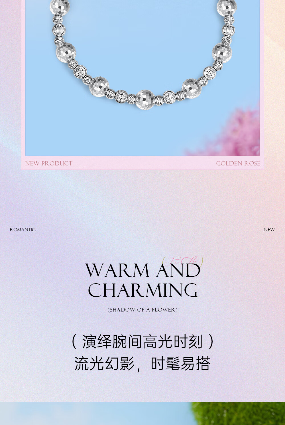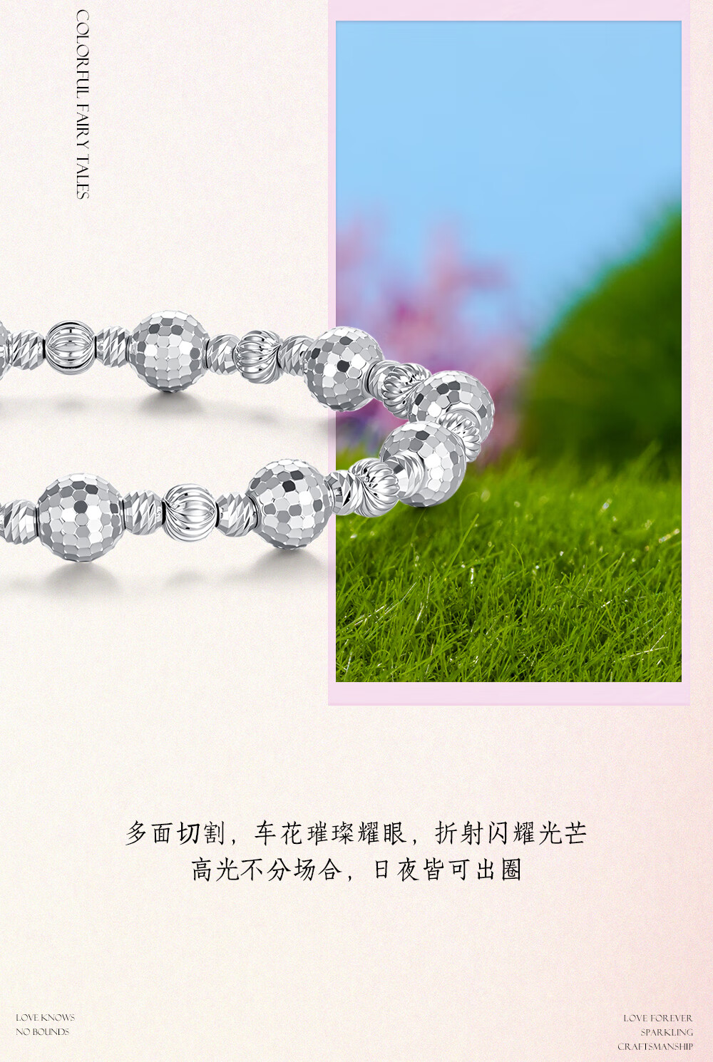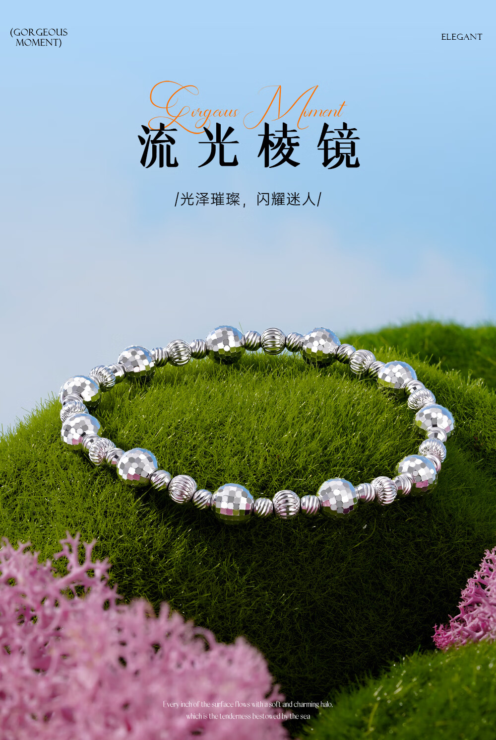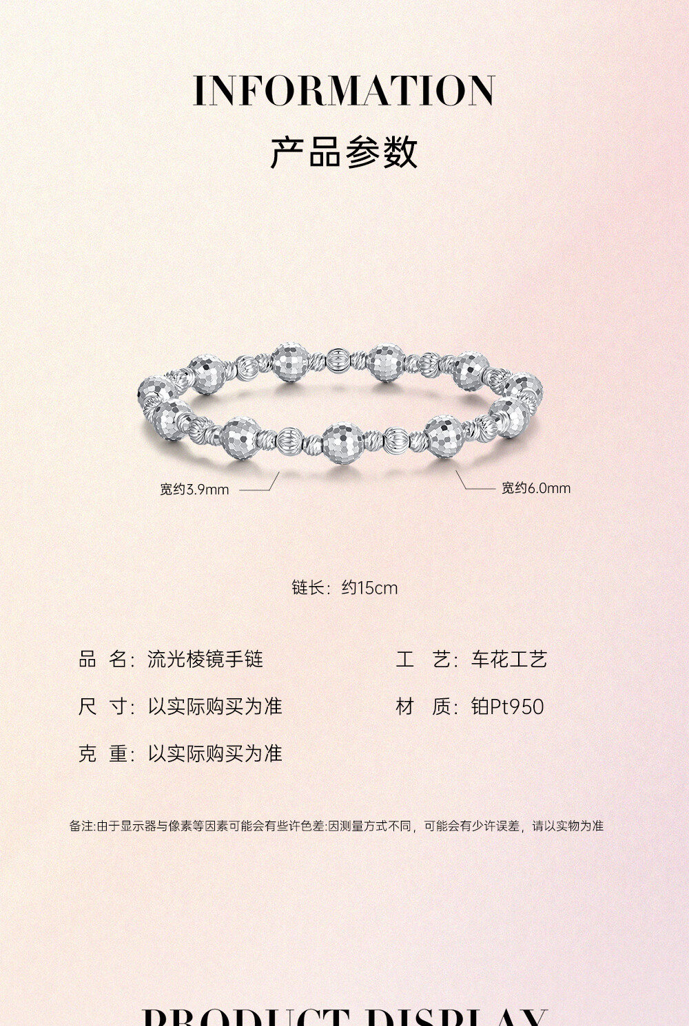 Zhongxin Jewelry Platinum Bungee Bead Bracelet PT950 Crushed Ice Laser Bead Bracelet Women's Birthday Gift for Girlfriend 11.75g