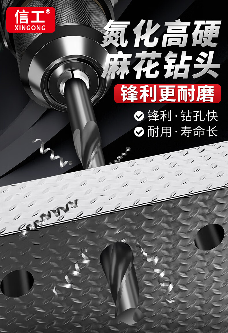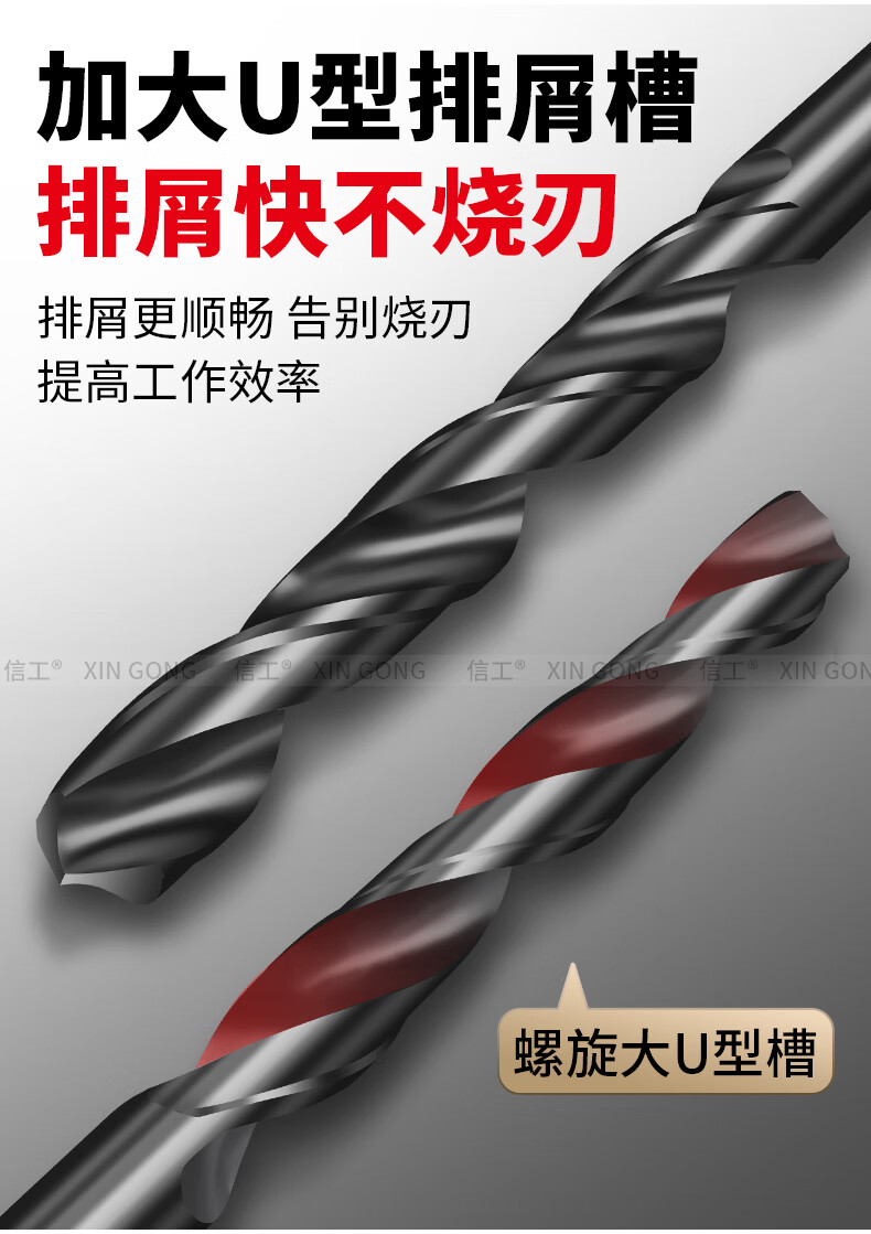 Xingong twist drill bit, straight handle drill bit, alloy drill bit, second opening of steel, iron, aluminum alloy metal, special punching hand electric drill bit 15mm single