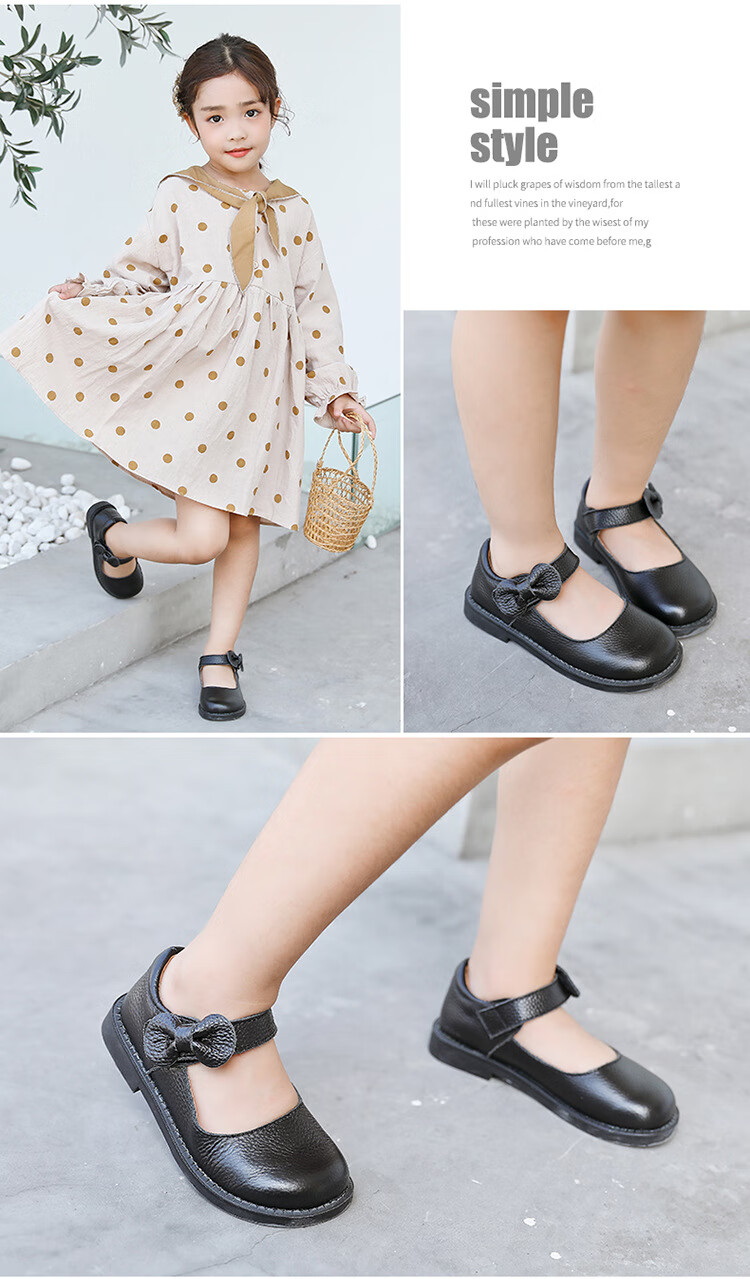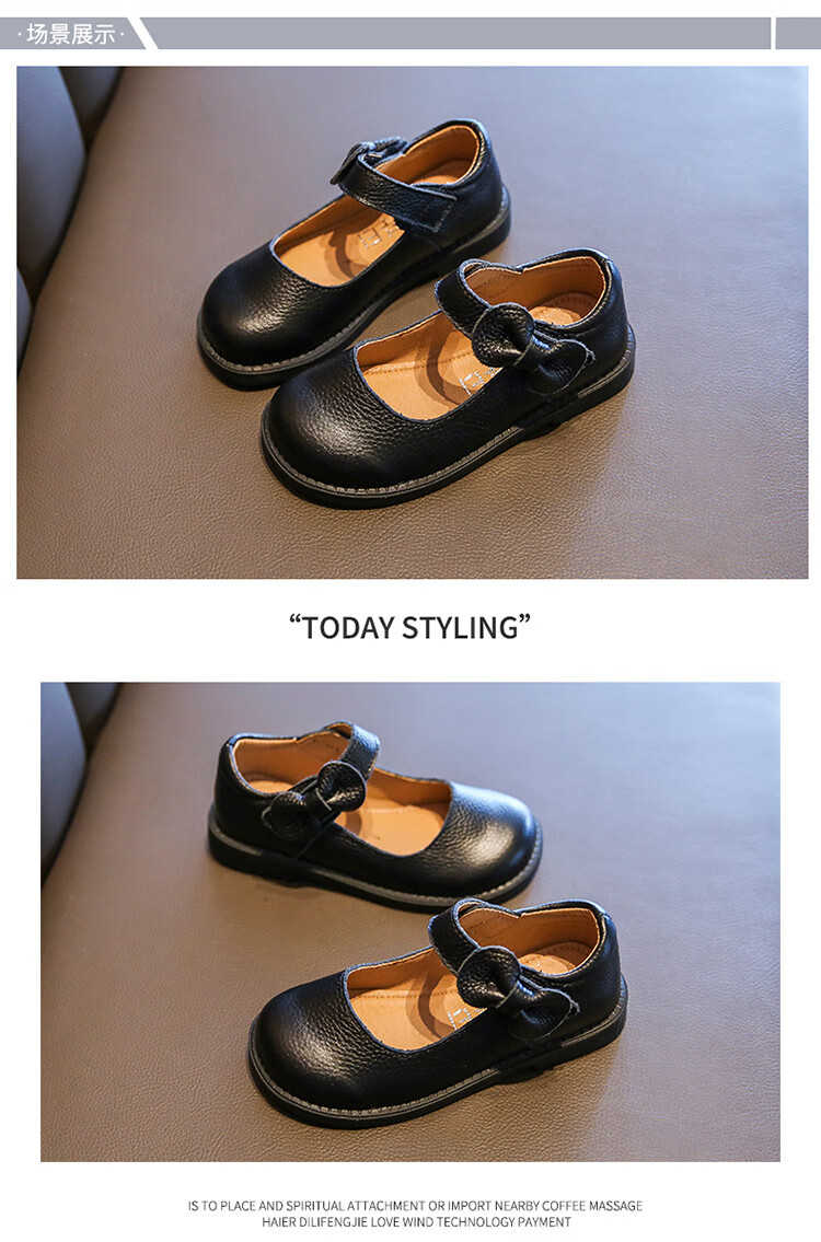 Shepherd Cow Girls Leather Shoes 2026 Autumn New Genuine Leather Shoes Baby Black Leather Shoes Campus Etiquette Performance Shoes Princess Shoes 2925 Black (First Layer Cowhide) 28 Inner Length Approximately 17.9cm