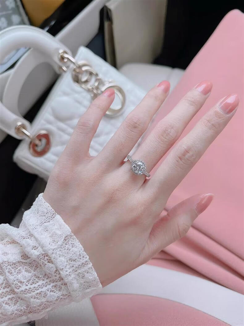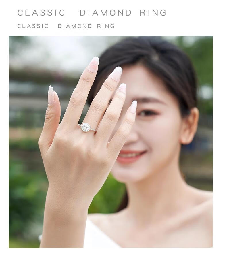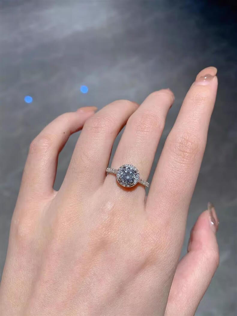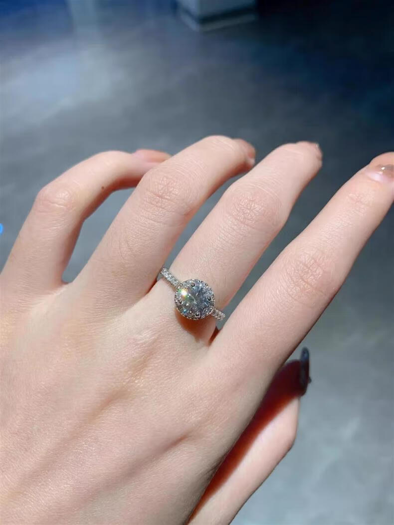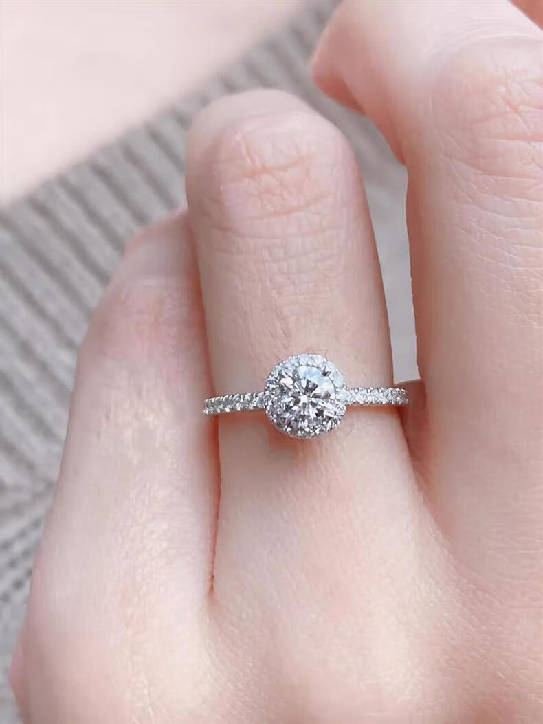 Pt950 platinum moissanite color diamond ring round package full of diamonds ring female engagement proposal to send girlfriend birthday gift round package full of diamonds 50 points - light luxury model default open style (size can be adjusted)