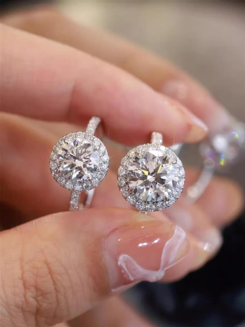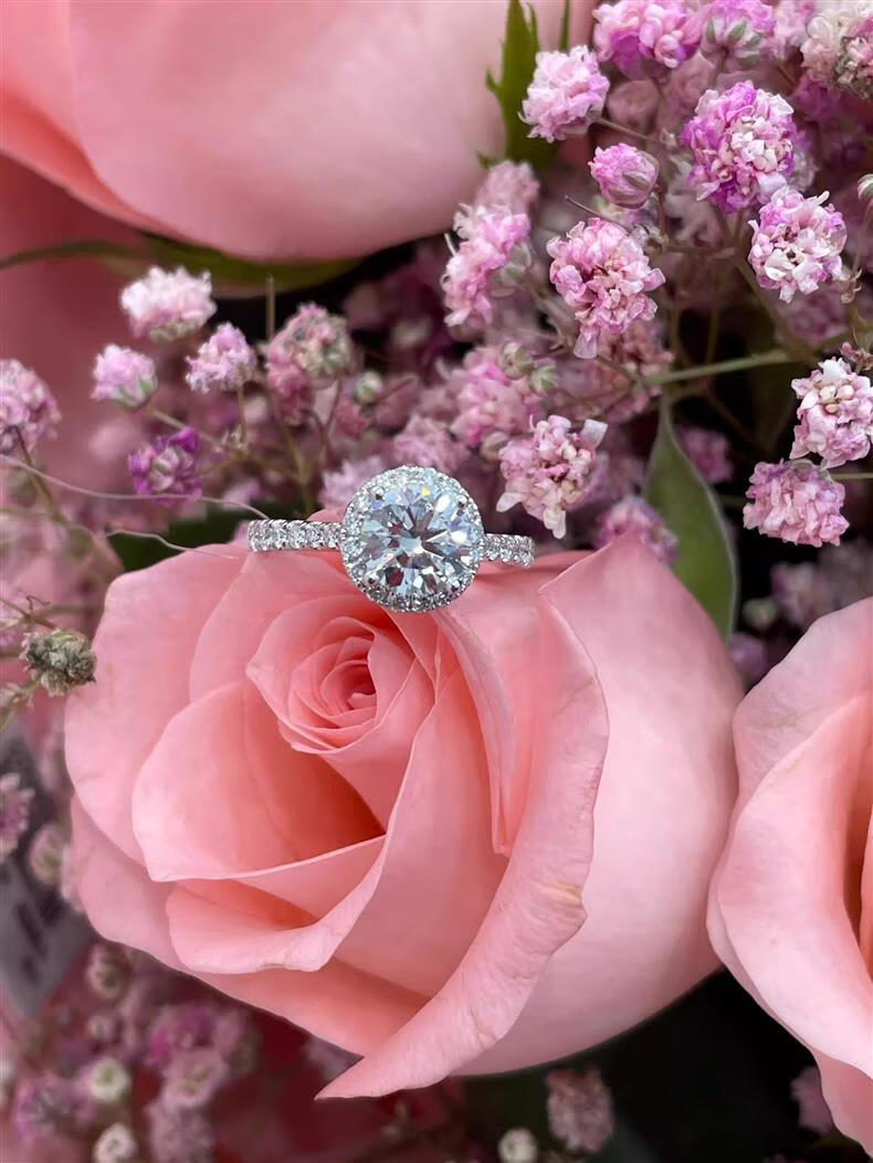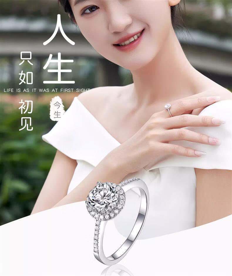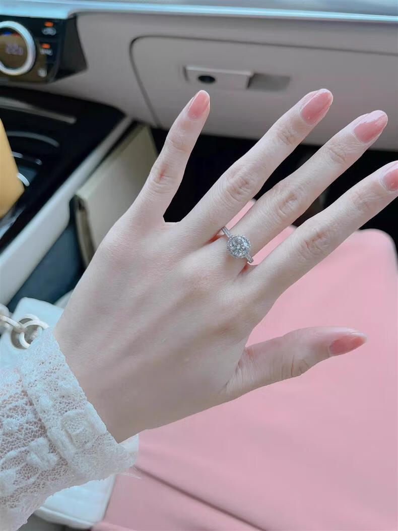 Pt950 platinum moissanite color diamond ring round package full of diamonds ring female engagement proposal to send girlfriend birthday gift round package full of diamonds 50 points - light luxury model default open style (size can be adjusted)