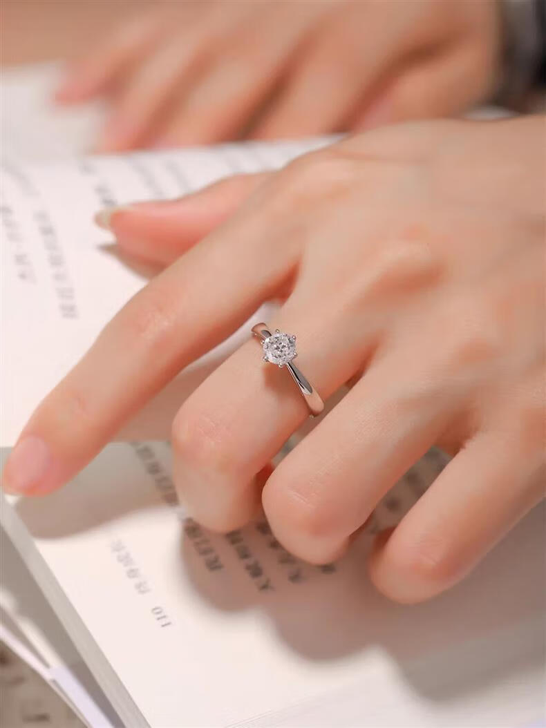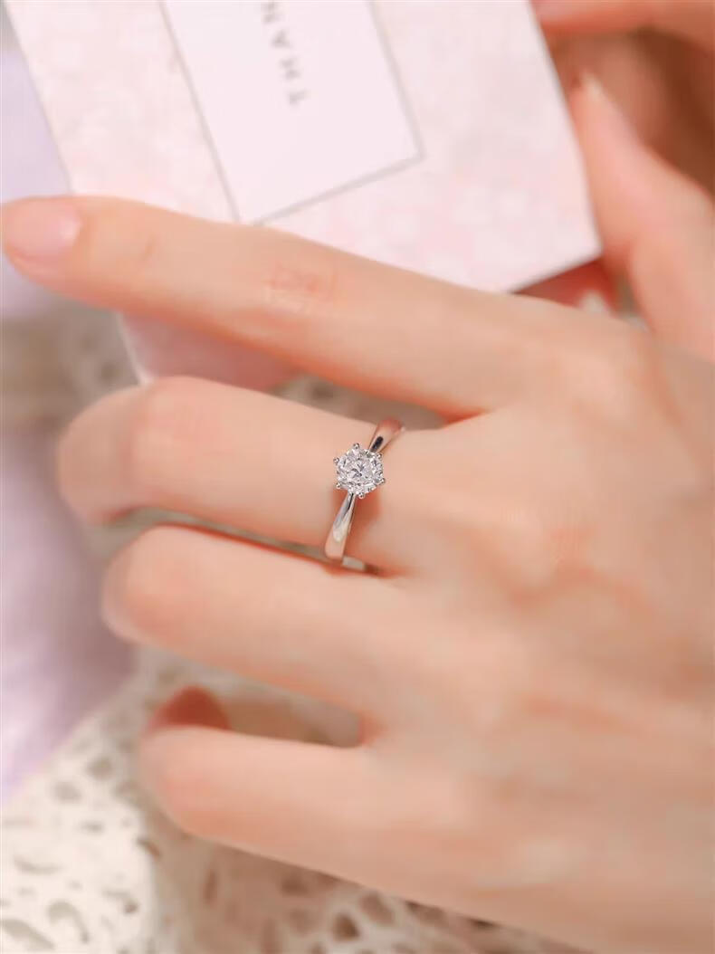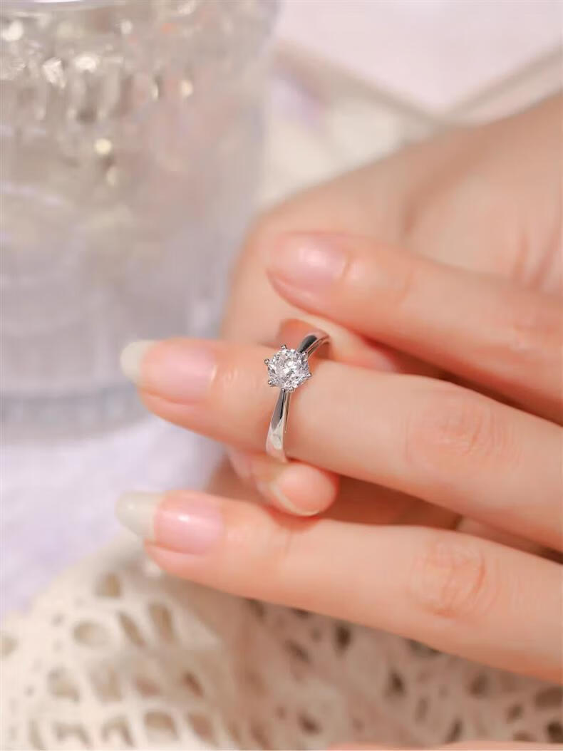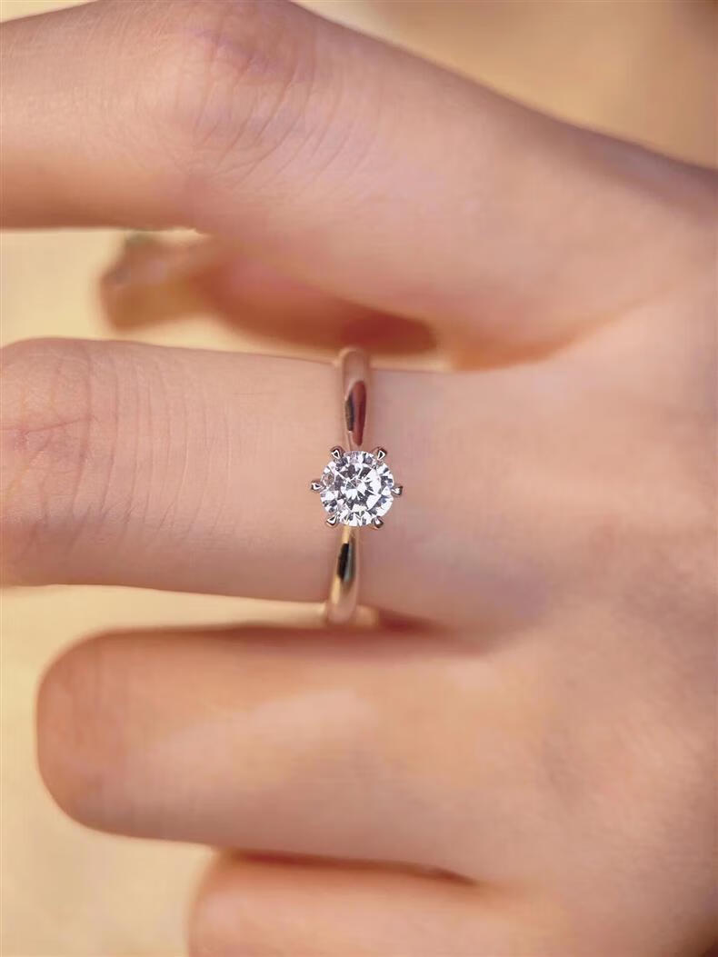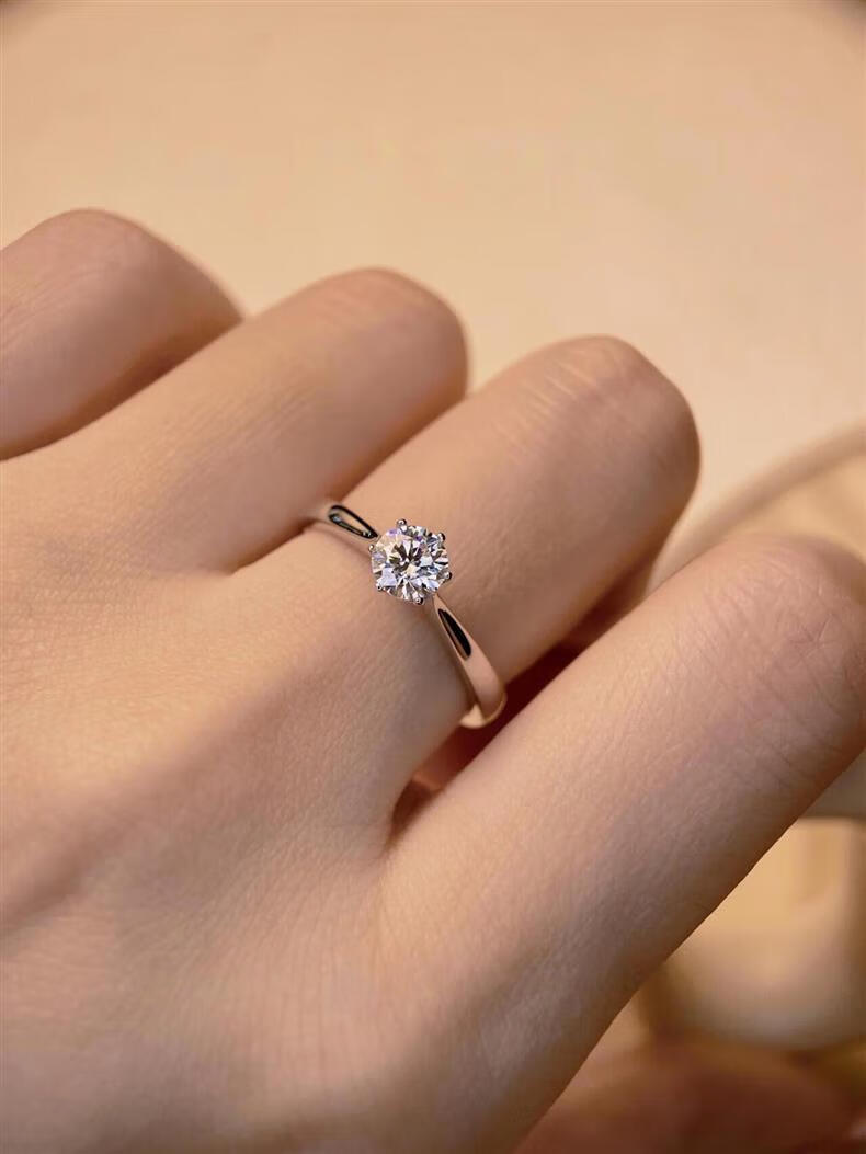 Pt950 platinum 1 carat moissanite color classic six-claw diamond ring ring engagement proposal birthday gift for girlfriend classic six-claw 50 points - light luxury model default open style (size adjustable)