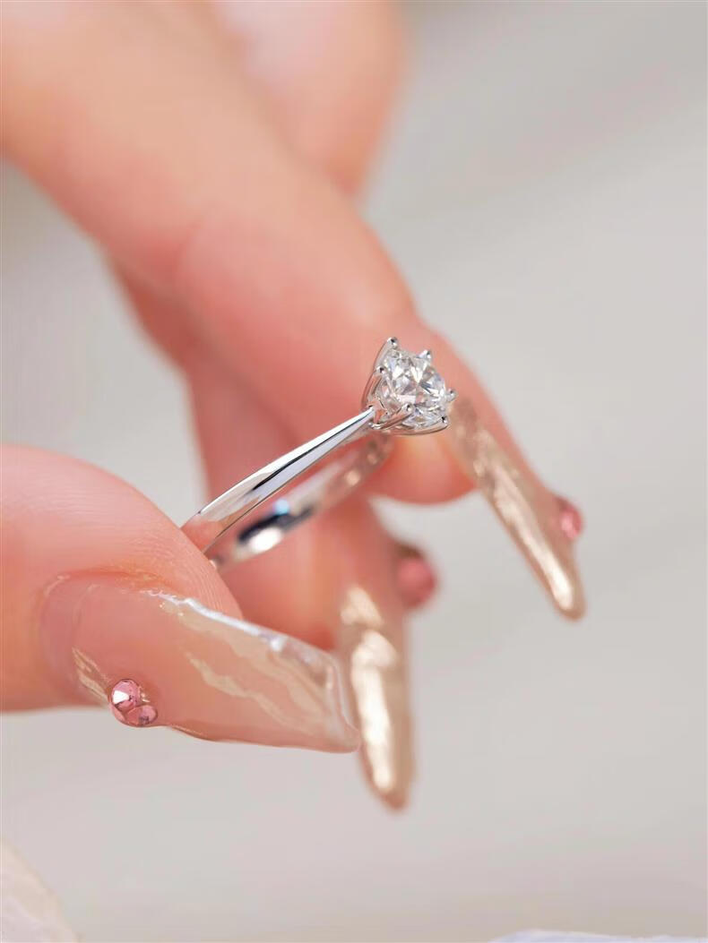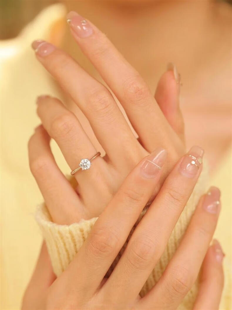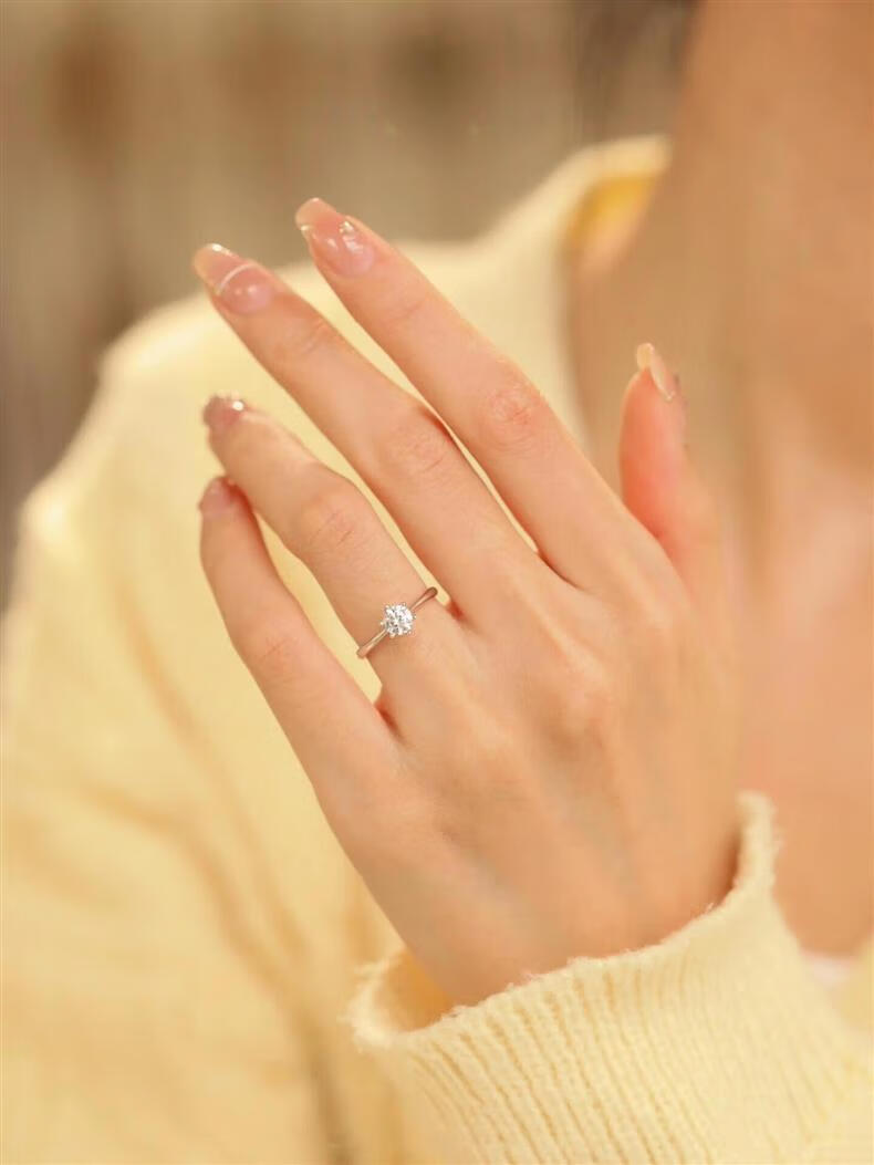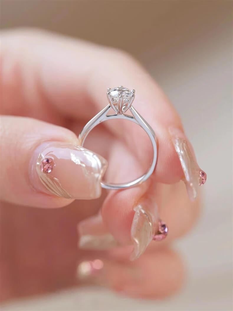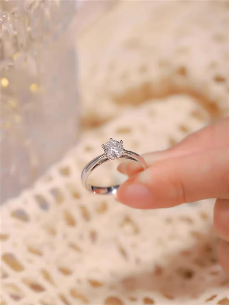 Pt950 platinum 1 carat moissanite color classic six-claw diamond ring ring engagement proposal birthday gift for girlfriend classic six-claw 50 points - light luxury model default open style (size adjustable)