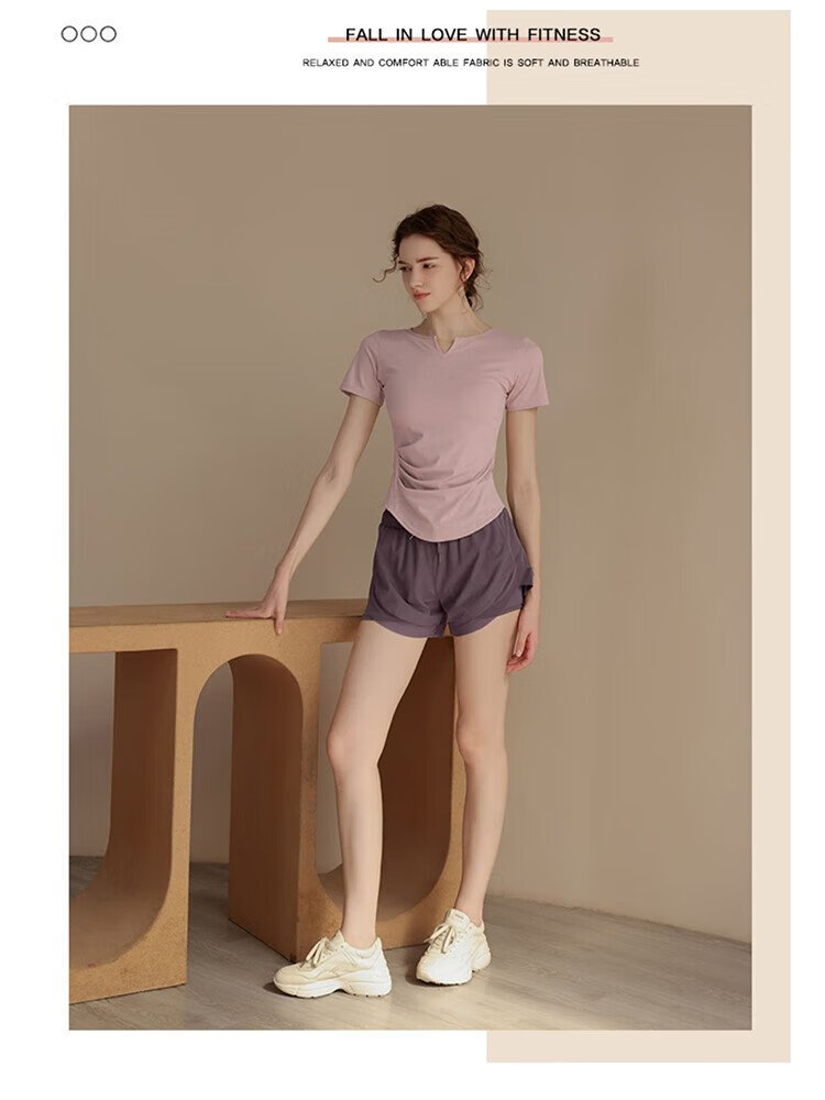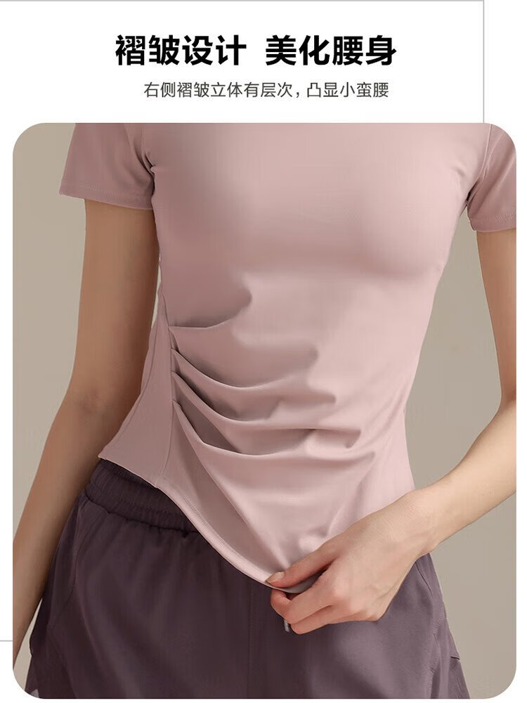 Duoxiangyu Yoga Wear Women's New Summer Running Sports Pilates Training Wear Short-Sleeved Fitness Wear T-Shirt Tight-fitting Sakura Pink Yoga Wear M Recommendation 95-105Jin Jin is equal to 0.5 kg