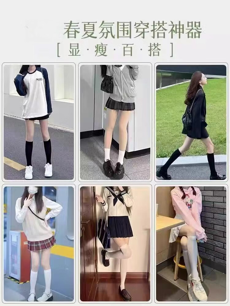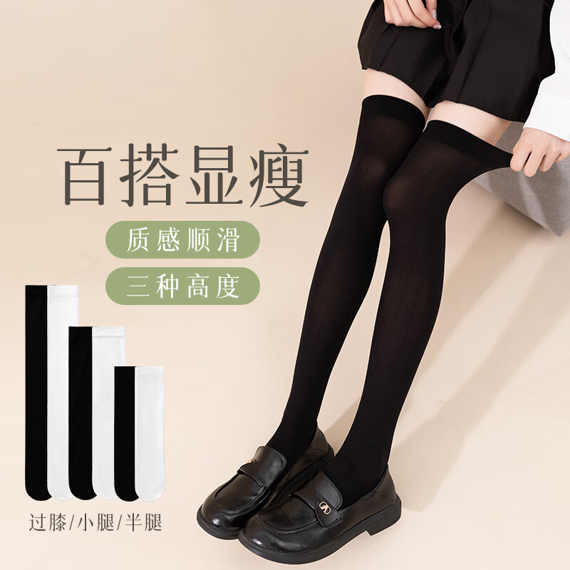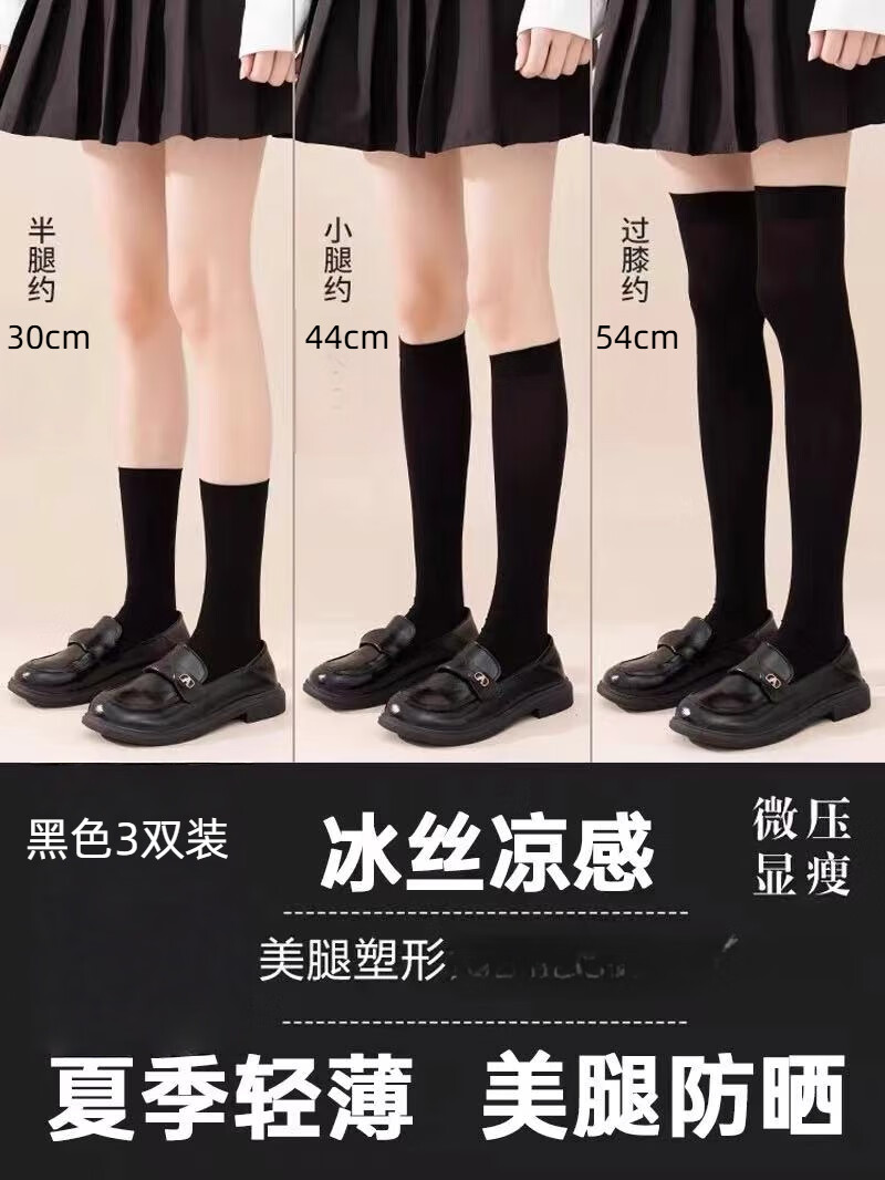 Japanese jk calf socks for women velvet spring and summer over-the-knee stockings pressure socks slimming black lolita socks black half leg + calf + over the knee 1 pair each
